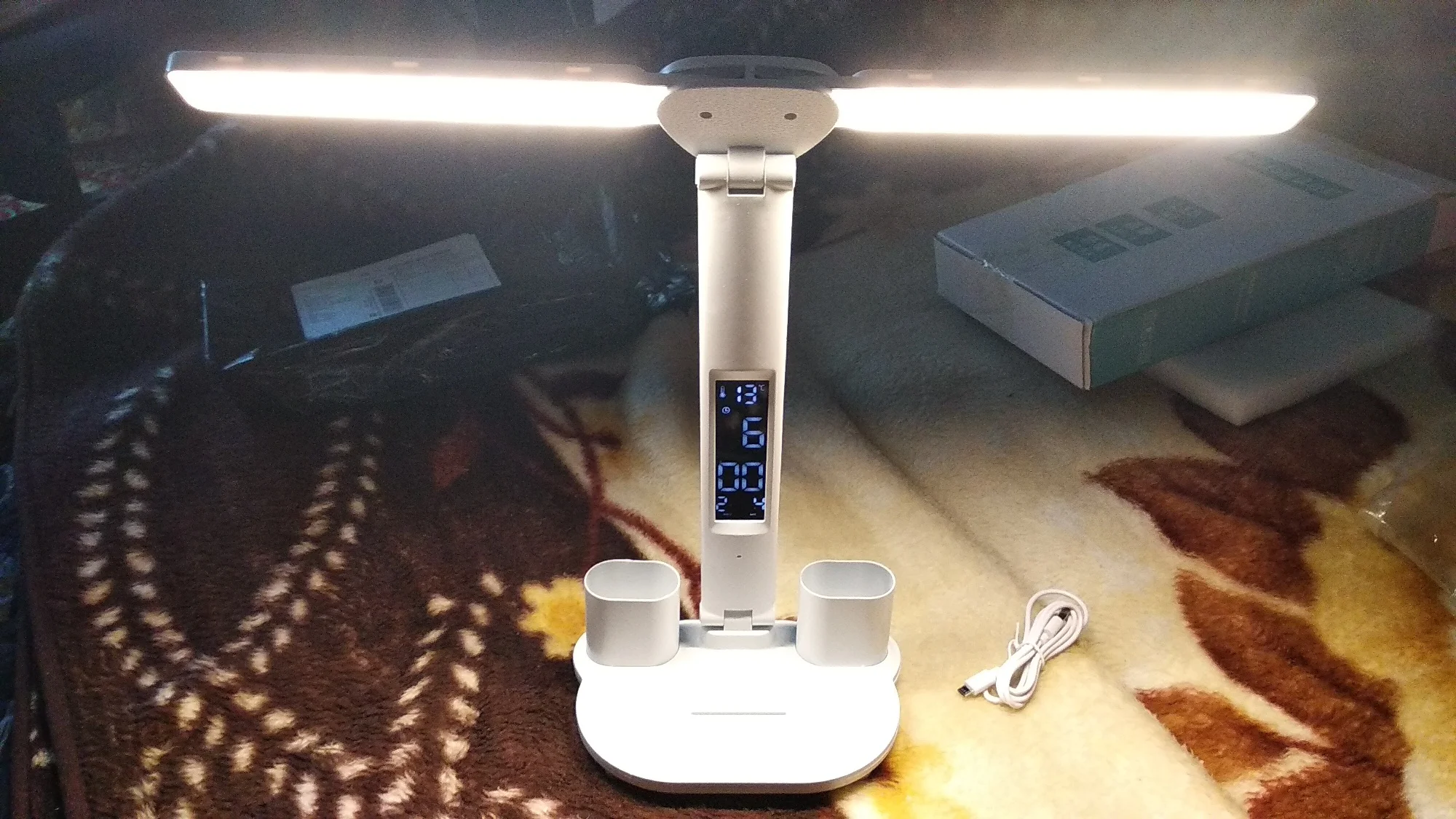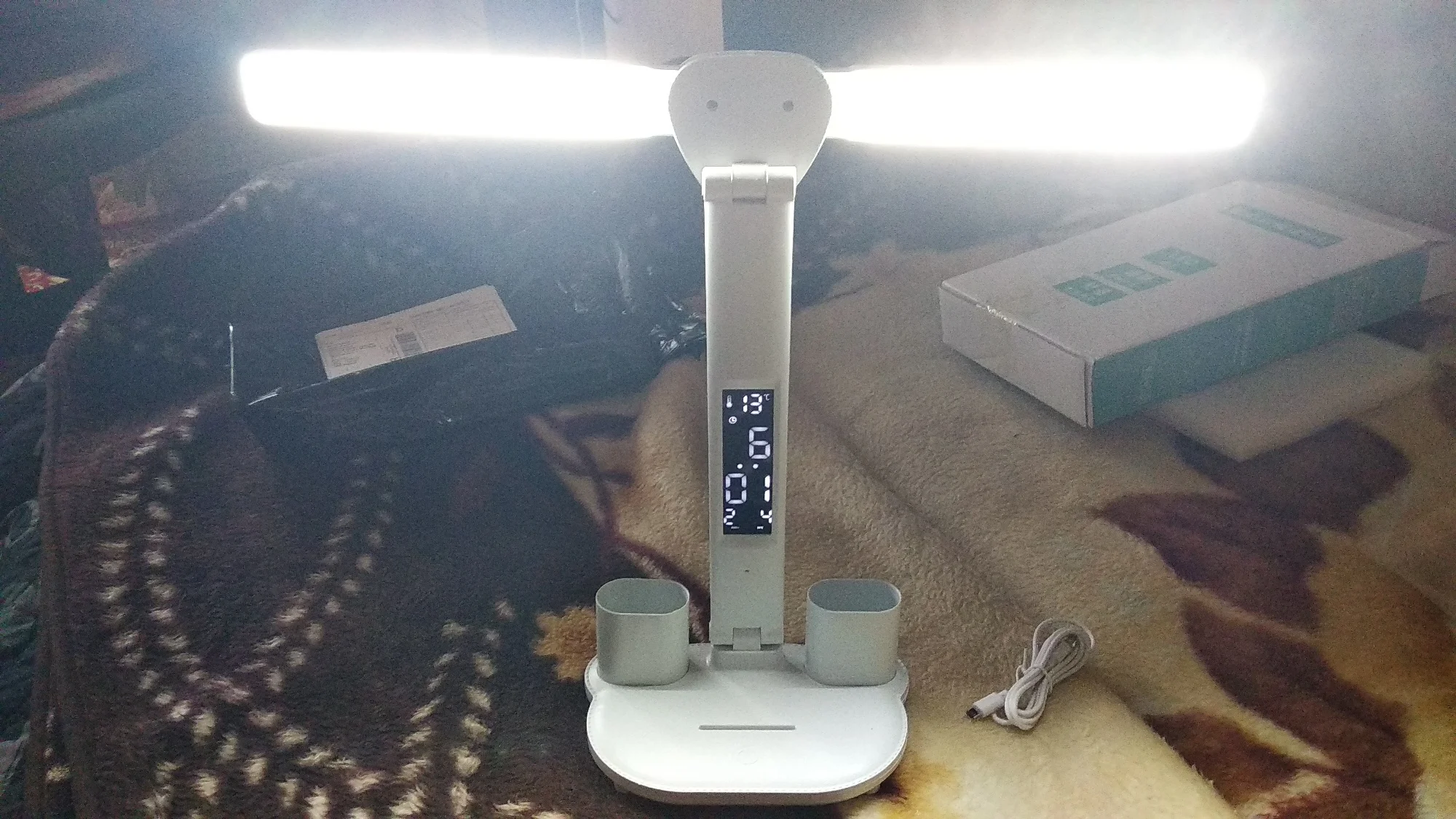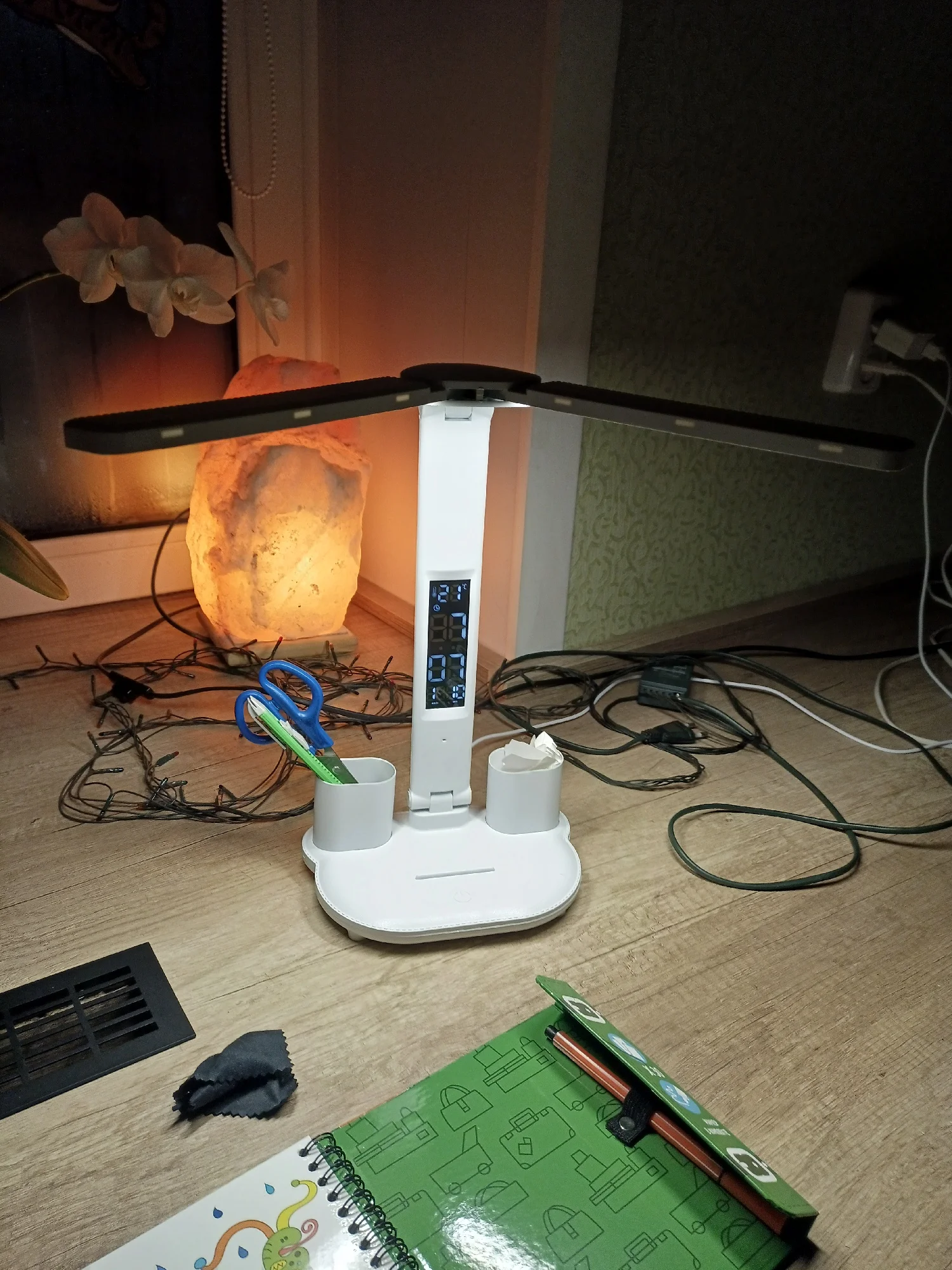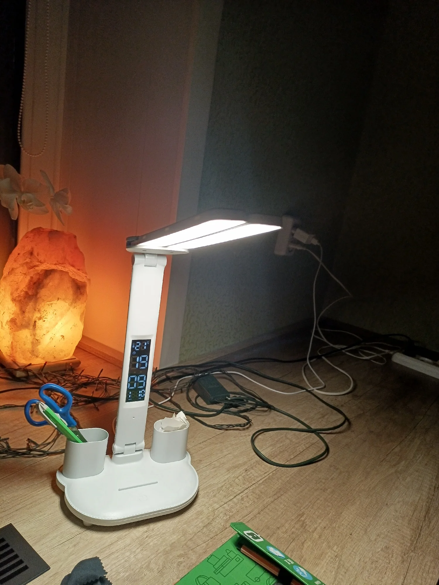 Зацепил сам дизайн. Режимы переключать одним нажатием, длинное нажатие меняет яркость. Плюсы: Яркая, три режима, холодный, теплый, и комбинированный, плюс менять яркость. Быстрая доставка. Из минусов: от батареи хватает всего на 1.5 часа, после того как она разрядилась, часы перестают работать, приходится настраивать по новой. В целом лампа годная.