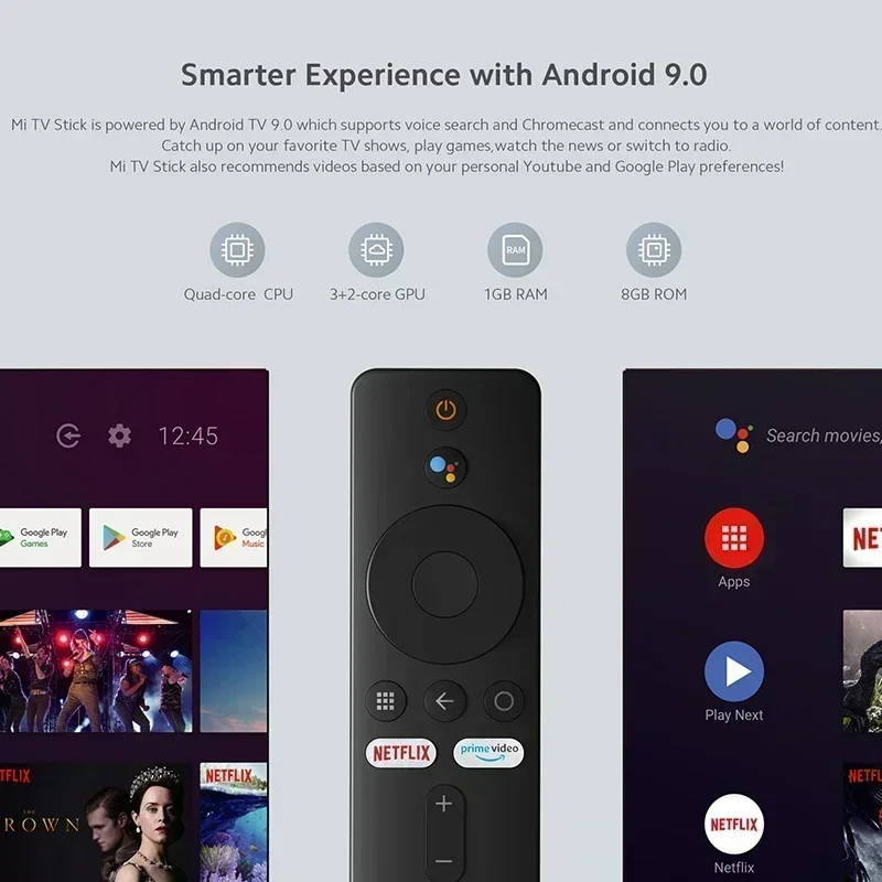 Глобальная версия Xiaomi Mi TV Stick Android TV 9.0 HDR 1080P 1 ГБ ОЗУ 8 ГБ ПЗУ Портативный мини-телевизор Dongle Wi-Fi Google Assistant