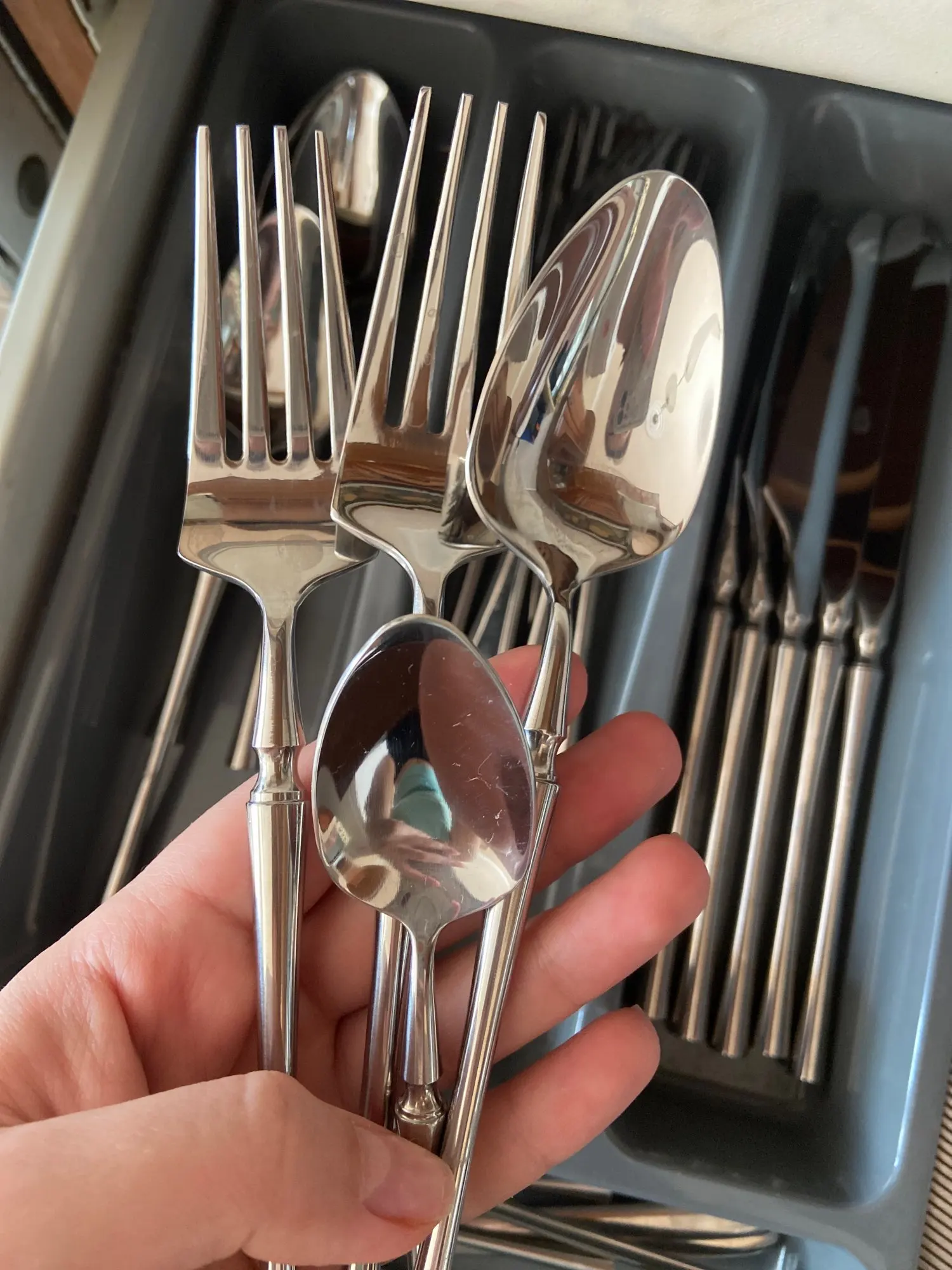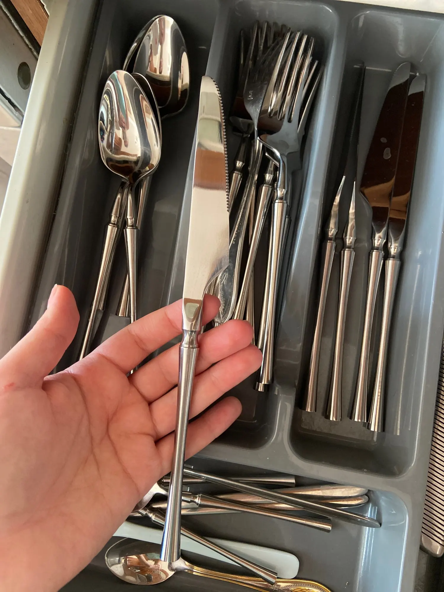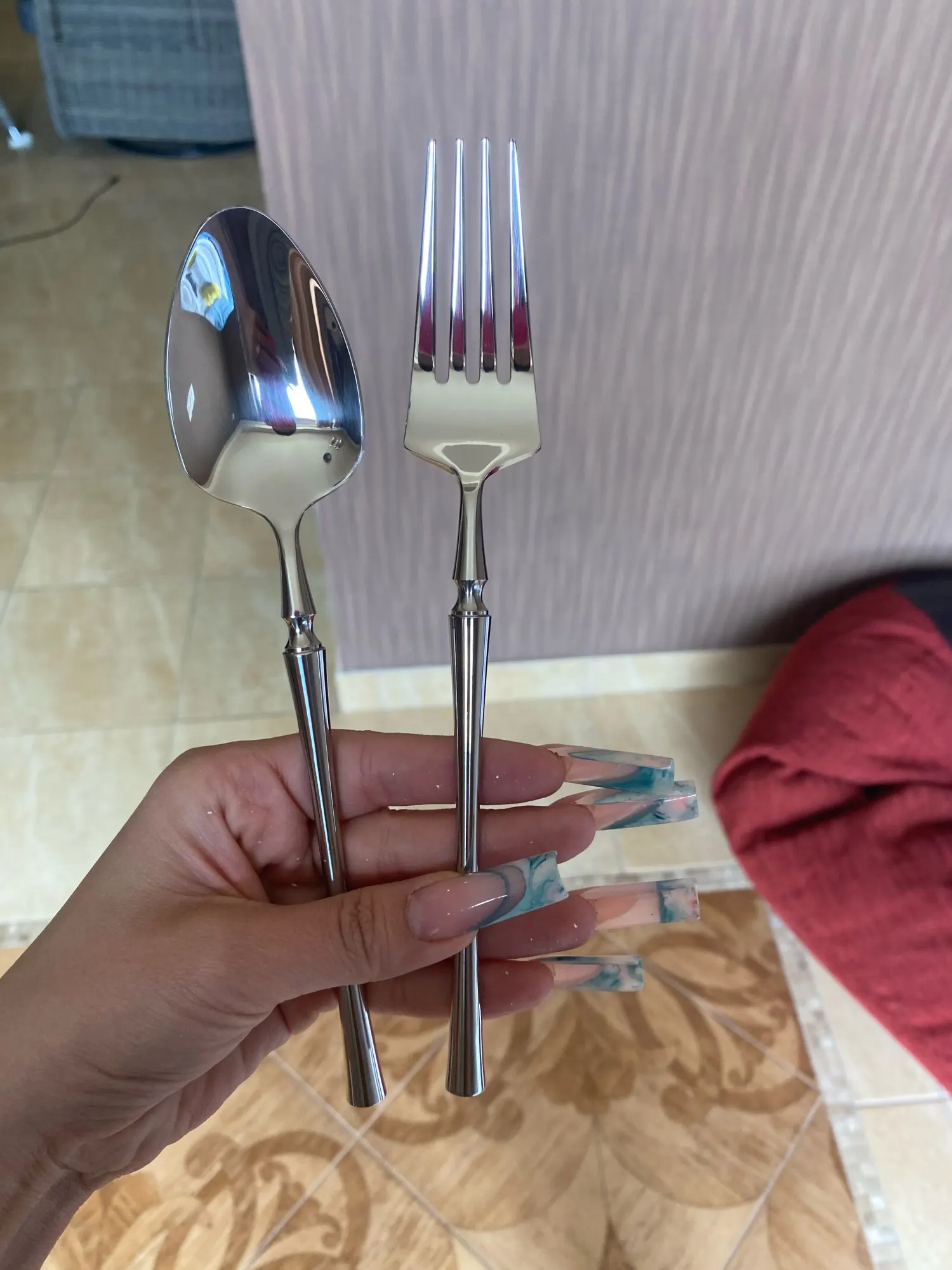Визуал выше всех похвал, очень стильно выглядят(брал набор с прямоугольными ложками), вы испытаете море положительных эмоций! Что касаемо эксплуатации, сразу скажу что есть небольшой дискомфорт при взаимодействии с приборами, первое это то что они тяжелее, наверное раза в 2 в сравнении со старыми моими приборами, второе это заострённые углы у ложки, т.е. не именно форма прямоугольная, а именно у самого метала, и нет, не острые, наверное правильно назвать грубые, это сильно бросается в глаза т.к. у старых приборов метал гораздо тоньше и от времени уже все края и изгибы отшлифованы постоянным мытьём и взаимодействии с посудой. Сравнивать конечно с моими приборами наверное ещё времён ссср глупо, т.к. это совсем другое поколение и метал там совсем другой, поэтому вопрос времени, пару недель-месяц и привыкнешь. Ниже девушка писала что из-за формы ручки ложка в руке прокручивается, думал что действительно будут проблемы с этим, но зря волновался, ничего не прокручивается. Каждый прибор в индивидуальном толстом пакетике, т.е. можно не переживать что в процессе доставки приборы поцарапаются.