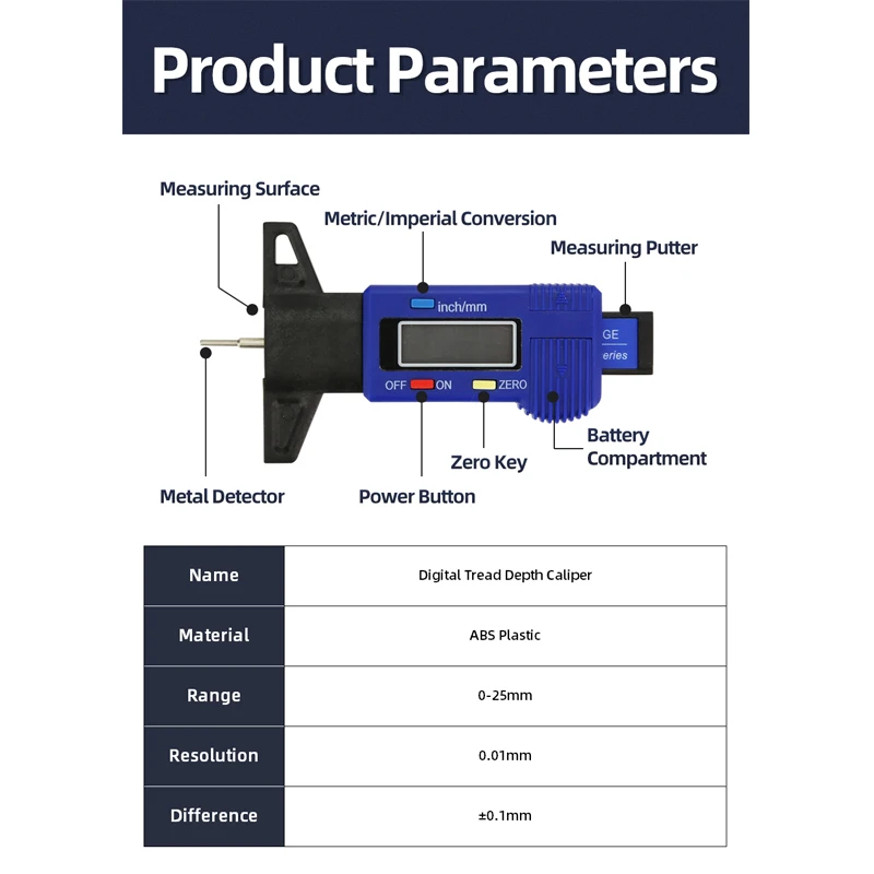 Цифровой измеритель толщины протектора шин, автомобильный толщиномер с системой контроля глубины протектора