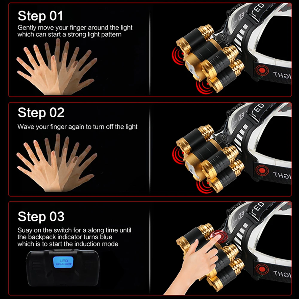 Самый мощный Головной фонарь со светодиодным датчиком 18650 лм, Головной фонарь T6, Головной фонарь, фонарик, светильник фонарь с аккумулятором, лучший выбор для кемпинга, рыбы