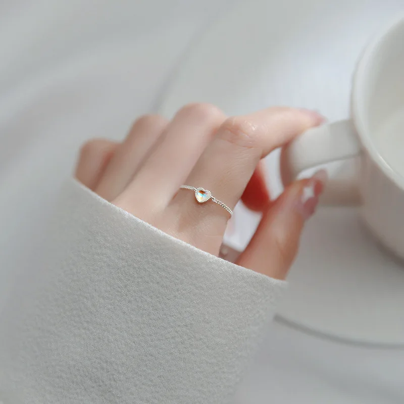 TrustDavis Настоящее серебро 925 пробы модное милое романтическое сердце любовь цепочка Открытое кольцо для женщин Свадебные ювелирные изделия DA2397