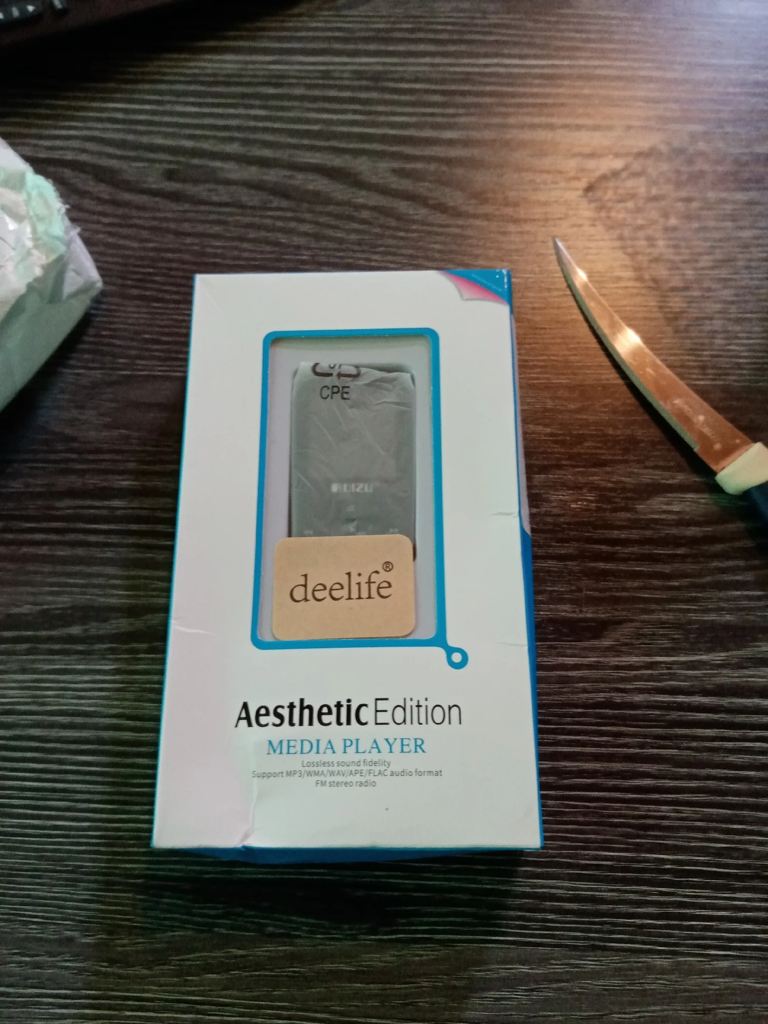 Фирма плеера Ruizu, коробка Deelife. Сфотал для сравнения с сони волкман. для сравнения размера. Удобное меню, качество проигрывания на высоте с наушниками сони.