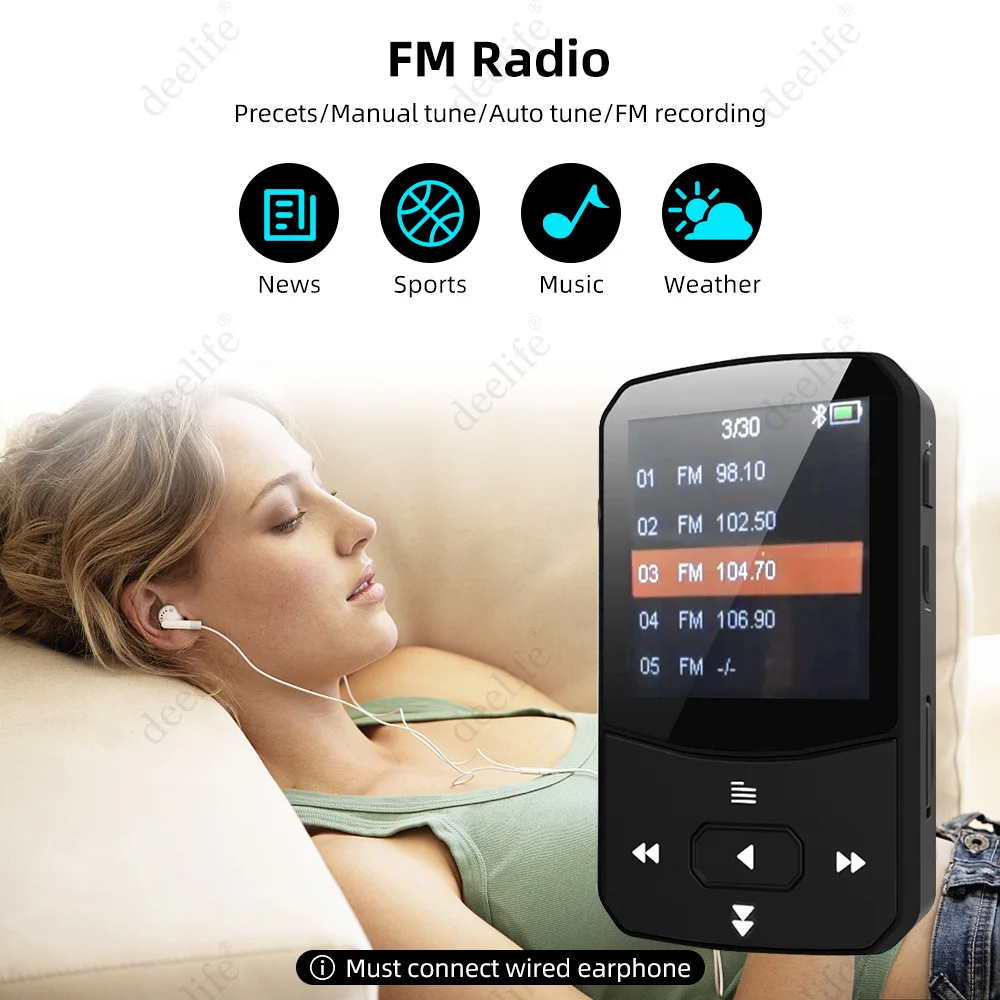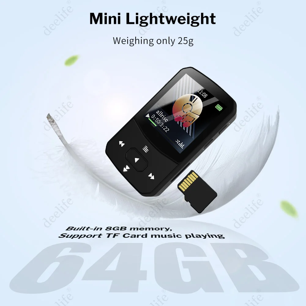 Mp3-плеер Deelife, спортивный, Bluetooth, для бега, с музыкальным воспроизведением, портативный зажим, шагомер, FM-радио, Запись TF, Mini Mp 3