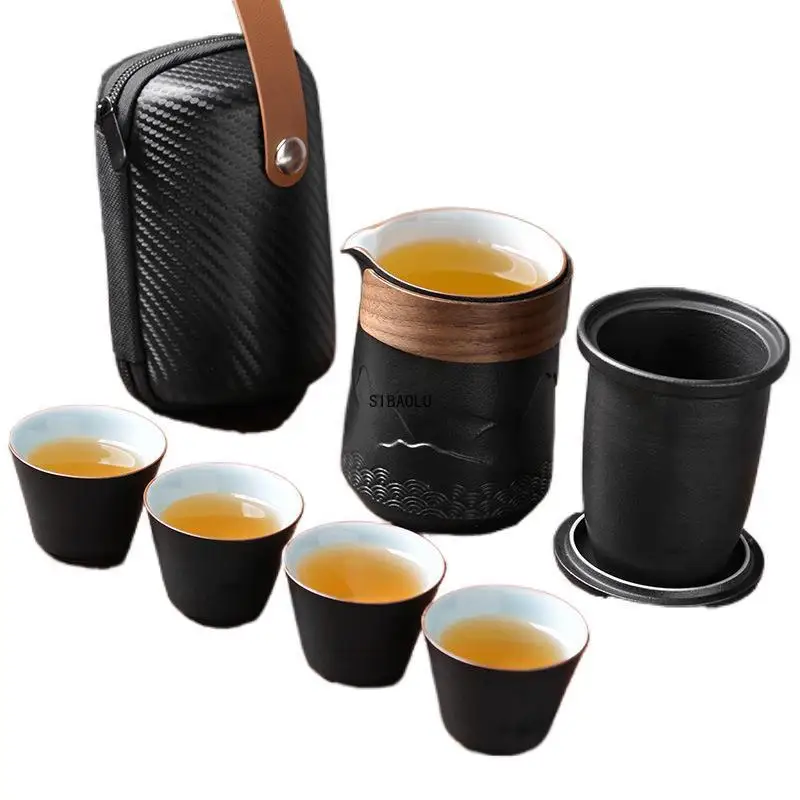 Kuai Ke чашка для путешествий чайный набор сумка для переноски кунг-фу чайная чашка один горшок четыре чашки уличный чайник маленький Набор чашек