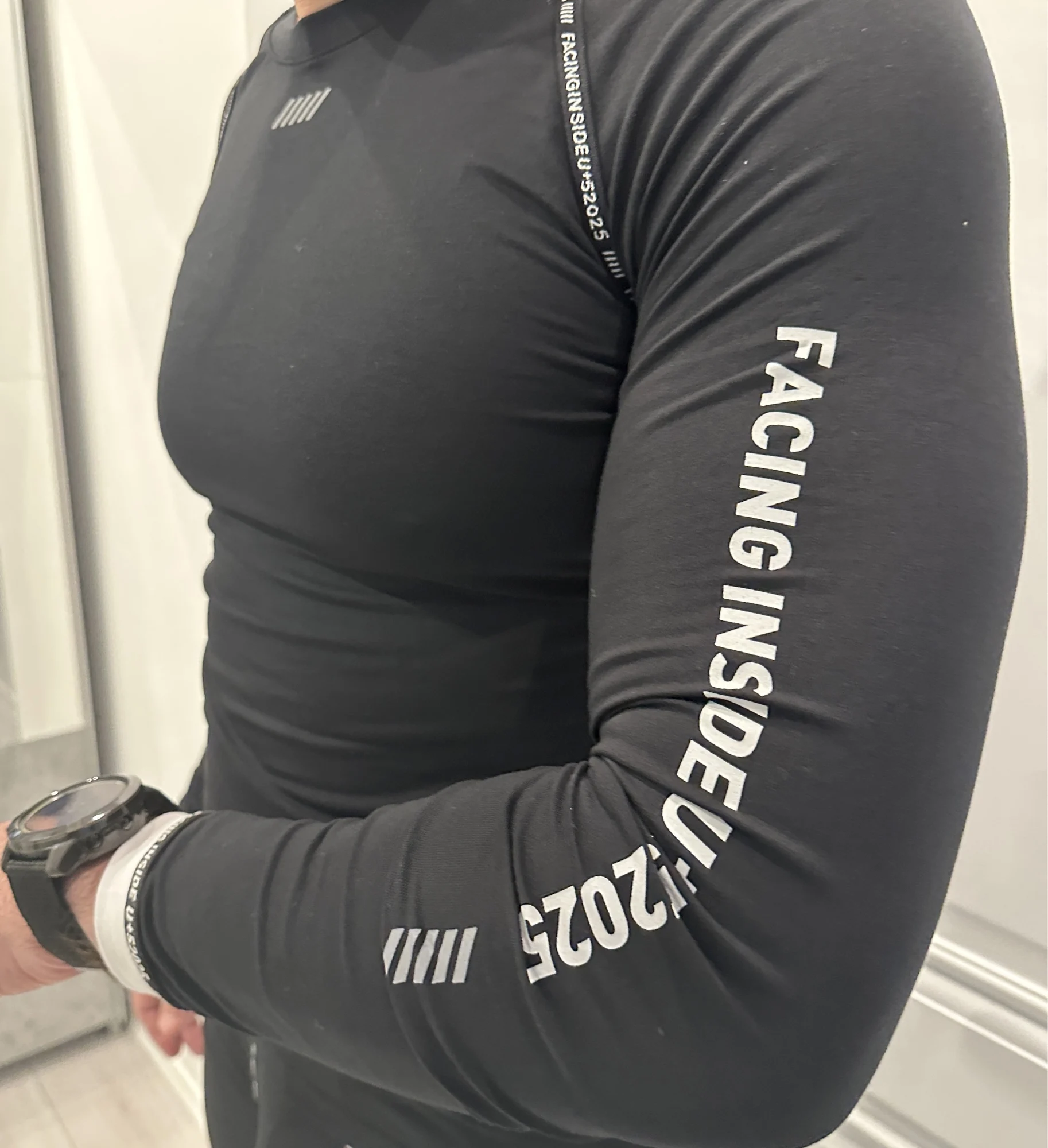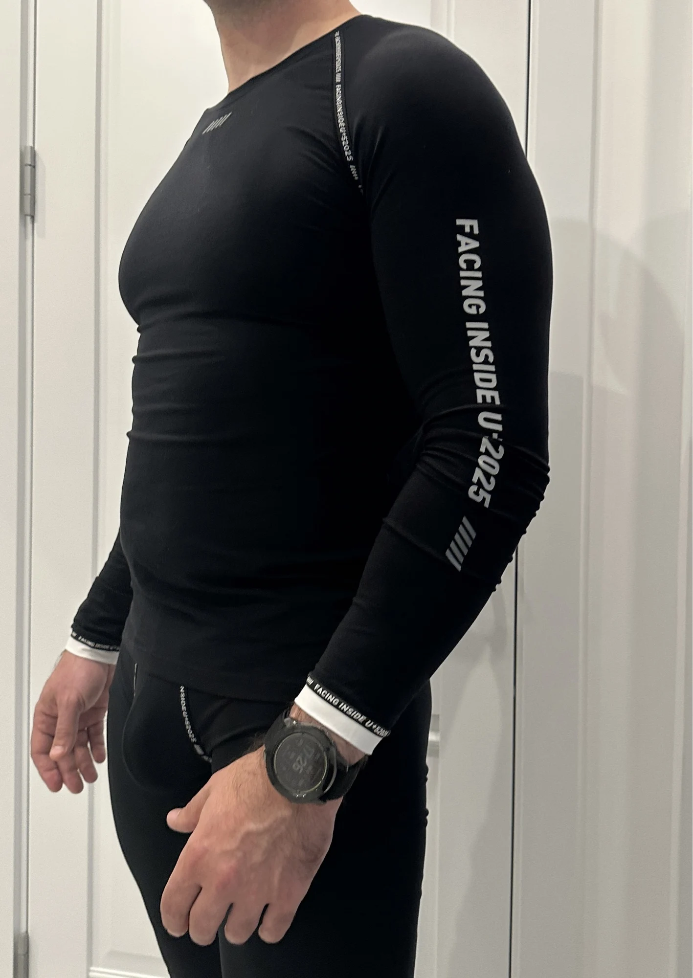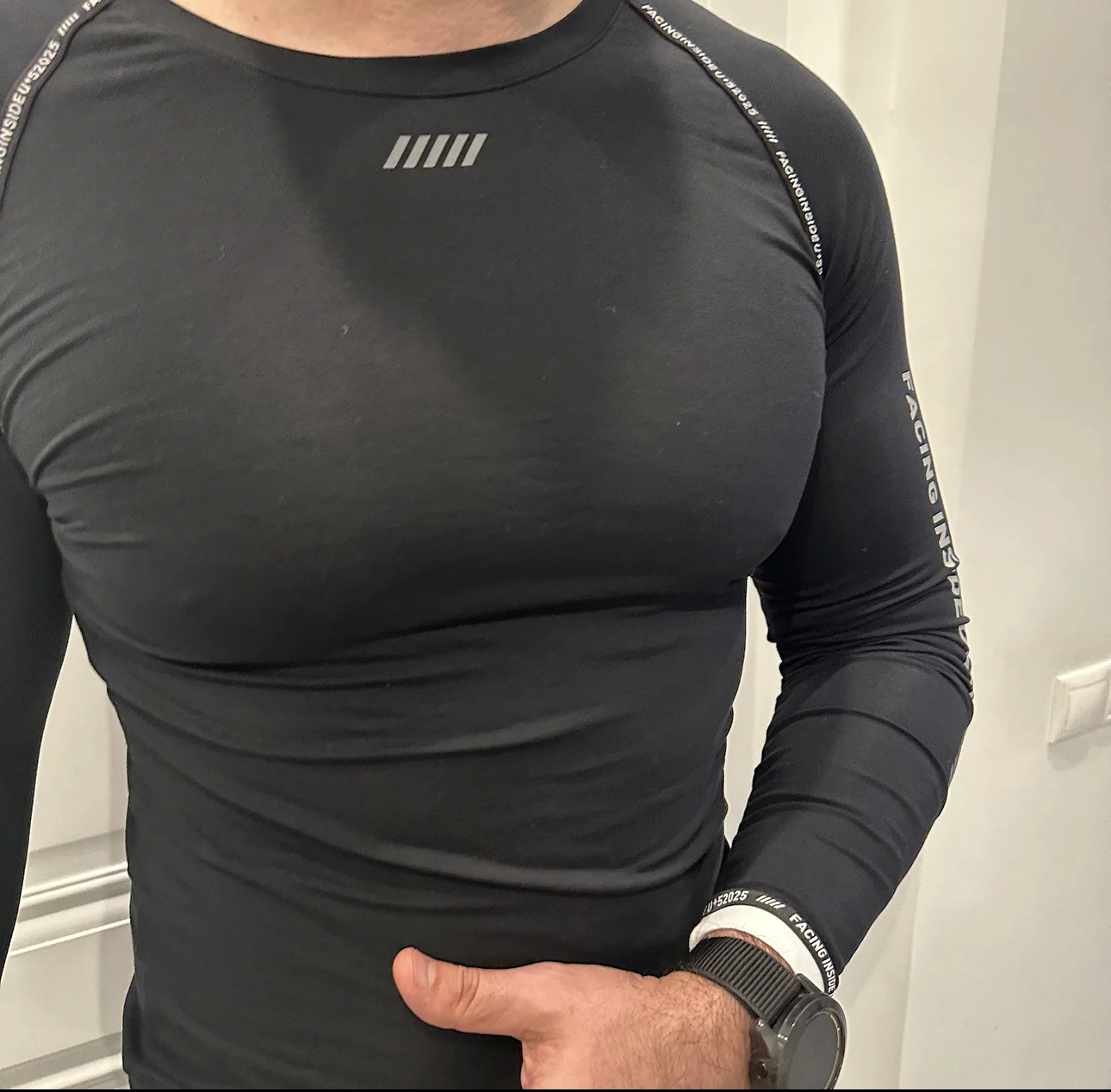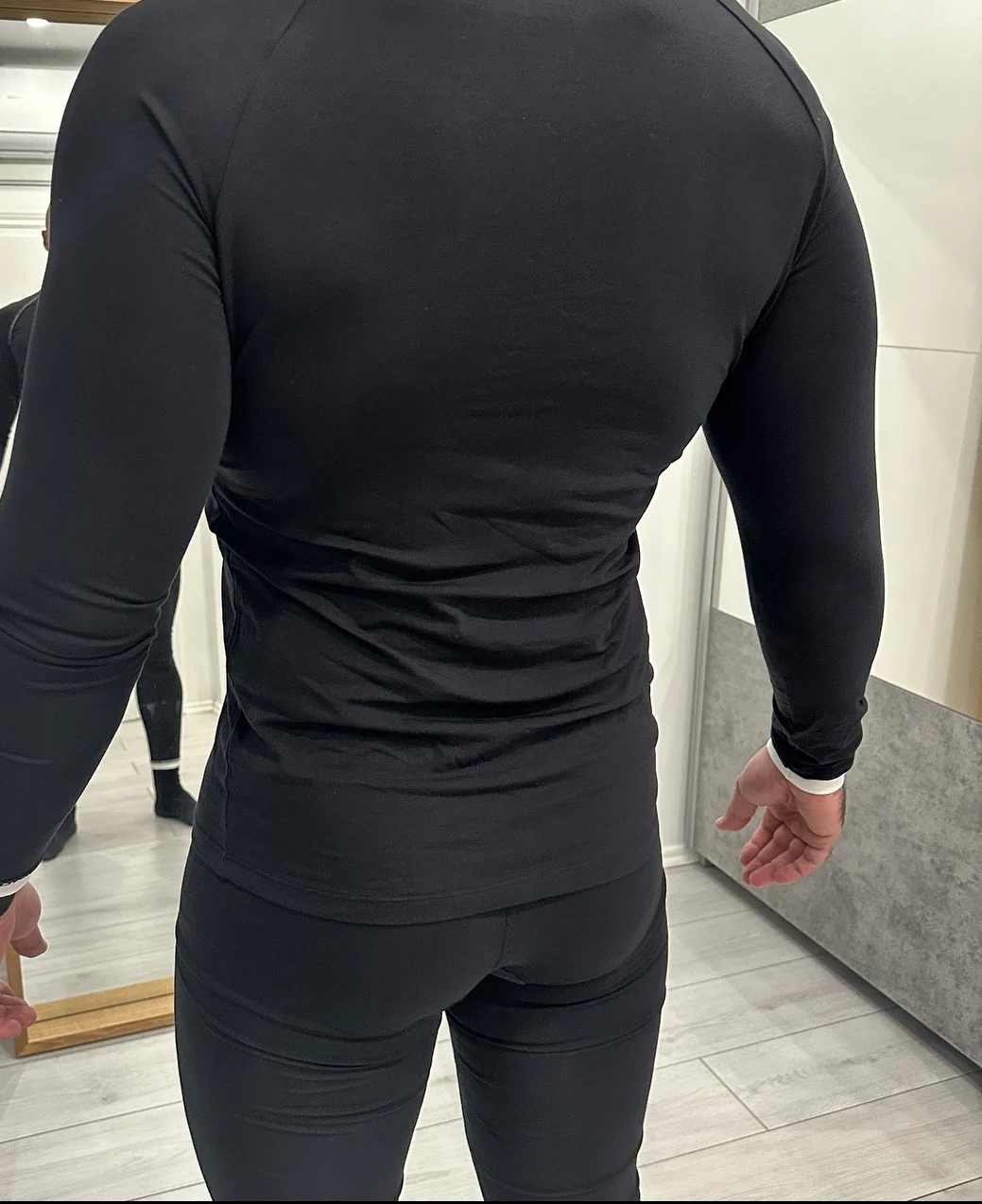 Шикарное спортивное термобелье. Комплект выполнен из довольно эластичной ткани. Костюм идеально сел по фигуре и не сковывает движения. Материал плотный, приятный к телу и не просвечивается.