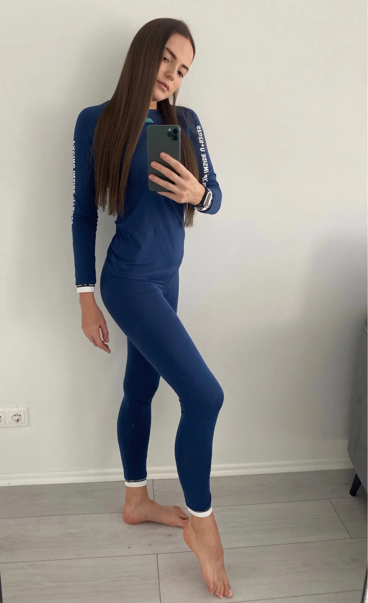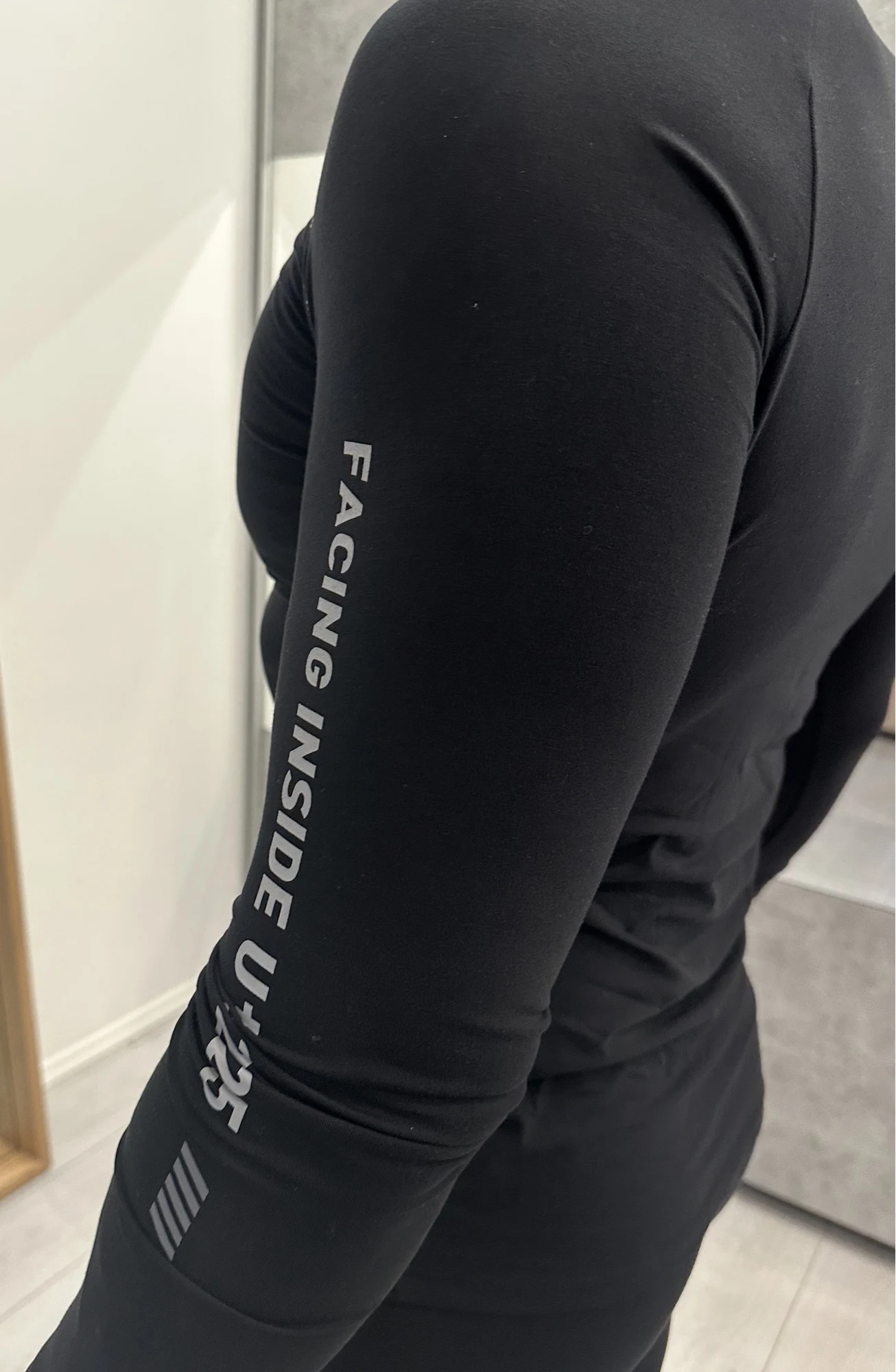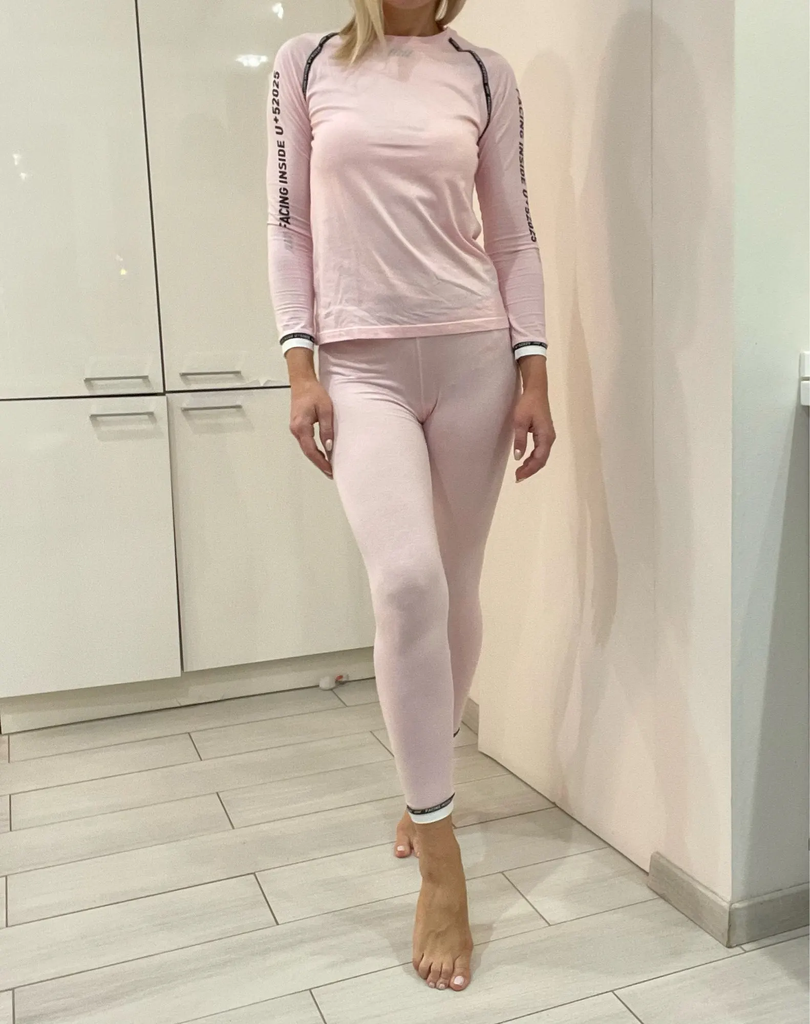 Потрясающий комплект. Стильное термобелье. Красивая спортивная расцветка, ткань очень приятная к телу. Оригинальные манжетики. Ткань тянется и отлично подчёркивает фигуру.