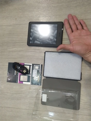 Доставка за 20 дней. Двойная защитная плёнка! Супер! Продавец обозначил модель для покупки чехла отдельно. Я не вижу что она была в употреблении. Это великолепно! Я давно мечтал о книжке с подсветкой! Продавцу стоит доверять.