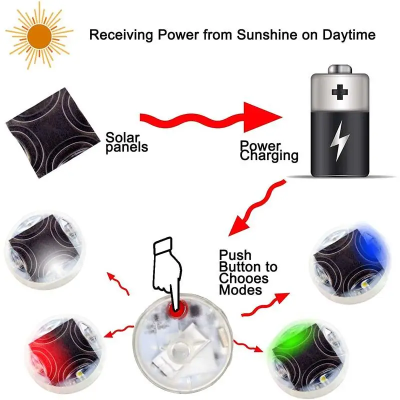 ?New design for solar car tire lights,when the vehicle is moving and turn off when it stops.These lights is solar charging, lithium battery power storage, no battery and wiring required,free wiring, maintenance-free, no need to replace the battery, efficient and environmentally friendly.