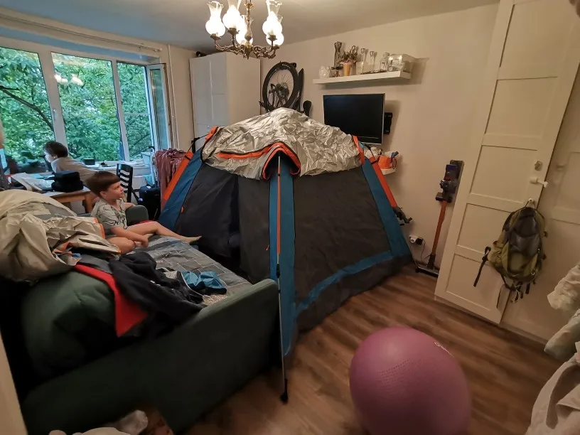 материал тонкий, местами есть дефекты ткани, 2 палки с браком шарнирного соединения, нет оттяжек посреди плоскости, при ветре плоскость проминается внутрь, сокращая пространство, из-за этого при росте 187 не могу вытянуться, без ветра хорошо. При сильном ветре, который часто у нас на побережье, думаю сломается палатка. ДВА ПЛЮСА, автомат и внутри темно, раннее летнее солнце не будет в 3.30 утра. Нижняя часть пола просвечивается, но терпимо. 8 лет пользуюсь дорогой палаткой-автомат, есть с чем сравнивать, но дети растут, становятся тесно. При выборе смотрел только на автоматы, но у этой механизм хлипкий.Sudenko A. 3 сентября 2023