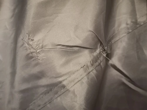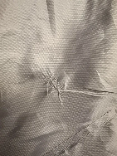 Пришла с браком. Видимо пока шили зажевало ткань рядом и там теперь мелкие дырки. боюсь дно будет промокать, думаем как решить этот вопрос.