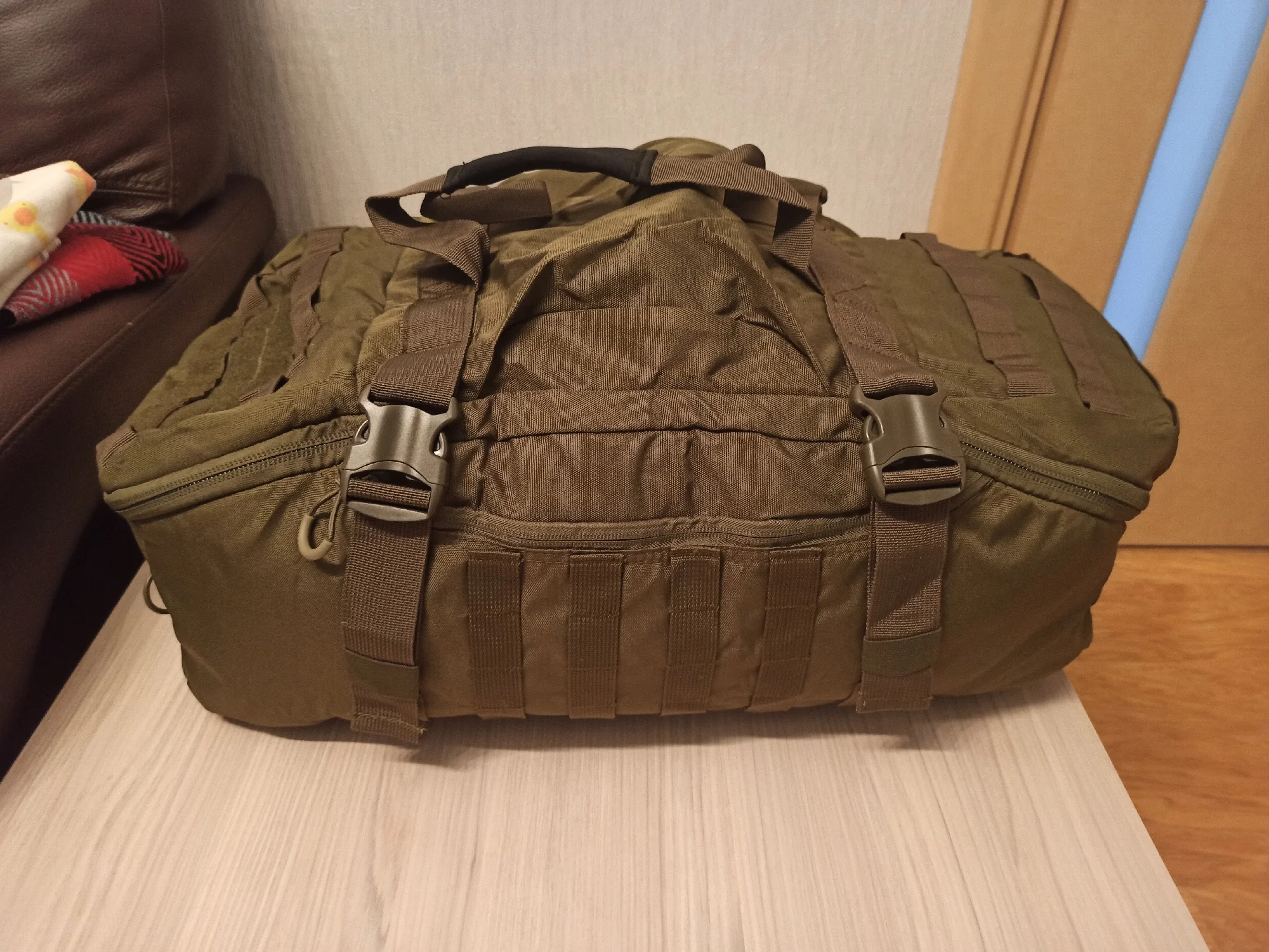 Сумка доехала очень быстро, качество хорошее, заказывал на 60 литров. в ней куча навесных, можно носить как рюкзак, можно на плече, можно в руках, в общем выбор за вами. В основном разделе можно сделать перегородки, получится три раздела, в верхней части сумки тоже есть кармашки на молниях, как с внешней, так и с внутренней стороны, при закрытии молнии основного раздела, можно повесить замочек. Продавца рекомендую, товар хороший.Evgenyi V. 15 июня 2023