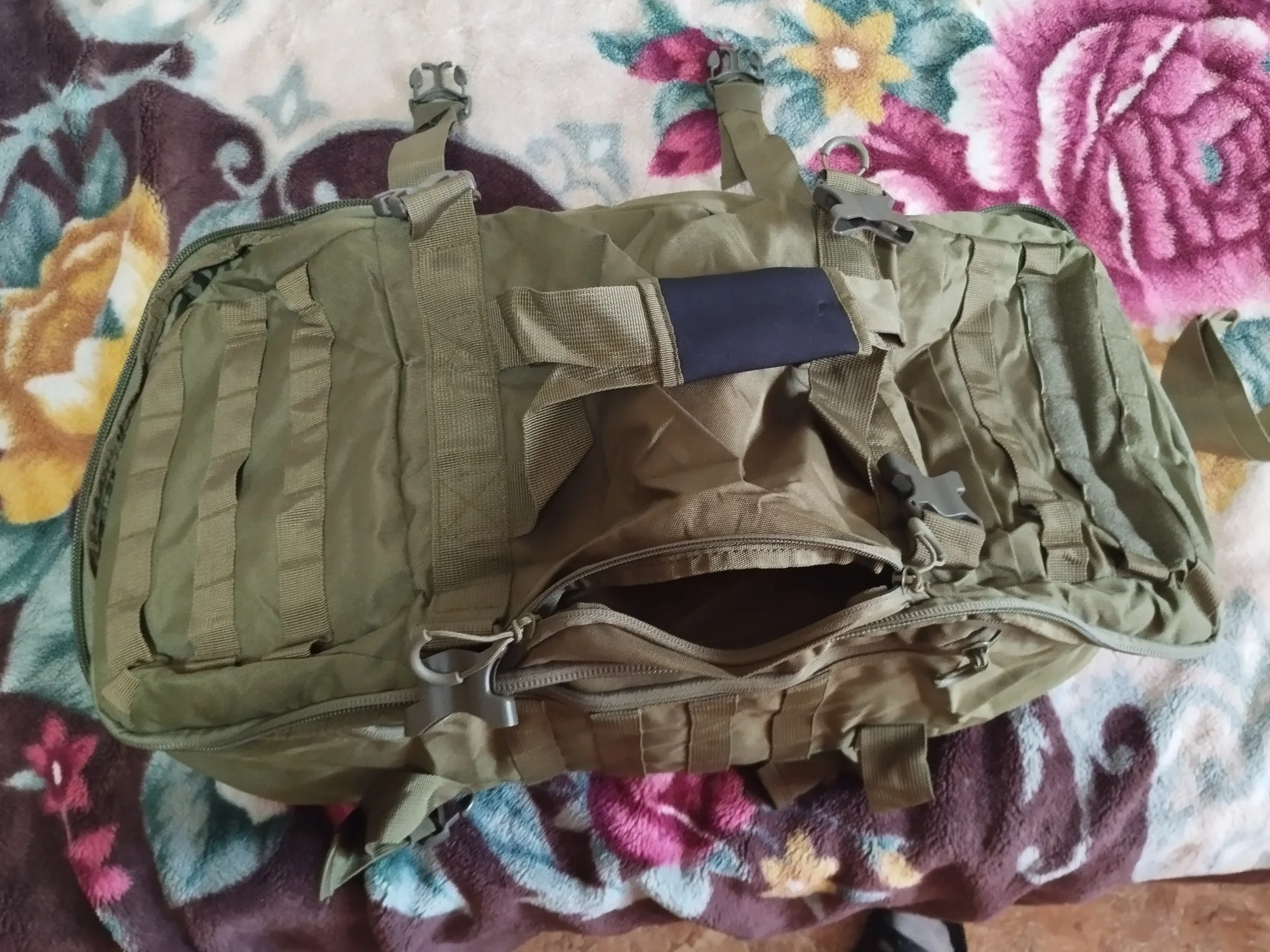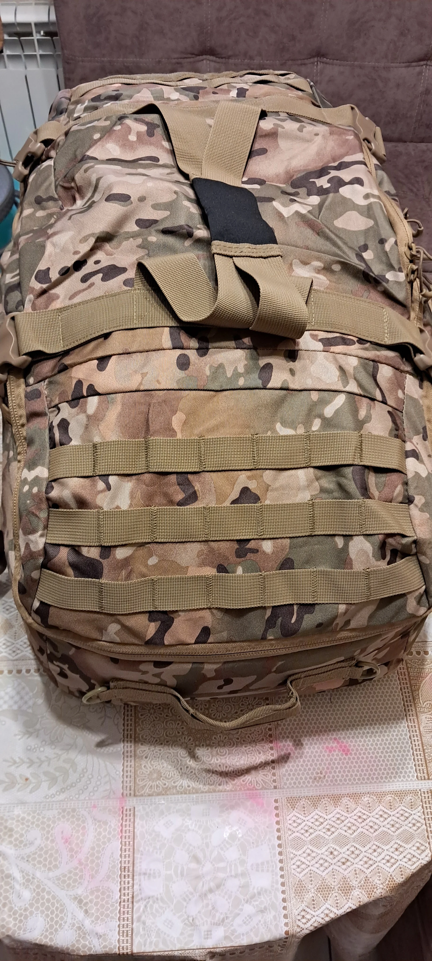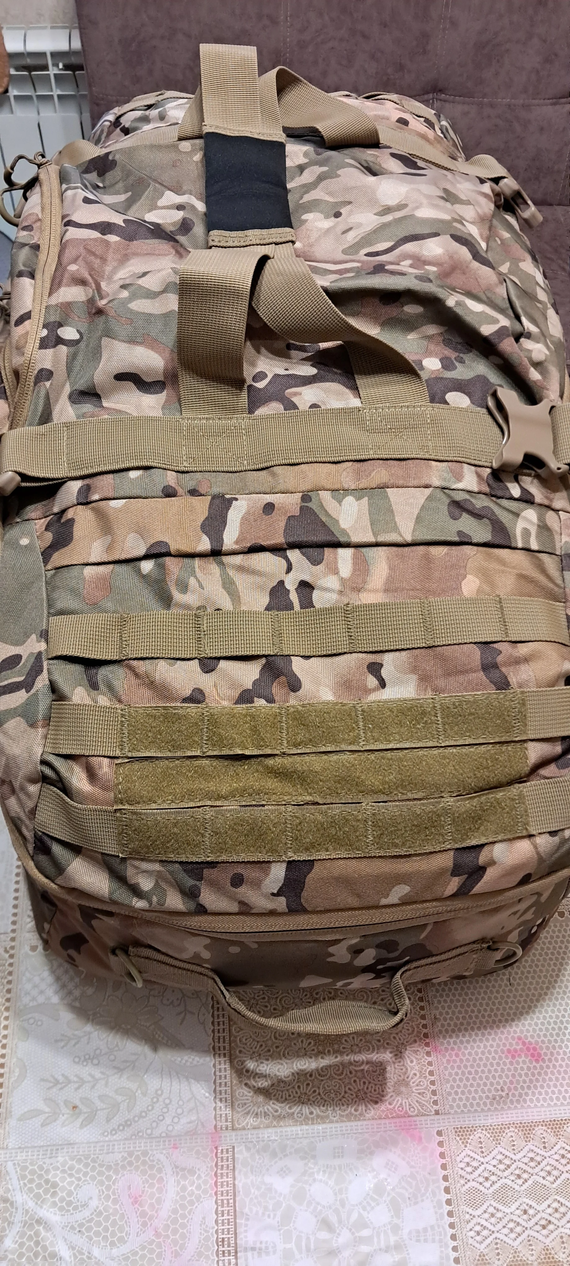 Посылка пришла в срок, из Китая в Россию за 2 недели. Упаковка - моё почтение, твердый полиэтилен, с отверстиями для воздуха, проклеен скотчем добротно. Сама сумка на 80л выполнена полностью из полиэстера, не кордура 1000 конечно, но для переноски не слишком тяжелых вещей сойдет на ура. Внутри подъемные перегородки есть, что позволяет разделить внутреннее пространство сумки на 3 раздельные секции. На откидное стороне два кармана, которые прошиты с виду похоже на какой-то флисовый подклад. Что вызывает нарекания: 1) Если вы собираетесь носить сумку за плечами, то нижняя часть крепления лямок имеет всего один ряд строчки (см последнюю фотографию) и в случае переноски/резких подъемов может не выдержать. 2) Главная ручка для переноски имеет тот же мягкий на ощуп материал а-ля флис, что в результате использования скорее всего, приведет к его стиранию, порче. 3) Пластик фастексов вызывает подозрения, слишком дешевый пластик, зима покажет. Подводя итог, вполне добротная сумка за такую цену.Ilya Z. 25 октября 2022