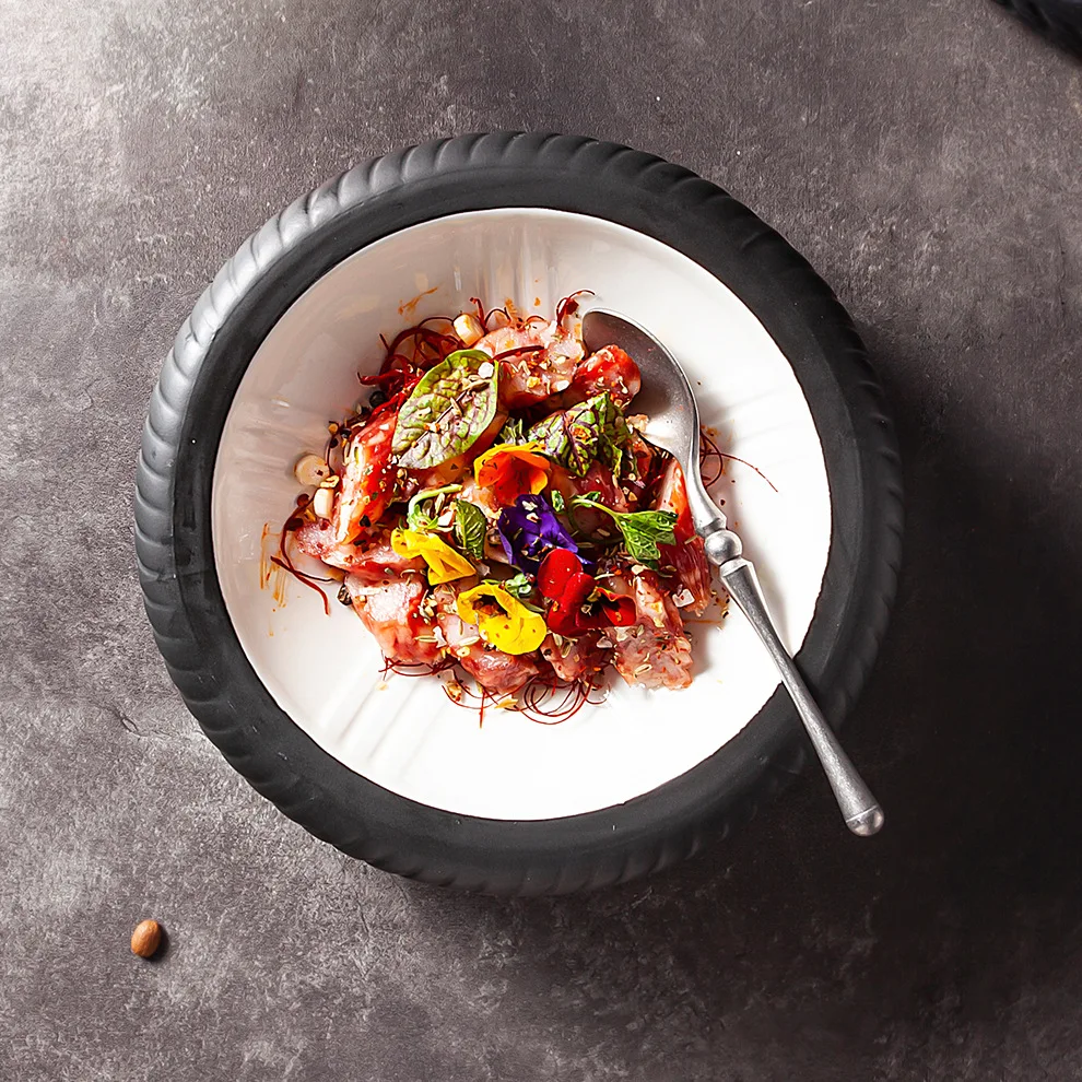 Креативная керамическая посуда ins для отеля, новая тарелка с улучшенным ощущением, 8-дюймовый круглый диск, промышленный ветер