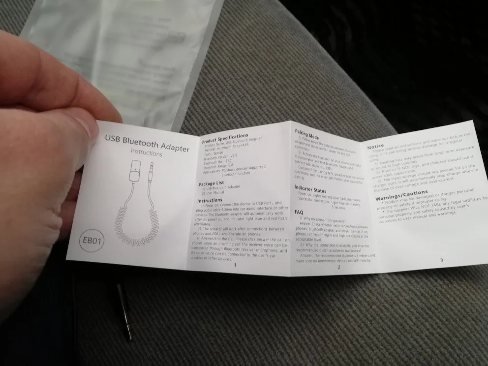 Отличный адаптер, довольно качественный. Упакован хорошо, в фирменный пакет, подключается без проблем. Качество звука, в моём случае, в разы лучше чем с флэш карты, но немного потерял в громкости (не значительно). В комплекте есть инструкция на английском и китайском. Адаптер рекомендую