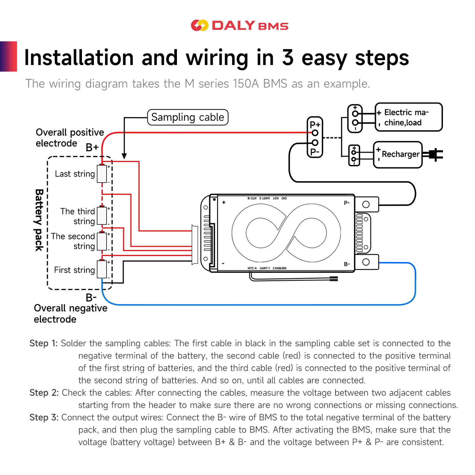 очень живучий бмс, много ошибок при сборке простила, будьте аккуратнее чтобы потом не переделывать уже разбалансированные и перезаряженные ячейки я хот и много раз собирал аккумуляторные блоки но допустил ошибку тоесь выход минусовой от бмс перепутал и бмс как бы работала но перезаряд легко допустить,сам шлейф можно и отдельно спаять и только потом одевать на бмс первый нажим делайте с краю шлейфа со стороны черного провода да и обязательно прогоните тестером и не забудьте последний провод установить на плюс ,ато я читаю комментарии у некоторых были схожи симптомы тоесь даже во время зарядки не выключается питание от неё,,,отдельное спасибо продавцу за качество
