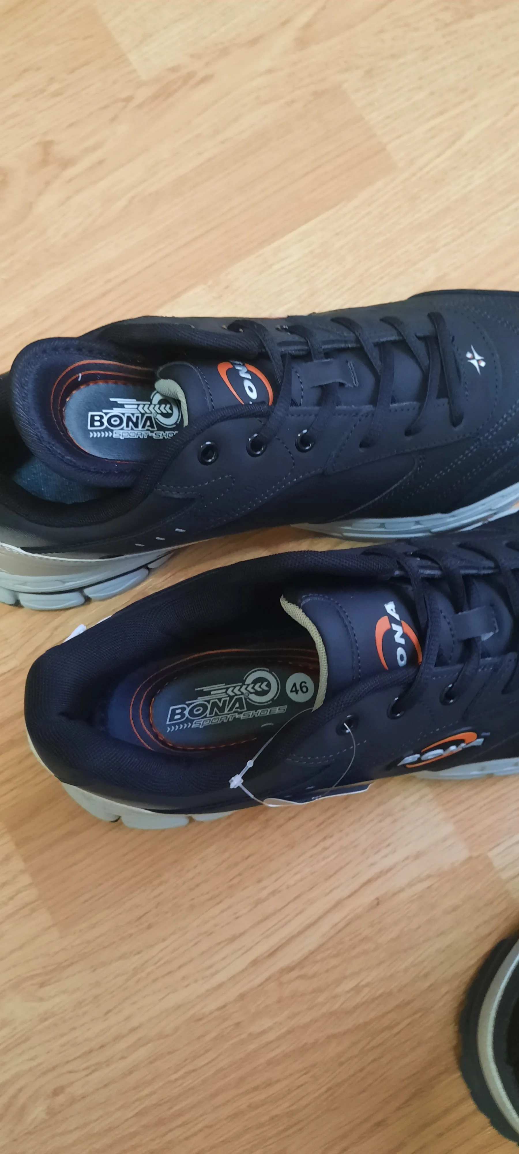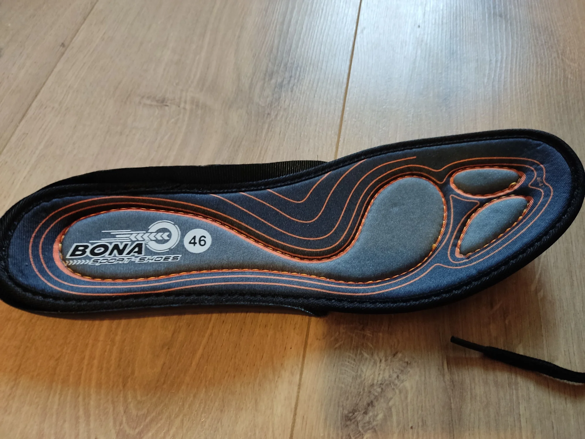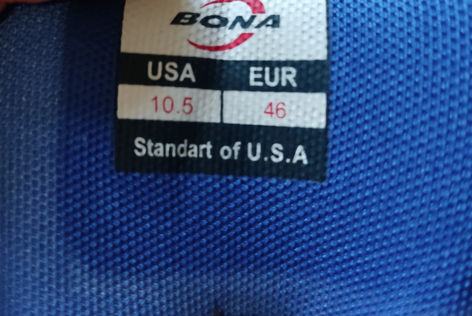 Заказывал размер 10.5, поскольку мой обычный размер EUR 44.5 / US 10.5 / UK 9.5 (Nike, Li-Ning и пр.). Размер на полученных кроссовках Bona 10.5/46 ( видно на фото). По ощущениям ближе к 46, чем к 10.5, ходить можно, а вот бегать будет натирать. Так что доверяйте европейскому размеру, а не американскому, американский размер маломерит, больше похож на британский. Дополнительные стельки, о которых ходят легенды в комментариях, не положили(но я и не просил), но в кроссовках вставлены фирменные, выглядят неплохо. Местами видно следы клея или торчащие нитки. Прочность проверим в эксплуатации, с одной прогулки не развалились. А вот шнурки сразу порвались, когда попытался их развязать. Неприятных ощущений при носке нет, брать можно с учётом моментов описанных выше