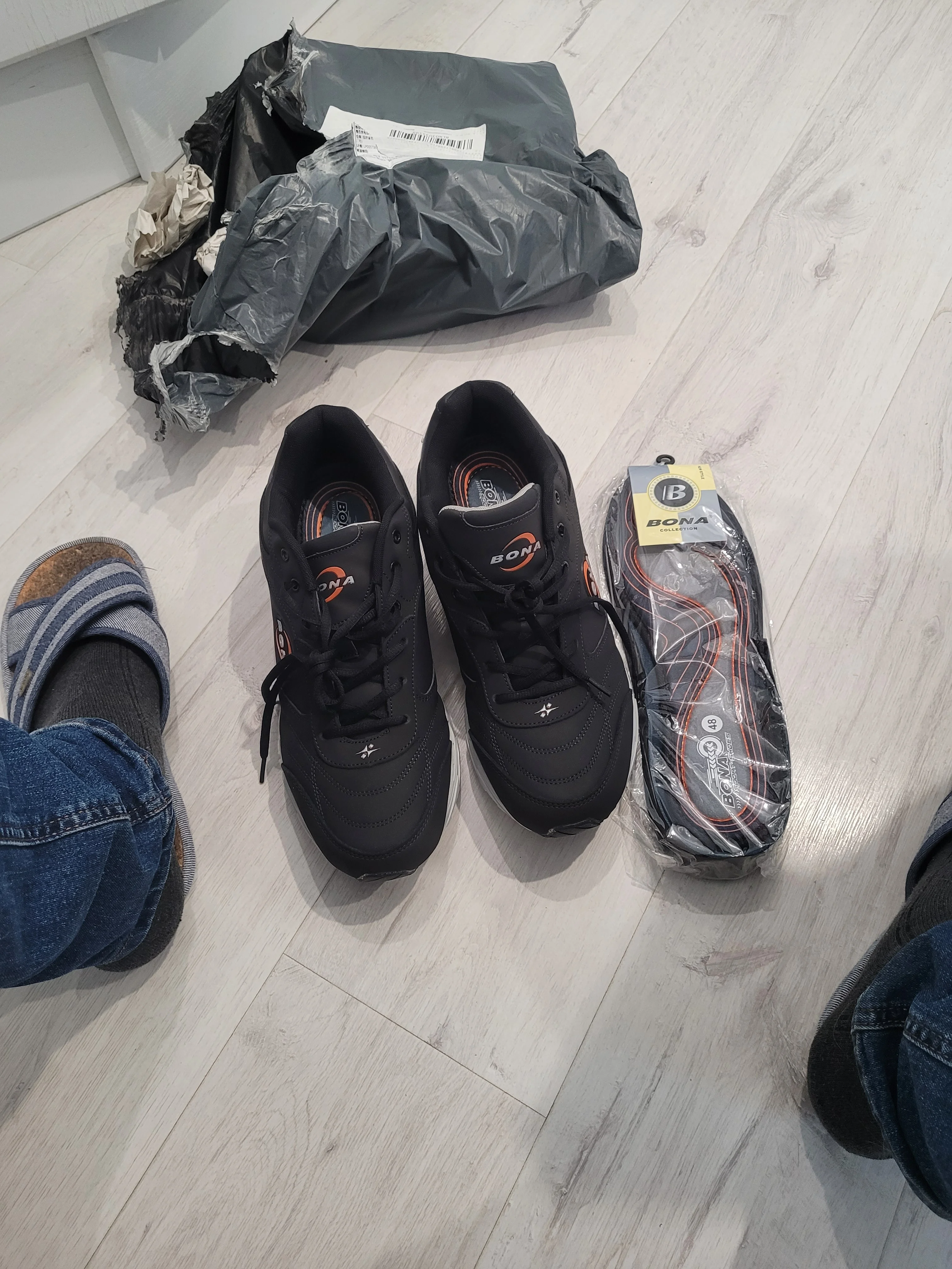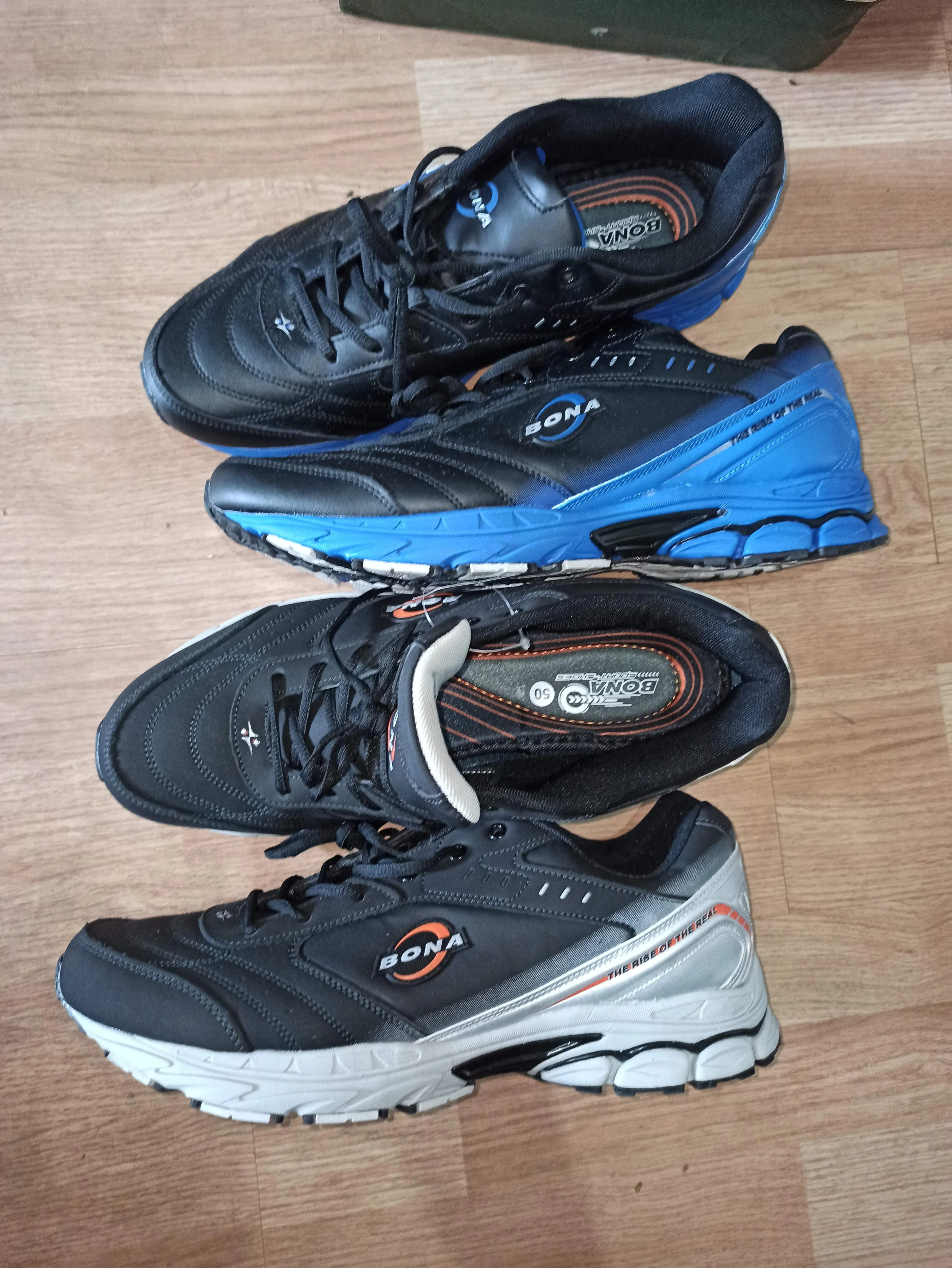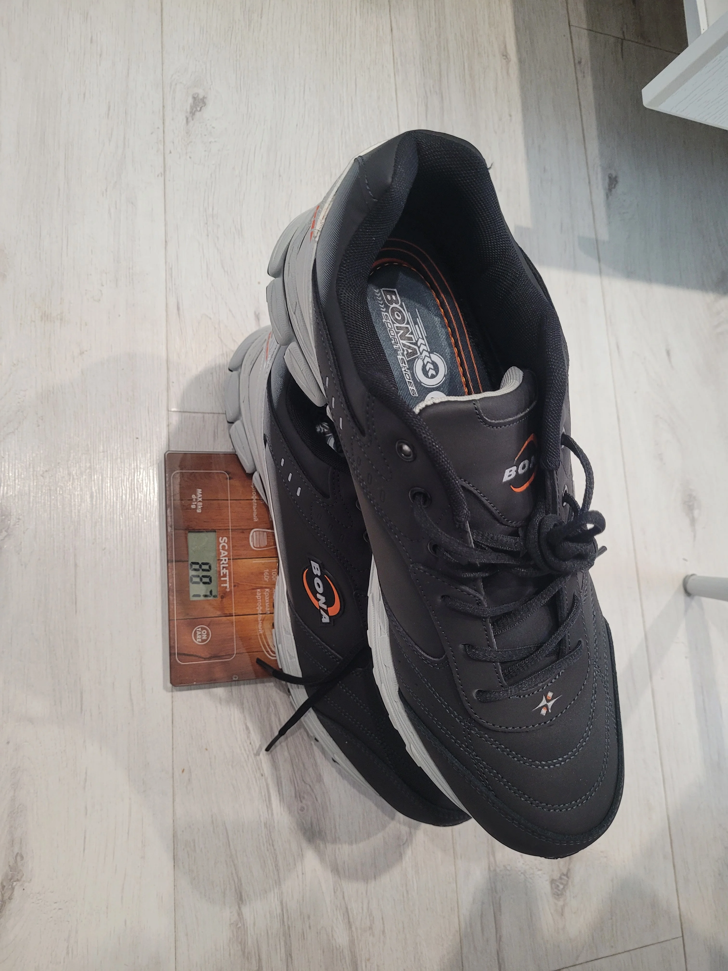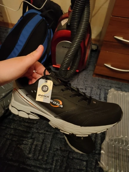 Заказывал размер 10.5, поскольку мой обычный размер EUR 44.5 / US 10.5 / UK 9.5 (Nike, Li-Ning и пр.). Размер на полученных кроссовках Bona 10.5/46 ( видно на фото). По ощущениям ближе к 46, чем к 10.5, ходить можно, а вот бегать будет натирать. Так что доверяйте европейскому размеру, а не американскому, американский размер маломерит, больше похож на британский. Дополнительные стельки, о которых ходят легенды в комментариях, не положили(но я и не просил), но в кроссовках вставлены фирменные, выглядят неплохо. Местами видно следы клея или торчащие нитки. Прочность проверим в эксплуатации, с одной прогулки не развалились. А вот шнурки сразу порвались, когда попытался их развязать. Неприятных ощущений при носке нет, брать можно с учётом моментов описанных выше