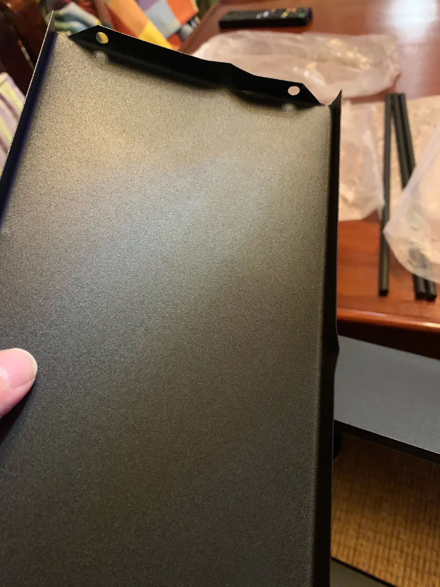 Доставка 1 місяць. Запаковано добре. Дуже тонкий метал. Розміри поличок різні, через це поличка виглядає криво. Це з рубрики очікування і реальність… своїх грошей не вартує. В наборі є інструмент для скручування і чомусь одна рукавичка, дитячого розміру. Я трохи розчарований.
