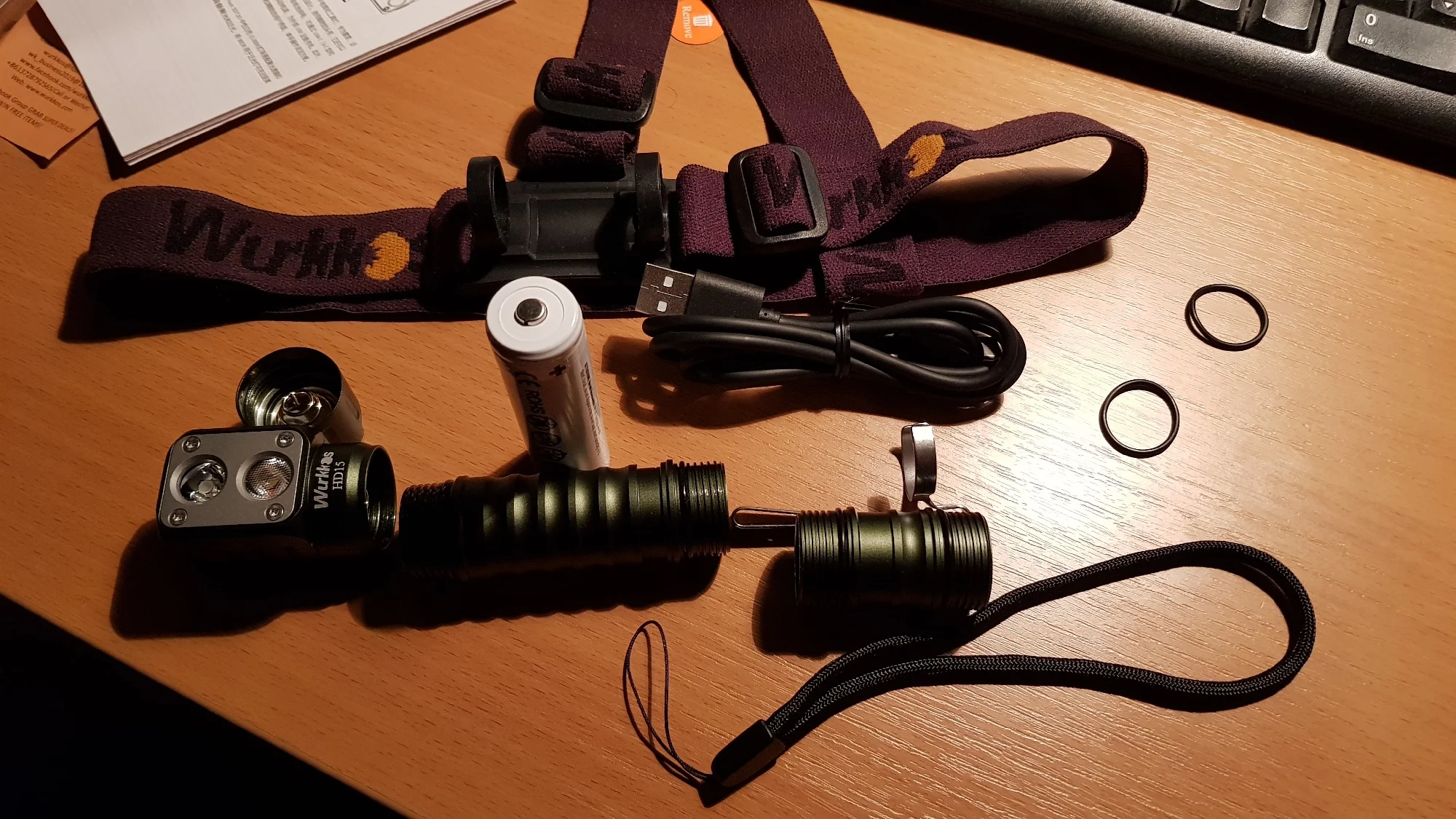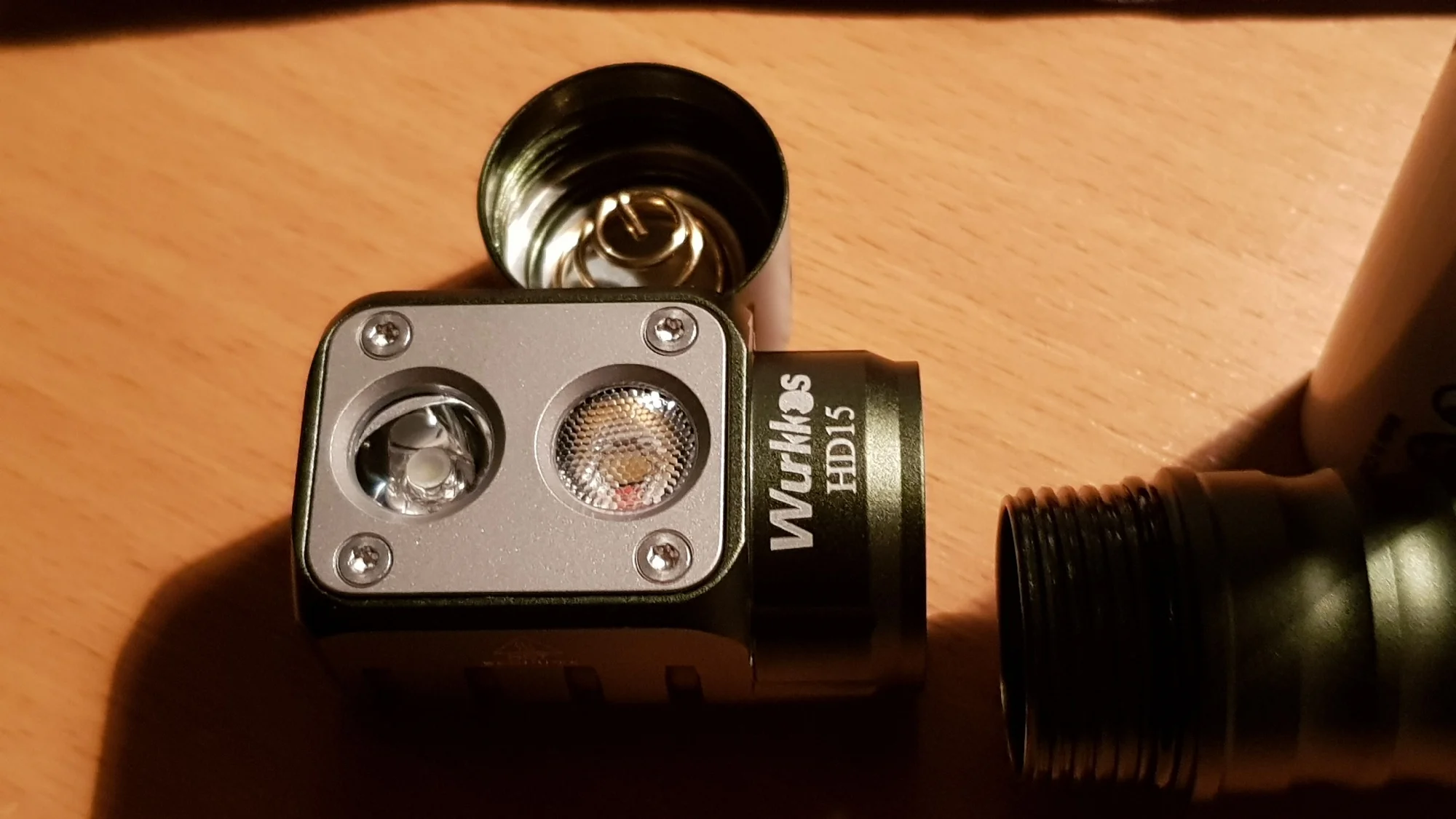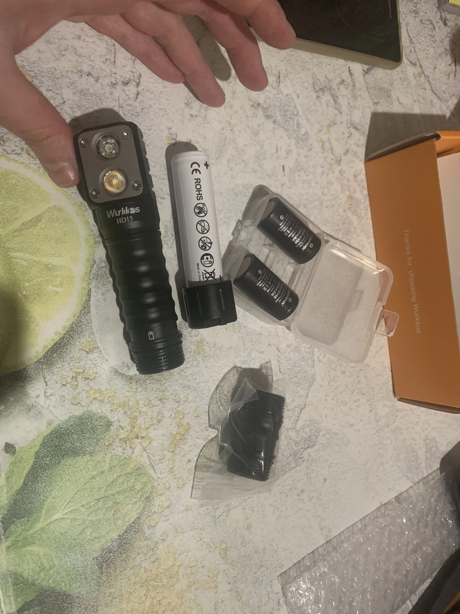 За 14 дней в Минск, Беларусь. Доставка через Латвию, трек вида RA...LV отслеживался полностью. В комплекте: сам фонарь, наголовное крепление для фонаря, АКБ(формата 18650 ёмкостью 3000 mAh, button top), съёмная клипса, запасные О-ринги, темляк, сменная трубка под АКБ формата 18350, кабель для зарядки (usb - typeC), мультиязычная инструкция (есть русский). Фонарь разбирается на три части, резьбы (одинаковые, трубку батотсека можно вкручивать любой стороной) хорошо смазаны, в голове и хвосте пружины. За ближний свет отвечает СД LH351D, за дальний SST20, цветовая температура ~ 5000К. ТИР-оптика (гладкая для дальнего и текстурированная для ближнего света) укреплена в голове с помощью пластины четырьмя винтами torx t6, пластина вероятно из алюминия, не магнитится. В крышке батотсека магнит, фонарь без проблем держится вертикально и горизонтально, есть проушина под темляк. Напротив СД в голове расположен разъем typeC зарядки, закрыт резиновой заглушкой, спрятанной в углублении заподлицо. В торце головы под резиновым колпачком кнопка включения с двухцветным индикатором уровня заряда батареи. Кнопка довольно тугая, нажимается с четким кликом. Свет фонаря приятный, нейтральный белый без цветовых артефактов. Это уже третий фонарь этой модели, приобретенный мной для подарка (в зелёном корпусе брал себе, в чёрном - на подарок тестю). Так что совершенно точно уверен в надёжности и качестве hd15. В качестве примера как светит фонарь - фото на природе, в режиме ближнего света в mid и high. Мне фонарь крайне понравился, рекомендую как товар, так и продавца.