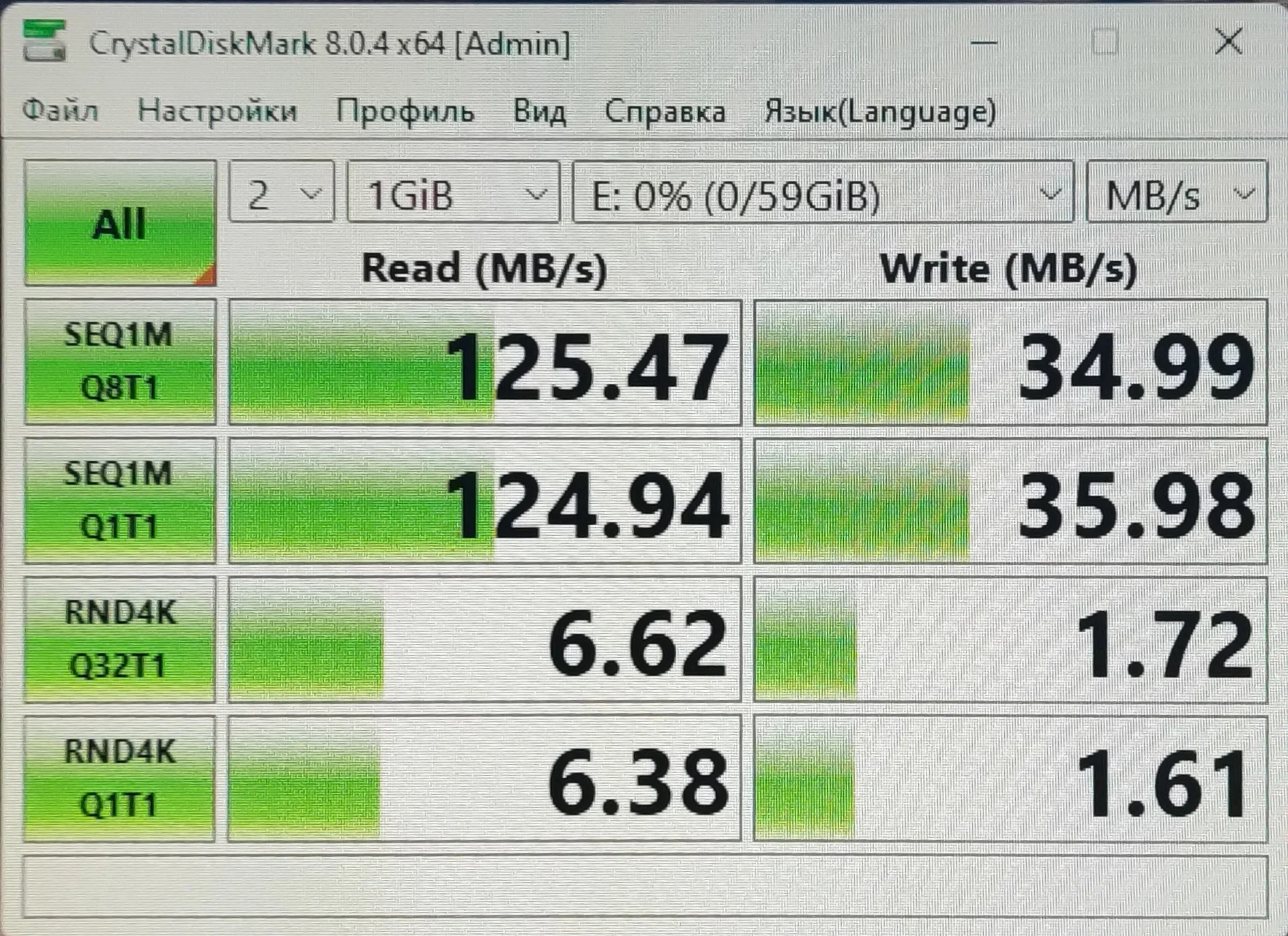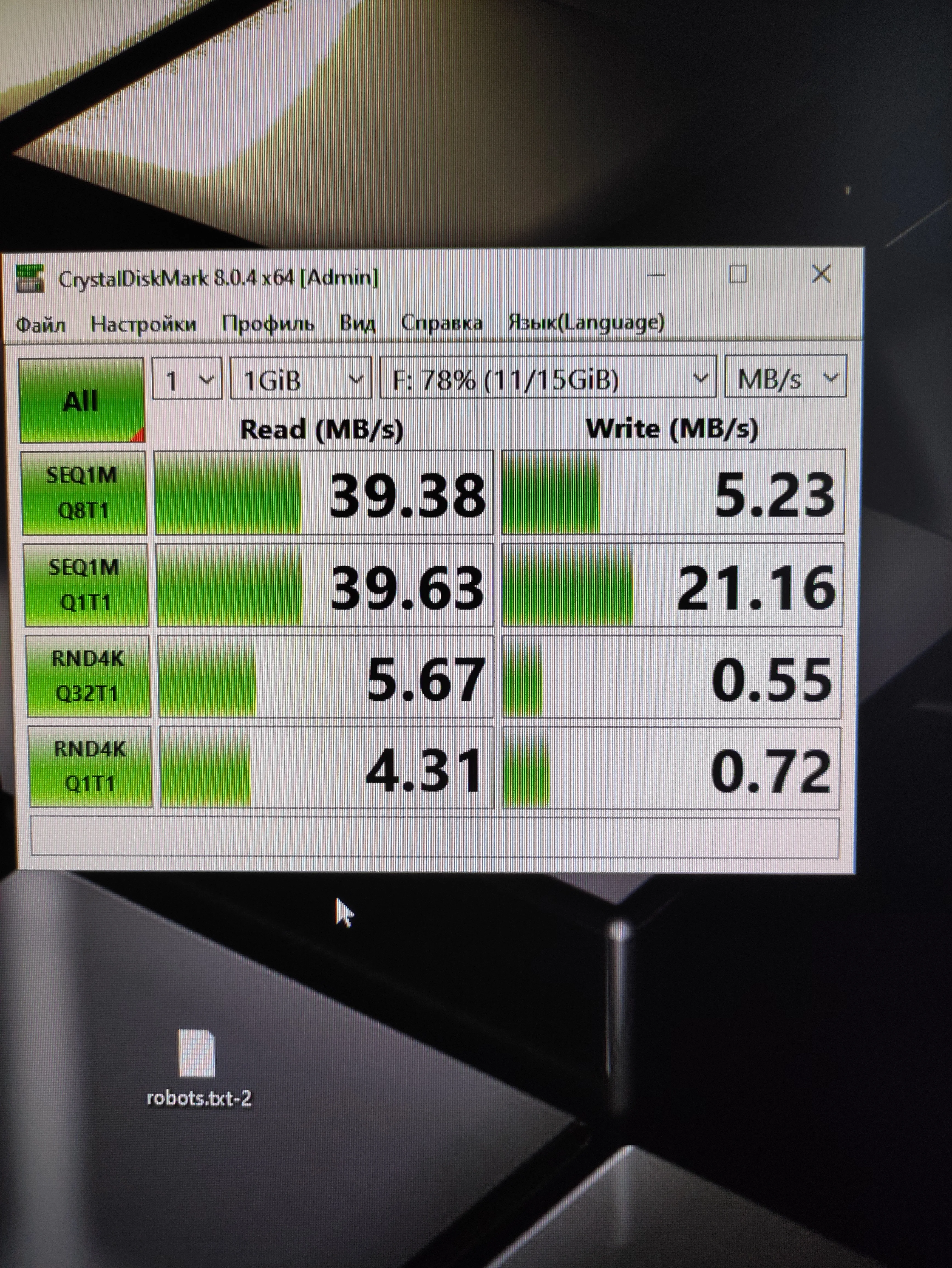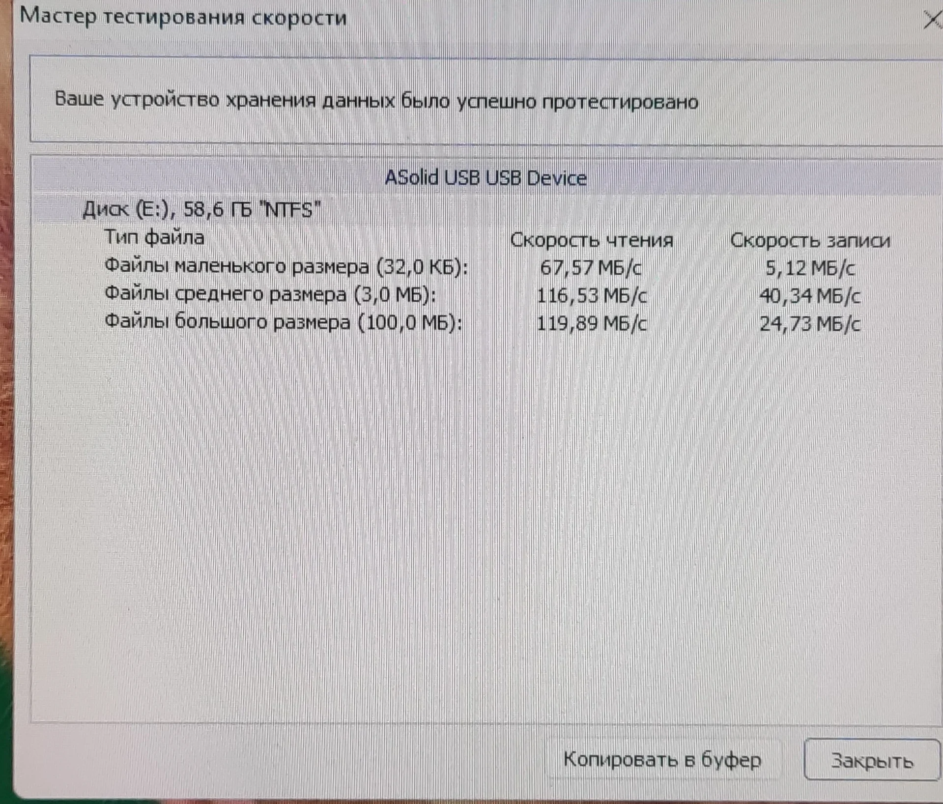 Краткий обзор: 1. Доставка Сдек (быстро, до Москвы долго, до Кузбасса 1 день, походу самолётом. 2. Внешний вид пластика и на ощупь - отлично. Есть светодиод (горит постоянно, любое обращение - моргает) 3. 128GB в реале это ~117 - и это нормально!!! 4. Первичный осмотр показал наличие MBR на флешке и ExFAT (жалею, что не сделал дамп, может нашлось бы что нибудь ^о^ 5. На фотках сама флешка, и пару тестов скорости. Чтение - заслуживает оценки "отлично" , Запись - и не плохая, и не отличная. В среднем скорость держит стабильно - это главное 6. На целостность запись-чтение не проверял, может позже. 7 Цена - отлично, ниже рынка Продавца рекомендую, не общался, фото упаковки нету (выкинул)