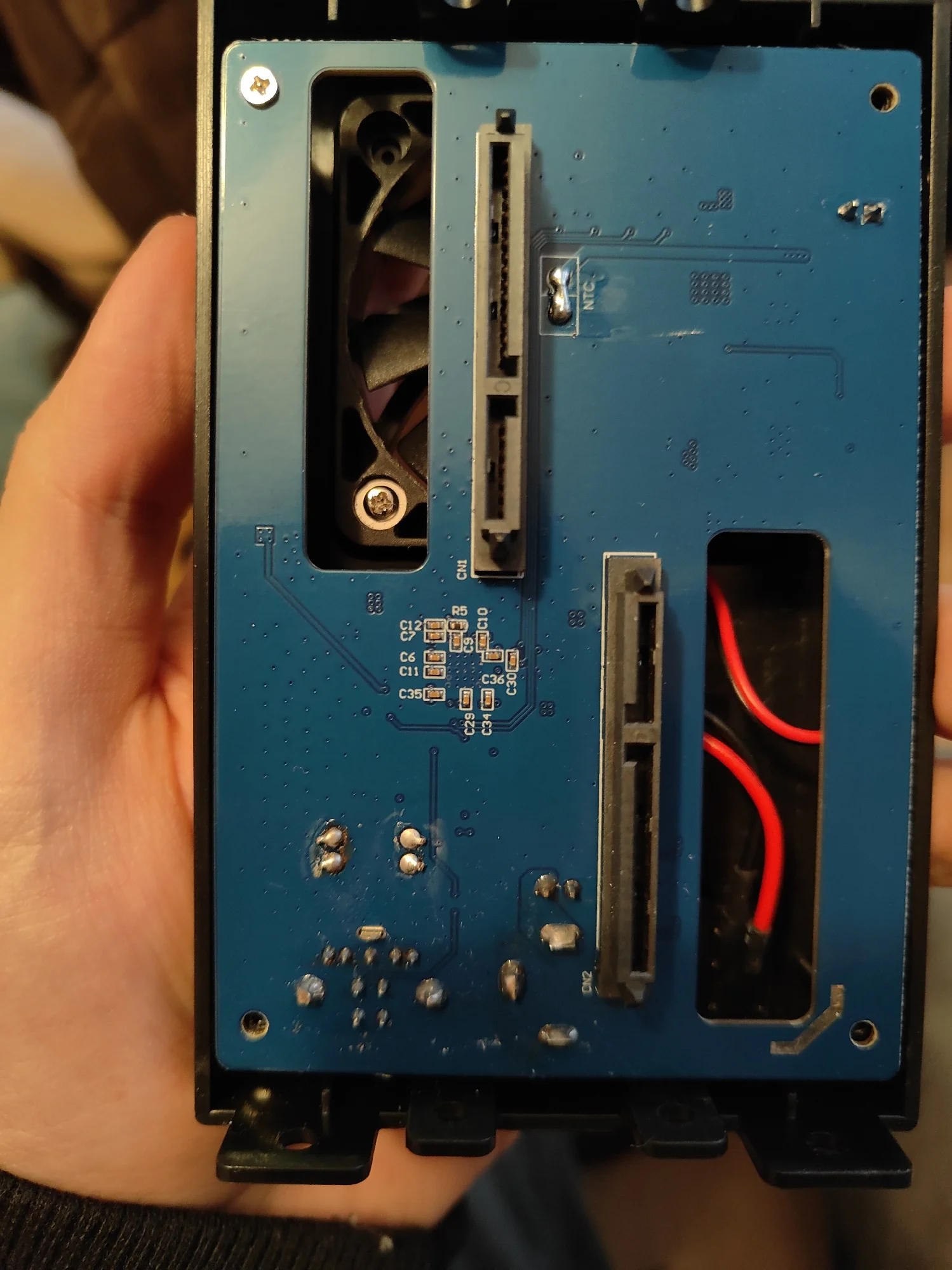 Перед первым включением устройства был активирован режим PM, означающий независимую работу жёстких дисков, 1 жёсткий диск, к сожалению, корректно не определился, а все данные, которые на нем находились, были безвозвратно потеряны. Так же после 1 включения было слышно работу вентилятора на максимальных оборотах. Разобрав устройство повторно, для того чтобы определить причину быстрой скорости работы вентилятора, оказалось что датчик температуры отсутствует. Вентилятор я физически отключил и собрал устройство обратно. После включения перестал определяться 2 жёсткий диск, а данные которые находились на 2 жёстком диске были безвозвратно потеряны. Напоминаю что устройство включалось в режиме PM. Как вы понимаете надёжность хранения данных здесь нулевая, и почему устройство убивает файловую систему жёстких дисков я не понял. Имейте это в виду. Прикрепил фотографии того как определяется жёсткий диск, система распознает его как ISCS что для меня совершенно непонятно (ибо iscsi протокол базирующийся на сетевом подключении) взаимодействовать с жёстким диском он мне не даёт. p.s. никаких важных данных утрачено не было