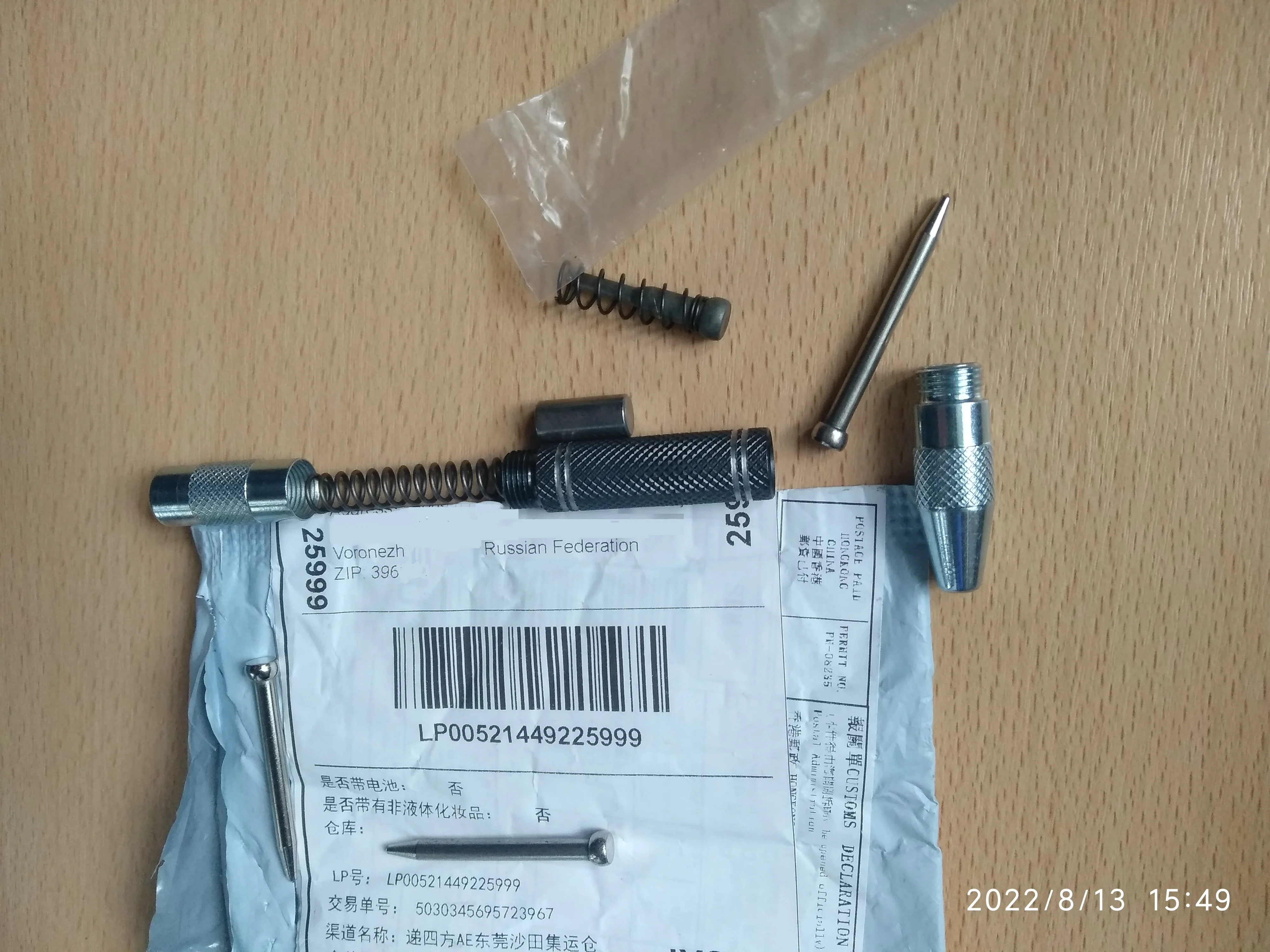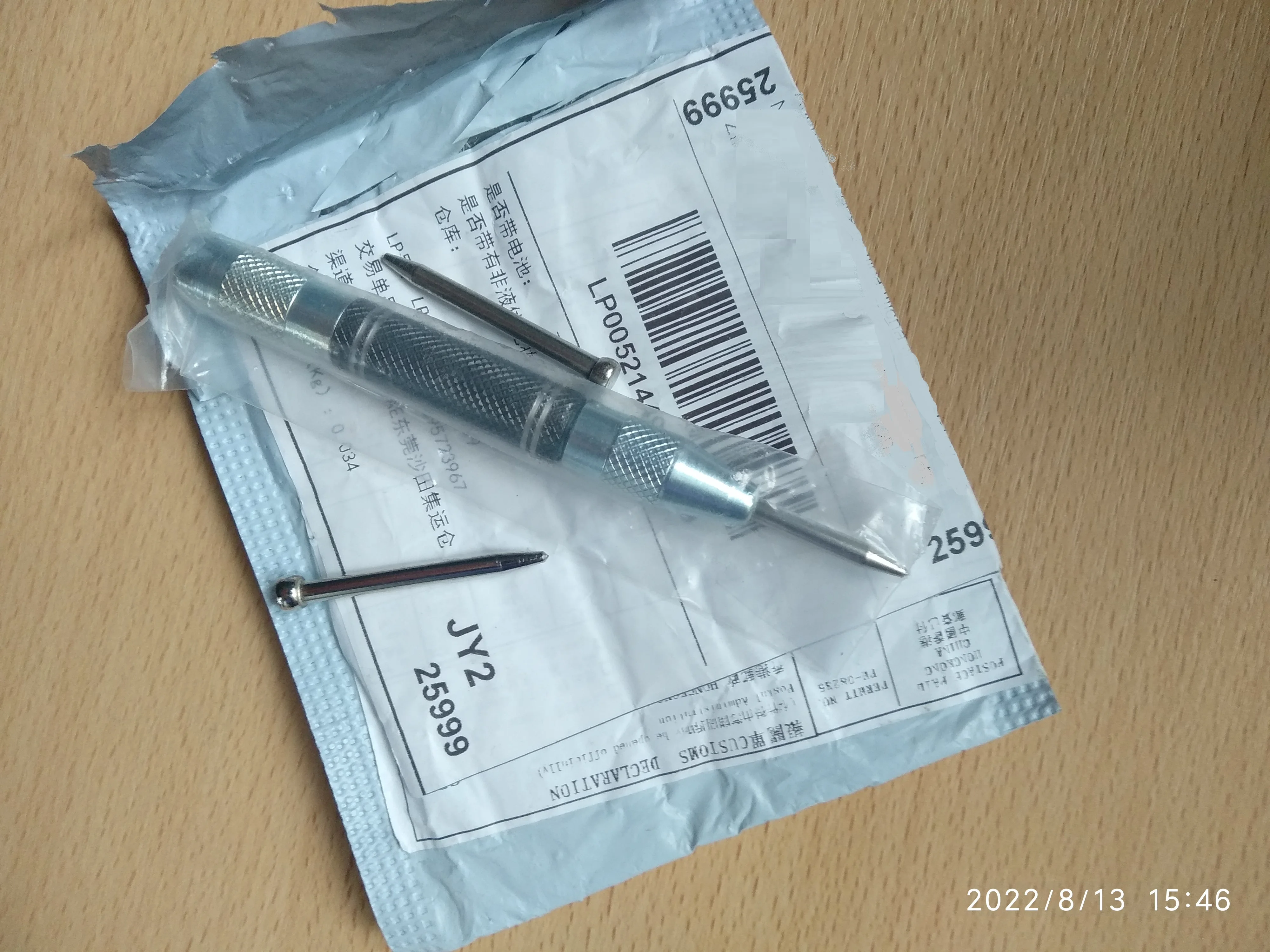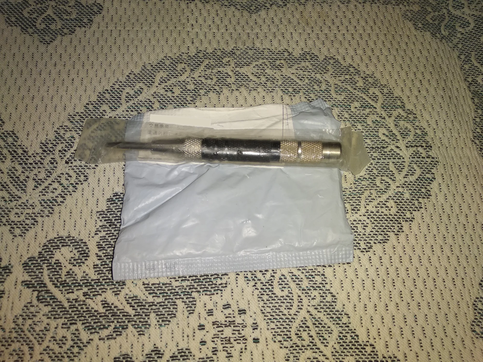 Отличный кернер за свои деньги. Кернит по мягкому металлу хорошо. Для кернения более прочного металла возможно придётся подкалить иглы кернера. Доставка посылки по нынешним временам мегабыстрая: 15 января заказал, а 28 января получил на почте. 13 дней!