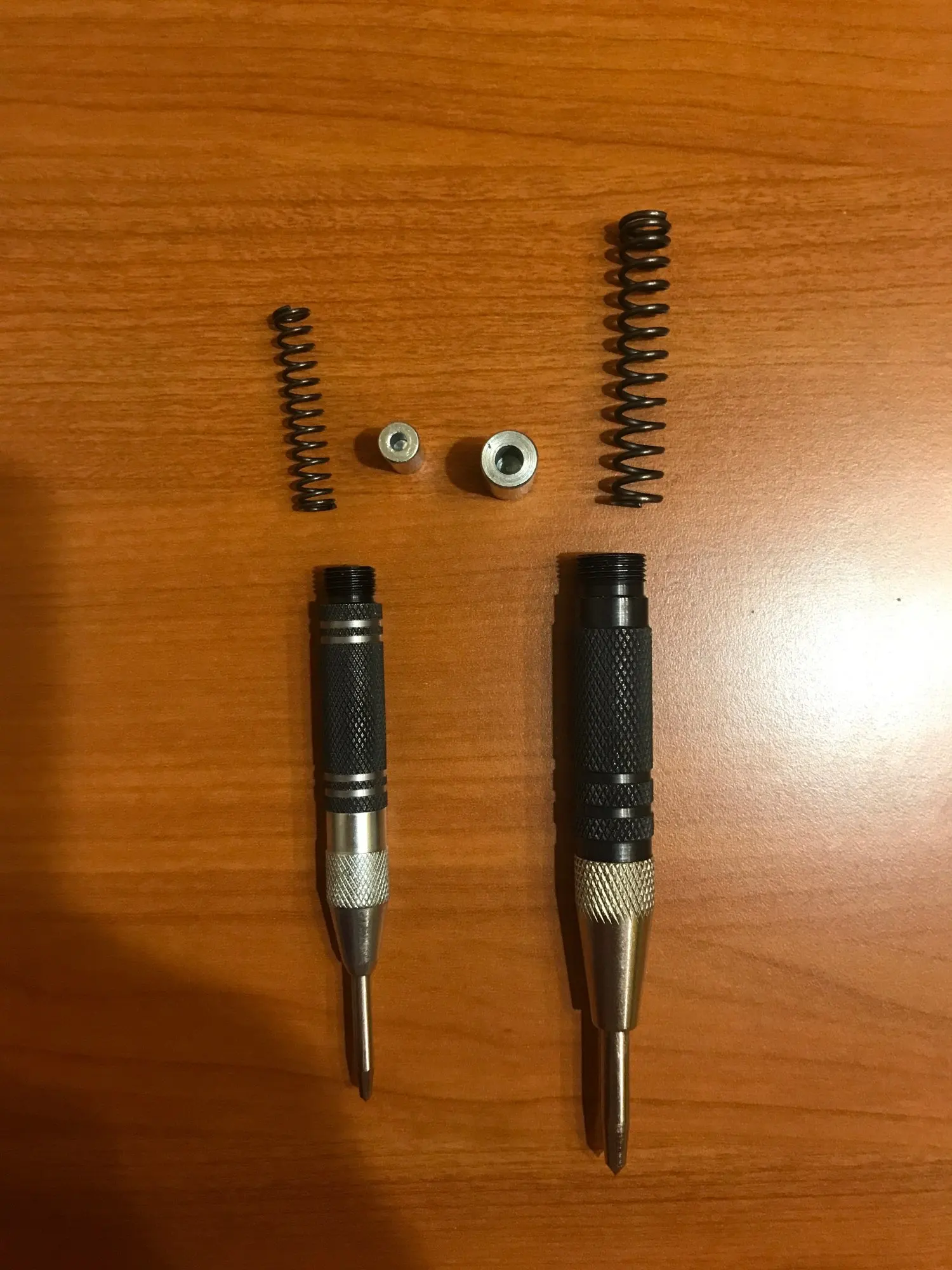 изначально острие тупое. заточил. на первом фото слева три отметины маленьким, справа три от большого. прожимается туго, но и результат с первого раза. тест делал на стали Г3) в принципе имеет место быть такое керно для мастерской дома) рекомендую.Sasha G. 16 декабря 2023