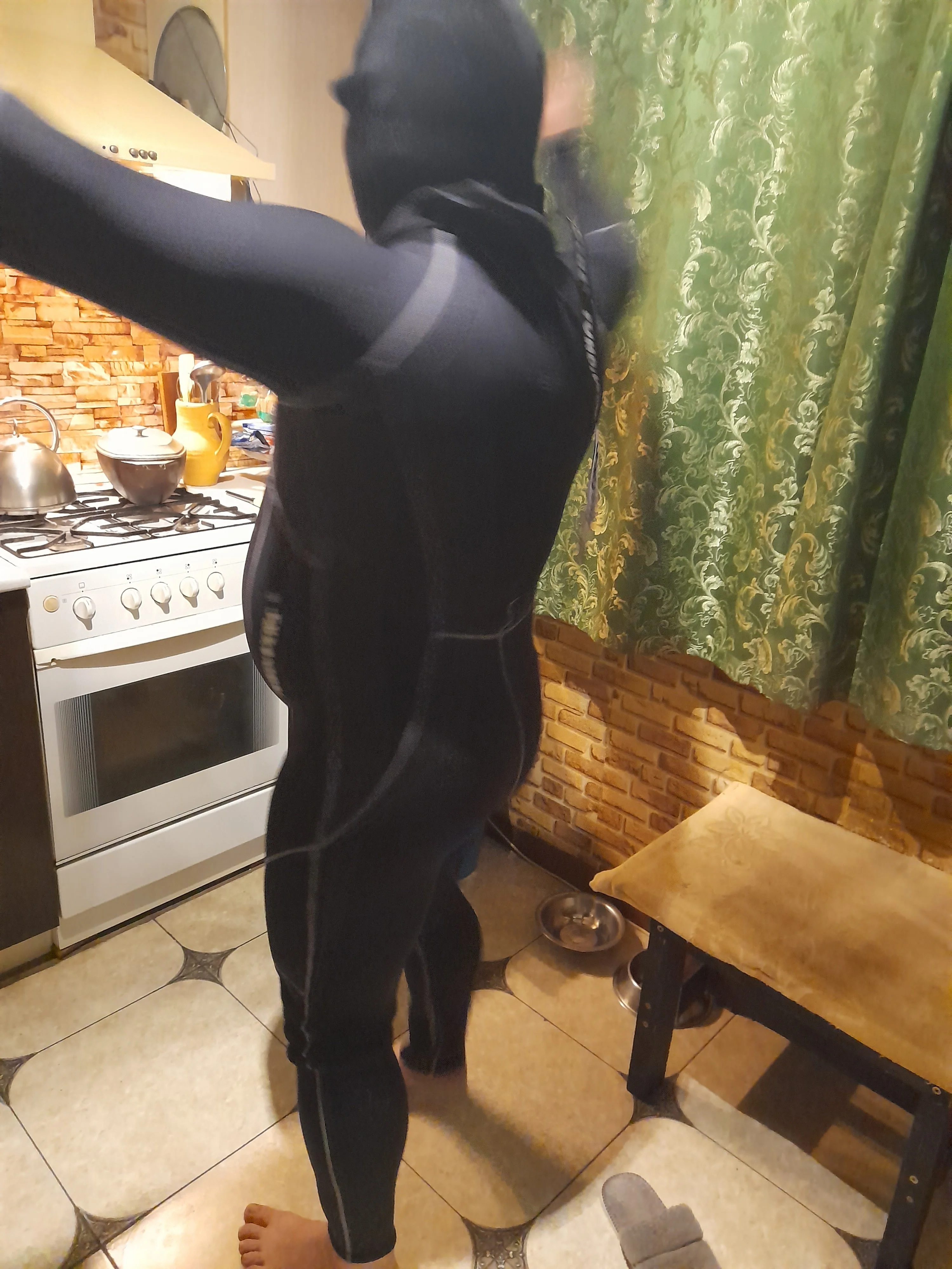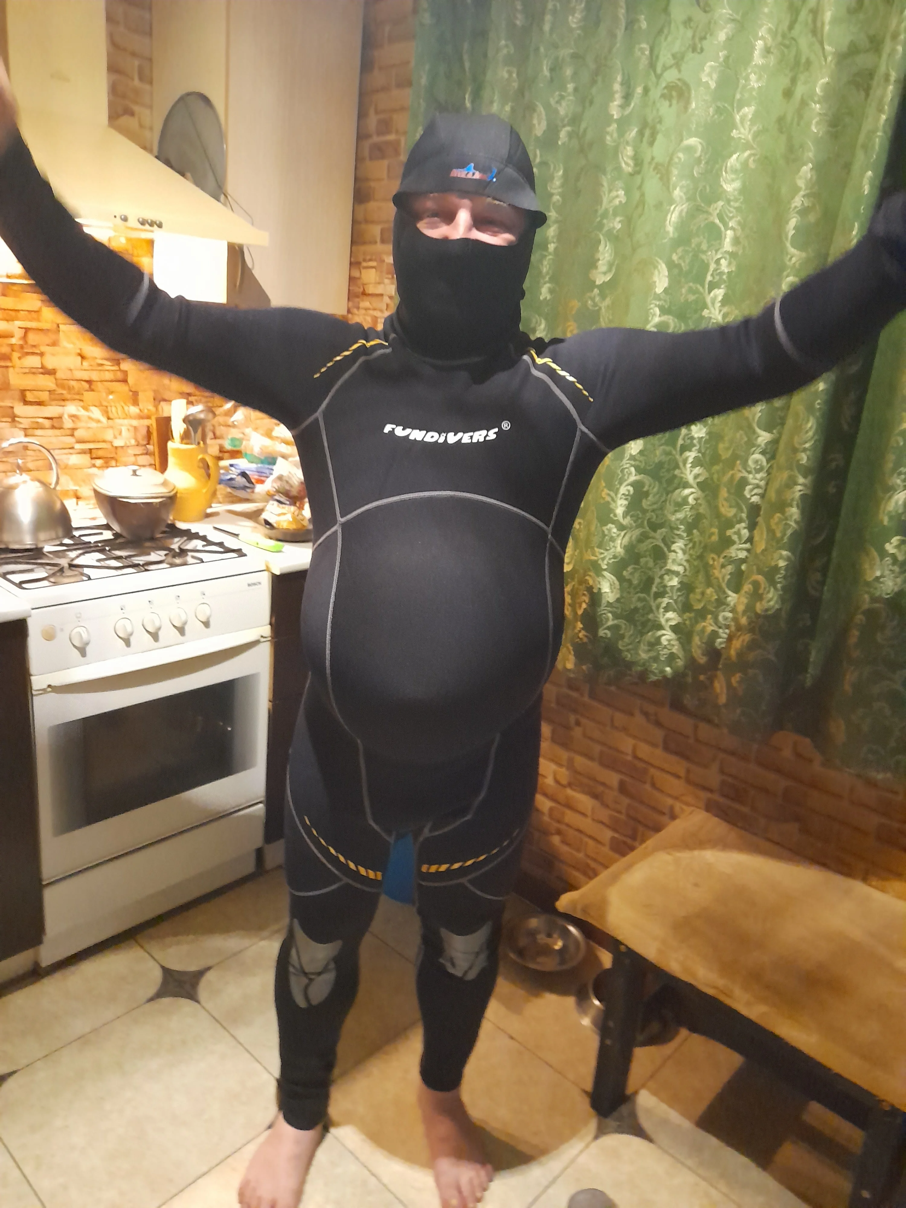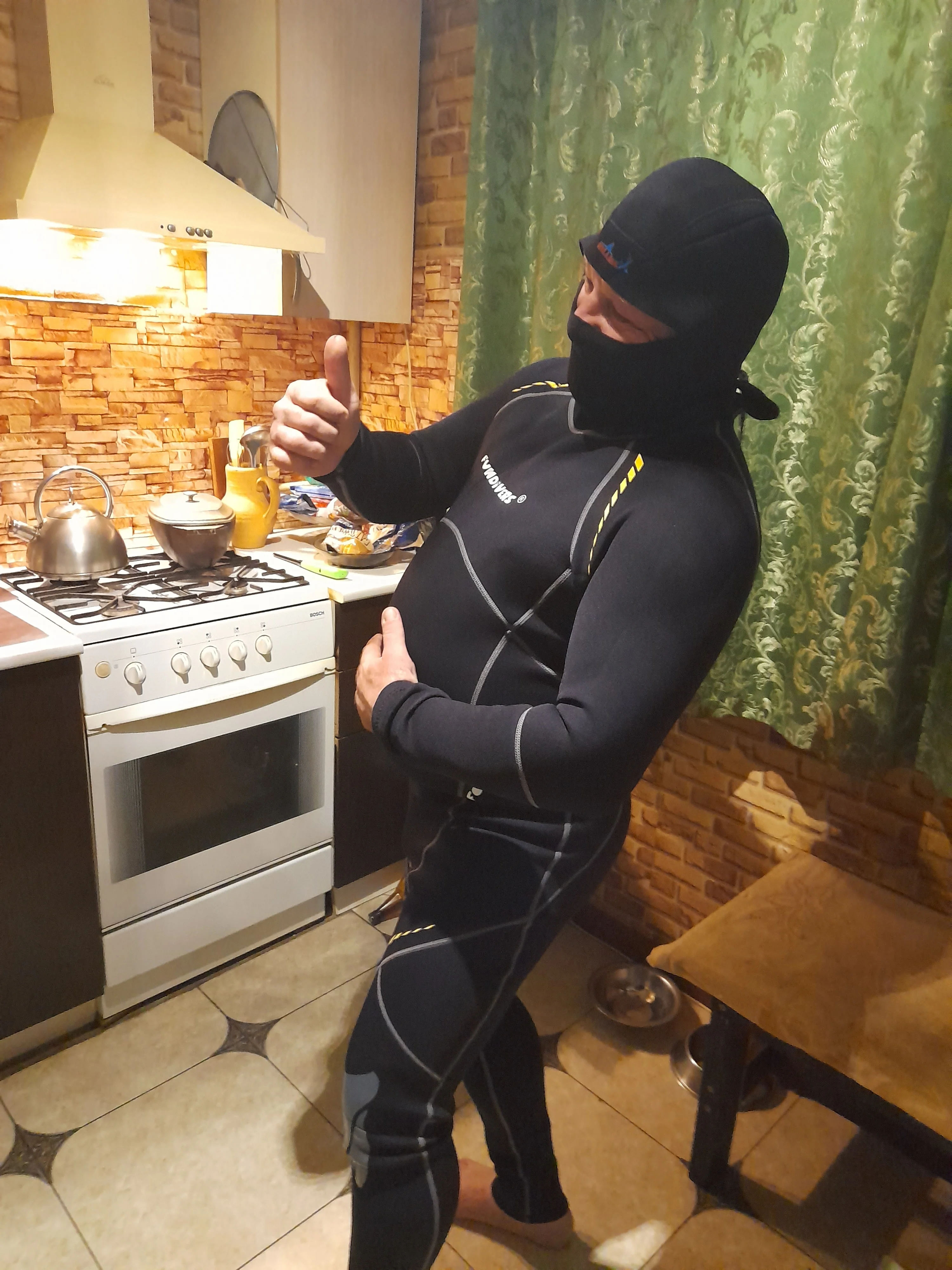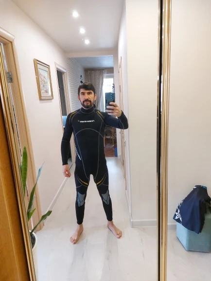 Костюм хороший. Материал толстый, около 2 мм. Молния мощная. Воротник норм. По размеру чуть-чуть не угадал. Брал XL на рост 170, все с 77кг. Немного свободнее, чем должно быть. в некоторых местах образуются складки. Если бы не было живота и скинуть вес до 73-75 кн, можно смело брать L-ку.