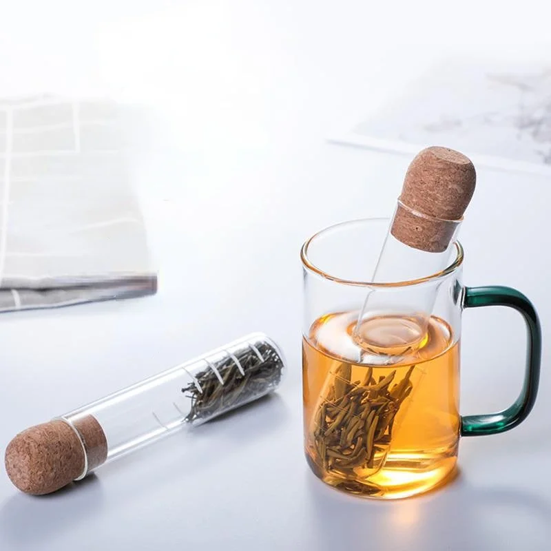 Тестовая трубка, улучшенная упаковка для упаковки чая из боросиликатного стекла, чайная чашка, креативная стеклянная чайная чашка, деревянная пробка, фильтр для чая