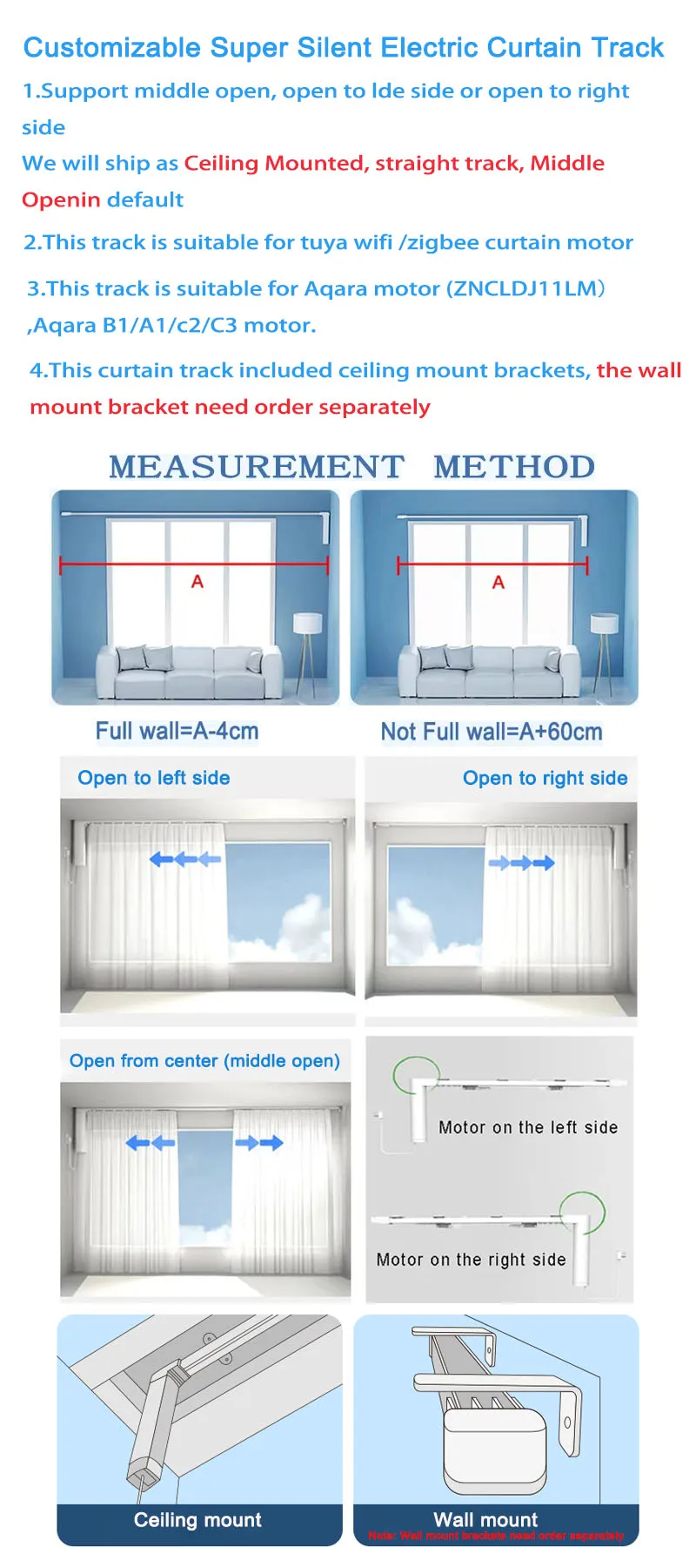 8.If you need Wall Mount, Pls via below link for order it (2pcs wall mount brackets per meter curtain track)