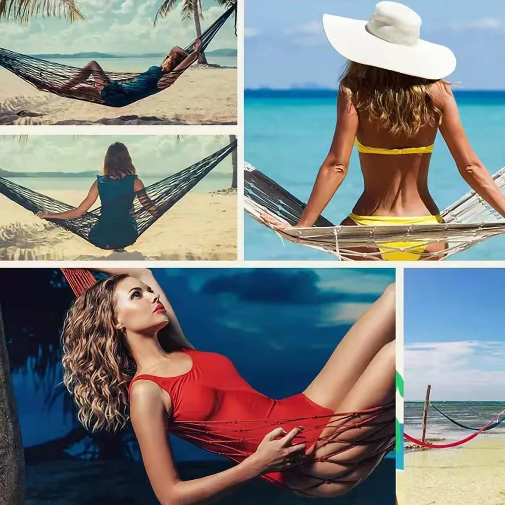 ★★★★★Широкое Применение: Этот гамак очень подходит для чтения, отдыха и отдыха в саду, на террасе, на заднем дворе, у бассейна или на балконе, и идеально подходит в качестве уличной кровати-гамака и внутренней кровати-гамака, вы можете чувствовать невесомый комфорт дома, а также для кемпинга, путешествий.