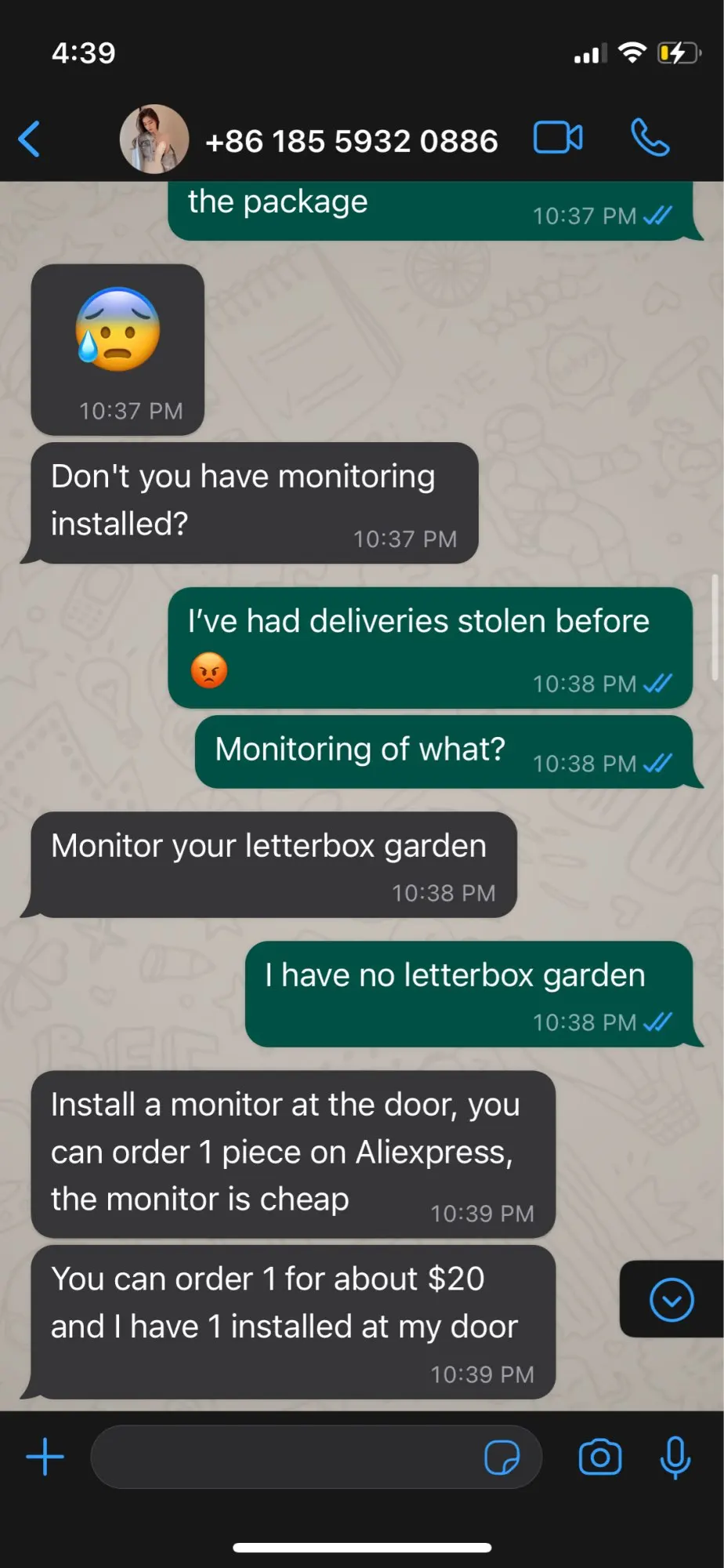 Товар так и не прибыл. Продавец обвинил меня в потере и сказал мне купить камеру видеонаблюдения. Продавец не знал, какой курьер даже «доставил» его, но настоял, чтобы я позвонил в почту Канады, которая его не доставила.