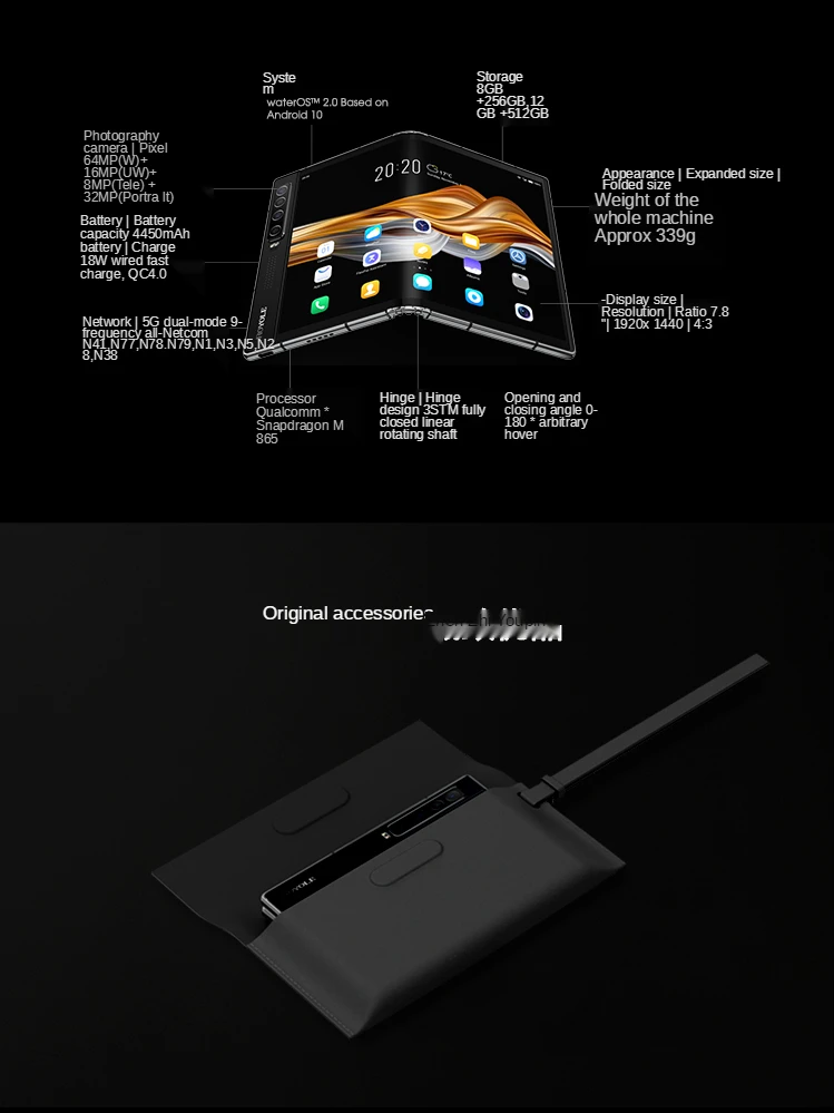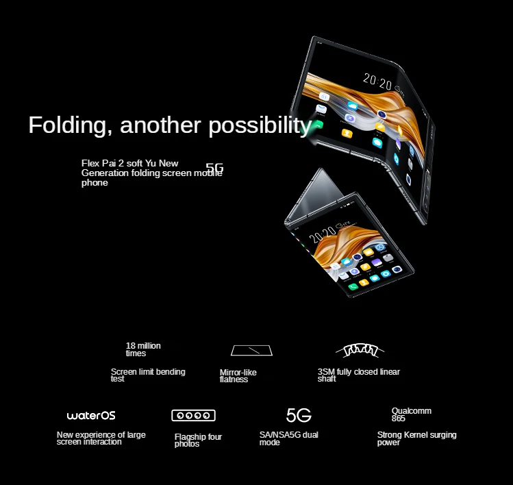 Складной смартфон Royole FlexPai 2, 7,8 дюйма, 8 ГБ ОЗУ, 256 Гб ПЗУ, Snapdragon 865, Google Play, WaterOS 2,0