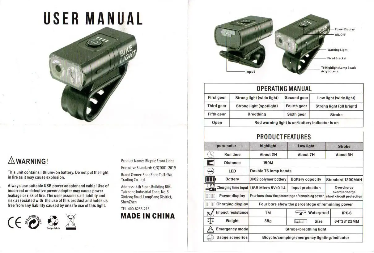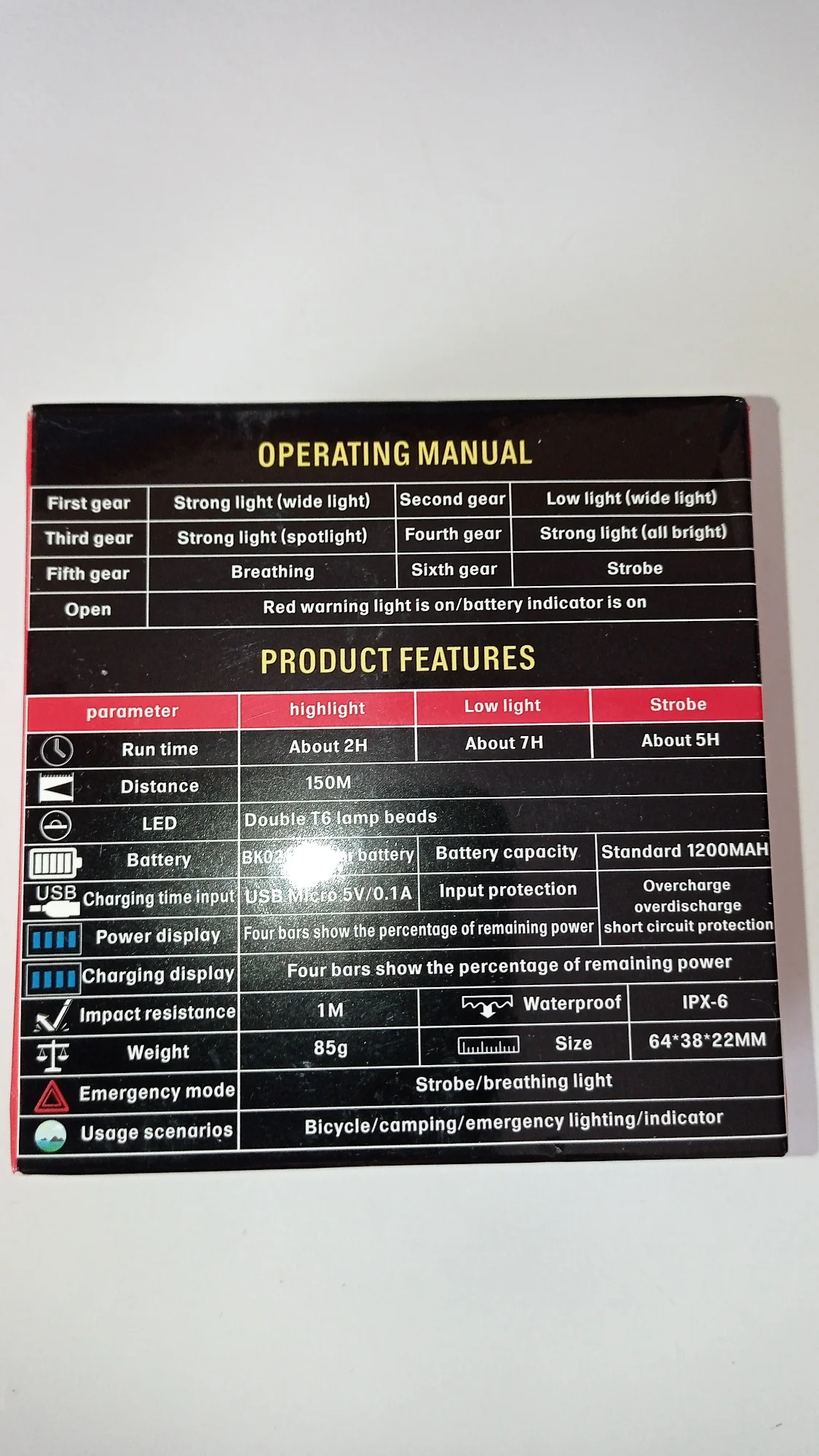 Добрый день. Заказал 19.05.22 комплект QD-0202 с красным задним фонарем и пришёл он 21.05.22. Коробки были разорванными, сами же фонари целые без повреждений. Красный фонарь сразу включился. Передняя фара пришла полностью разряженная, удалось ее включить после зарядки. В режиме мерцания заявлено, что будет работать около 10 часов, на самом деле максимум 2,5 часа. + яркие. - аккумуляторы слабые.