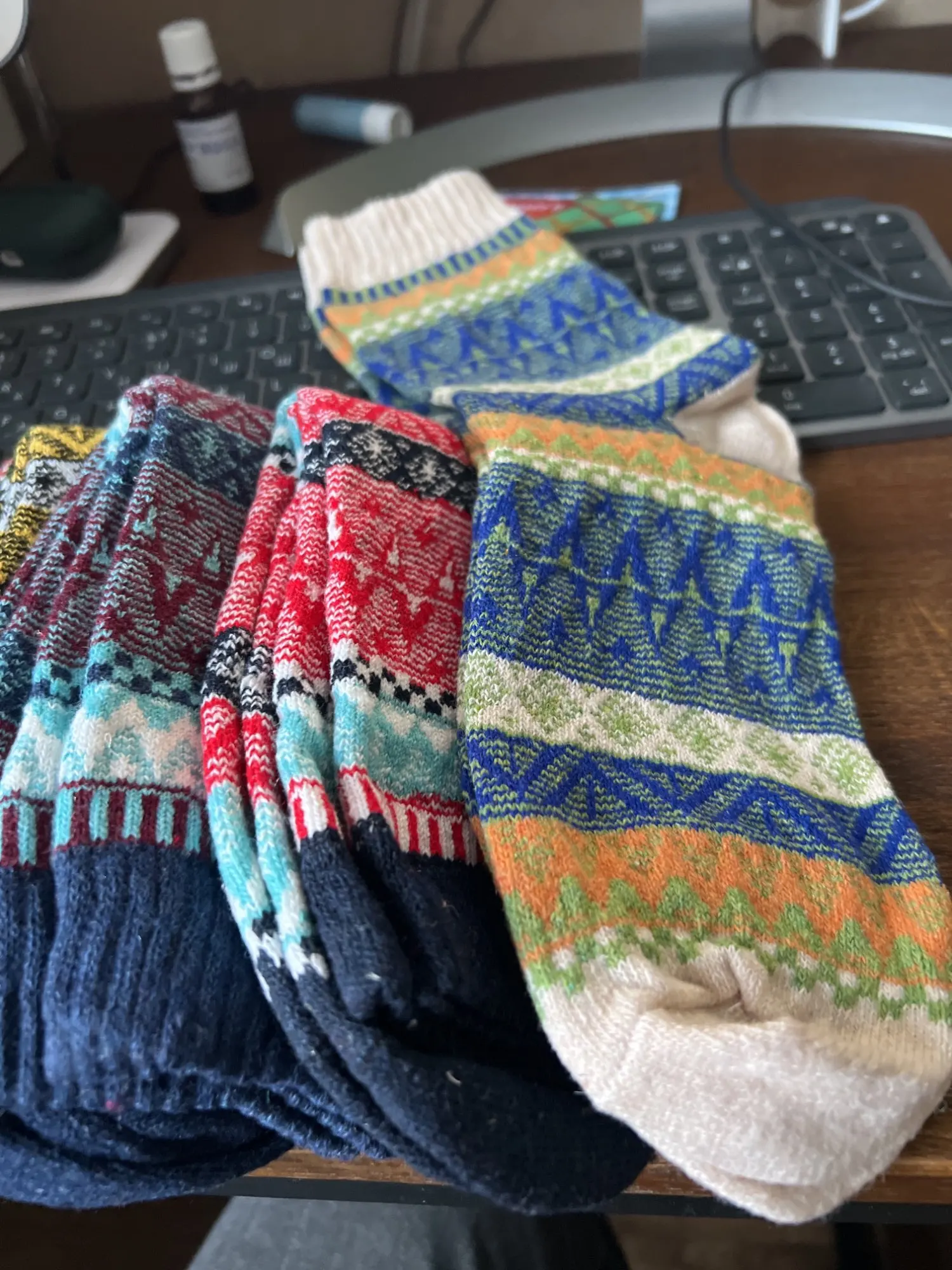 Носки очень тёплые по настоящему тёплые из Толстых ниток но при этом смотрятся модно и современно. С учётом скидок и промокодов цена хорошая.