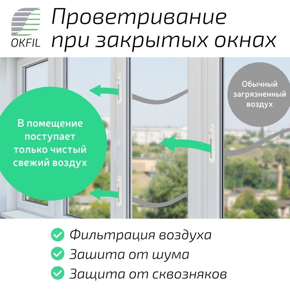 Оконный Фильтр OKFIL приточный клапан для воздуха на окна. От духоты. От конденсата. От пыли. От шума. От сквозняков.