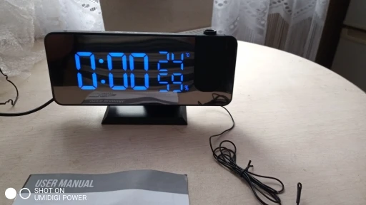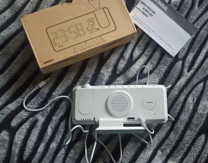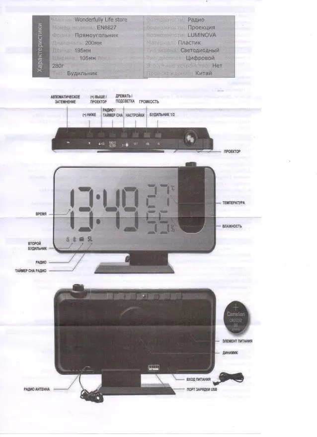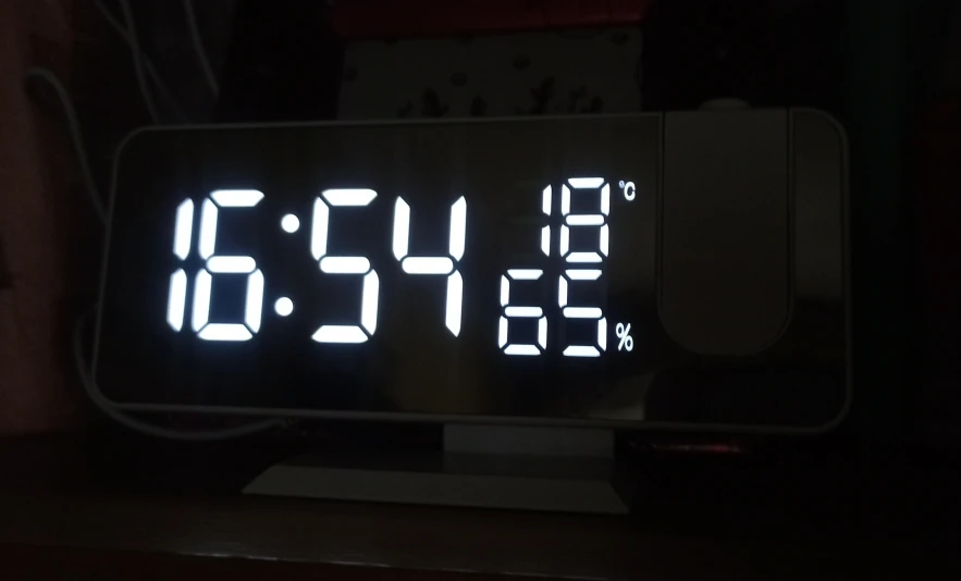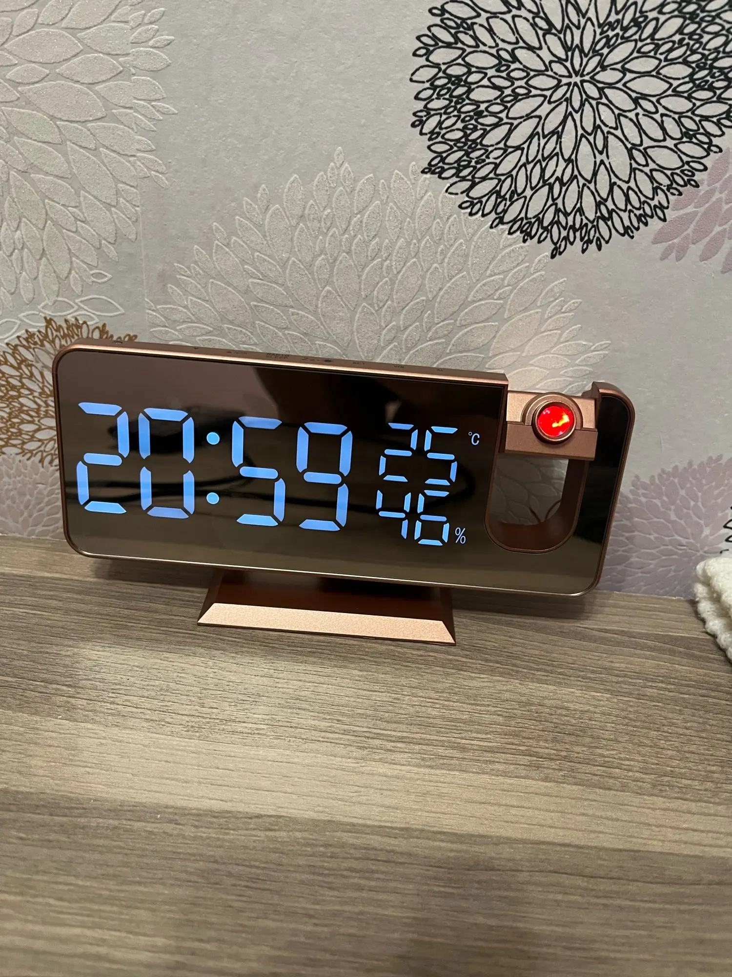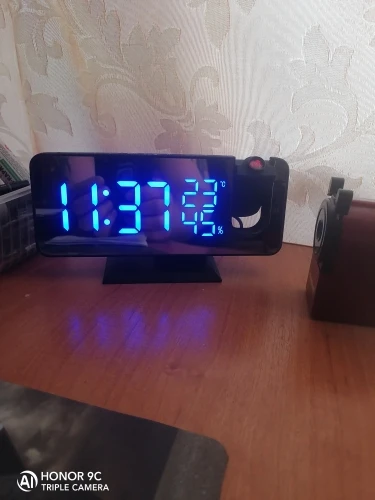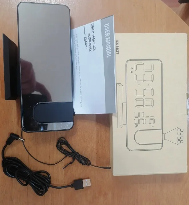 Мне очень понравились часы . Яркость дисплея регулируется . Красивые . В комплекте только usb , кому нужно в розетку покупайте сразу блок питания . Проекция сначала загорается вверх ногами , чтобы развернуть зажмите стрелку вверх . Показывает все точно , влажность температуру (сравнивала с другими часами )