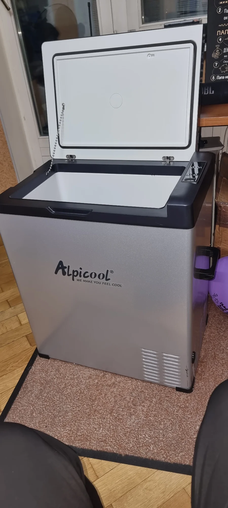 Заказал 24 августа, обещали привезти 8 сегтября, 6 сентября позвонили из транспортной, можно забирать. Я думал, доставка до двери, но нет. Благо, от меня склад в 20ти км и вместительный автомобиль есть. Я брал самый большой холодильник 70 л. В коробке он очень большой. Считаю, две недели из Вдадивостока в Домодедово норм. Коробка слегка помята, грязная , прорезана в районе боковой ручки холодильника, но сам холодильник цел, ни одной царапины или вмятины. Работает не особо шумно пока охлаждает до заданной температуры (я сразу врубил -20С). И это от розетки в режиме MAX. Инструкция на английском, меня устроила. Охлаждаете быстро, правда пустой. Как будет с продуктами, посмотрим. Показания на дисплее и термометра не совпадают. Сделано всё довольно добротно на первый взгляд. Эксплуатация покажет. Защитная плёнка отошла не полностью, выглядит не слишком опрятно, но это мелочи. С продавцом не общался.5566 u. 7 сентября 2022