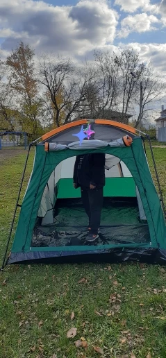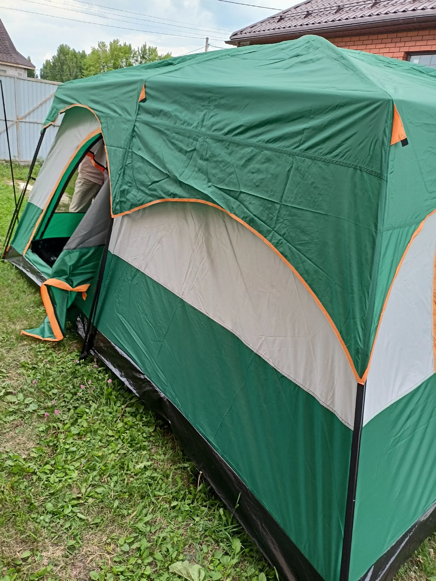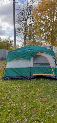 палатка очень удобная, в сборке не трудоёмкая, пришла в драной коробке но не повреждена, звезду снизила за не корректную доставку, пришла позже обещанного, написала продавцу, что испортили нам отпуск, даже не извинился!1440 u. 15 октября 2022