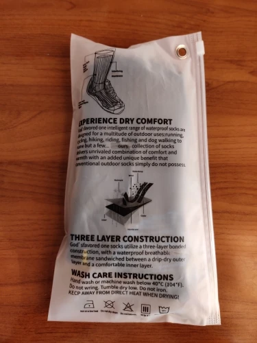 Оправдало все ожидания... И вправду водонепроницаемые. Всё как в описании, все соответствует. Отправили быстро, пришло тоже относительно быстро. 3х слойные, внутри приятные на ощупь. Внутренний слой шуршит как кулёк)) похоже на тонкий неопрен. Как подустанут, разберу....