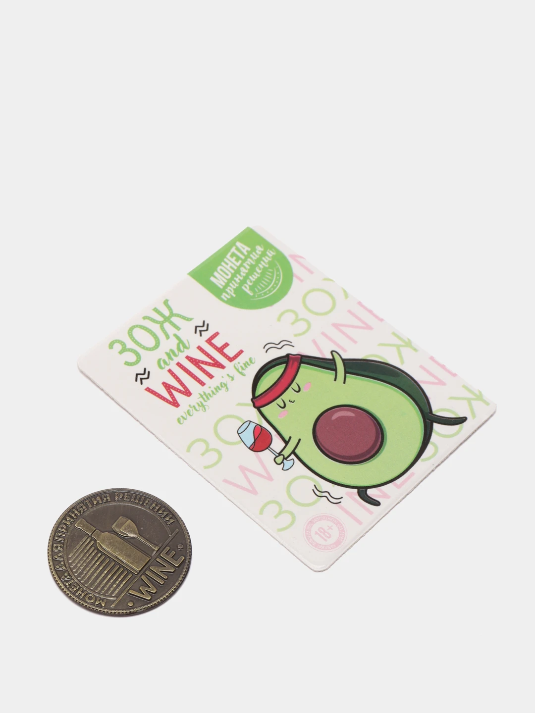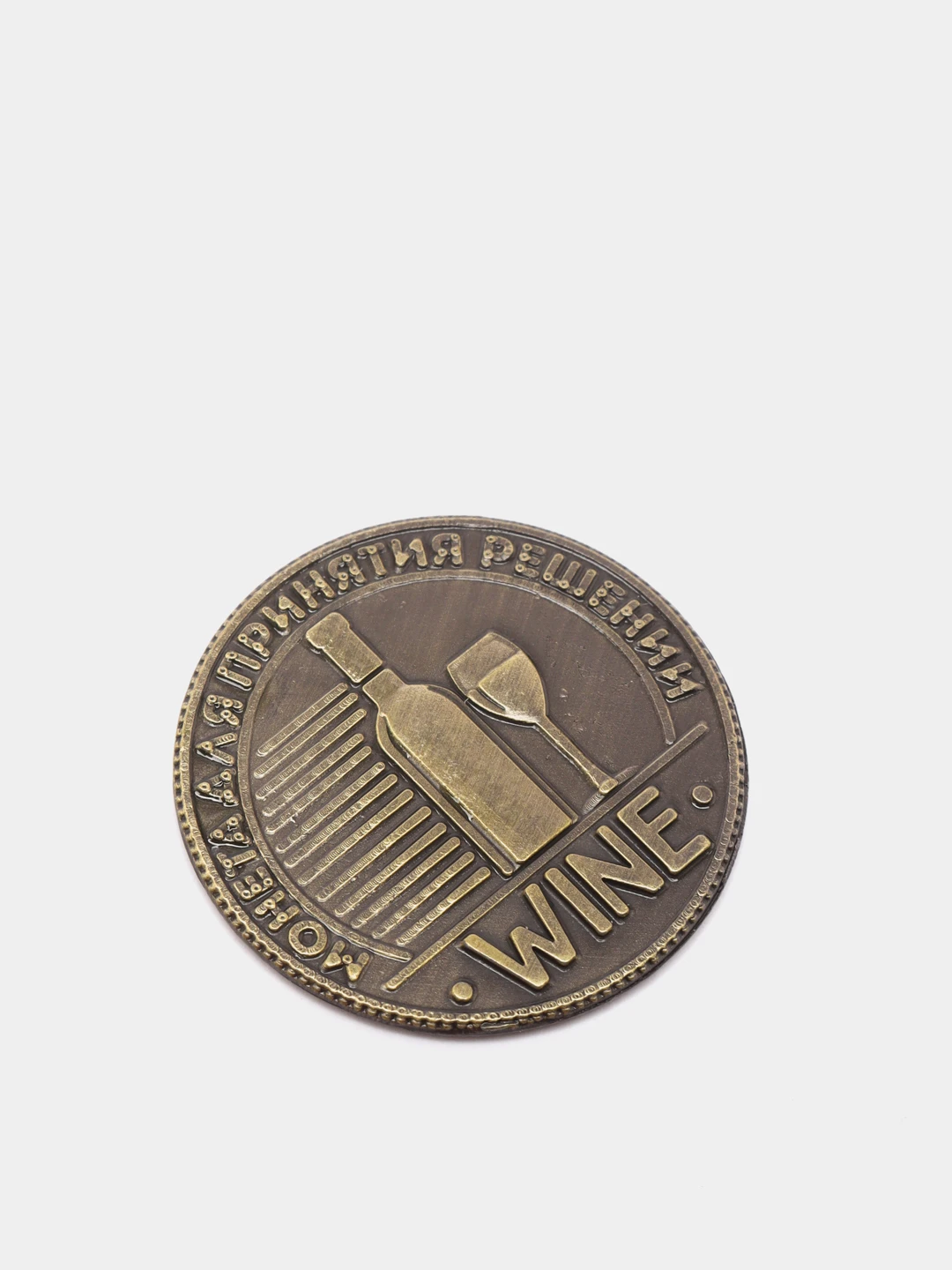 Металлическая сувенирная монета «Вино / ЗОЖ», диаметр 2,5 см, латунь.