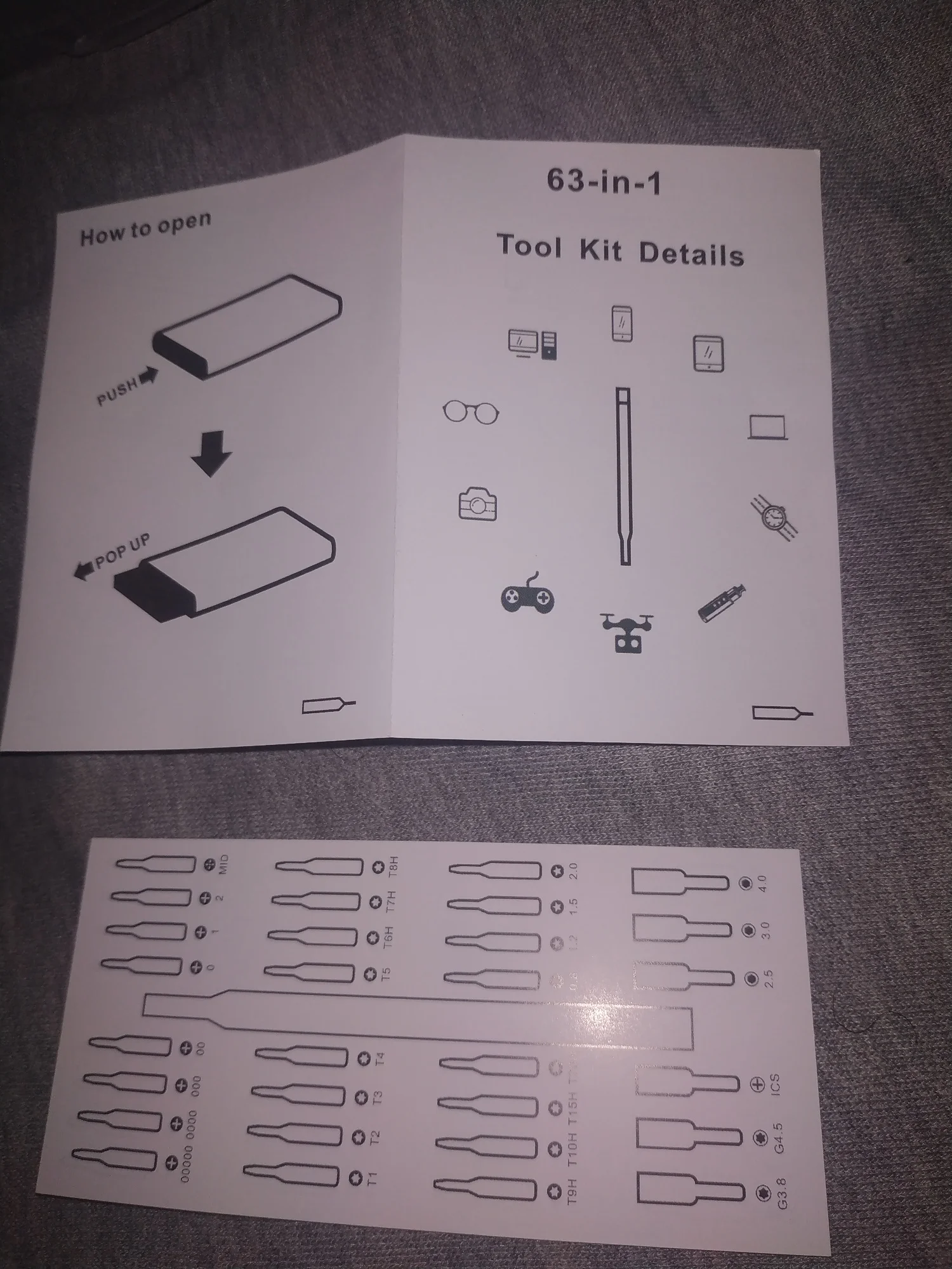 Одна из лучших упаковок, которые мне приходили с АлиЭкспресса. Серьёзно. Дошло быстро. Коробка пластиковая, небольшой минус, но сойдёт. В комплекте сам набор отвёрток и две бумажки - иллюстратор расположения бит в коробке и руководство пользователя. Сам набор держится в кейсе на защёлке, открывается и закрывается нажатием. Отвёртка удобно лежит в руке, люфта бит почти нет. Магнит держит биту хорошо. Брал за тысячу с небольшим, в целом рекомендую.