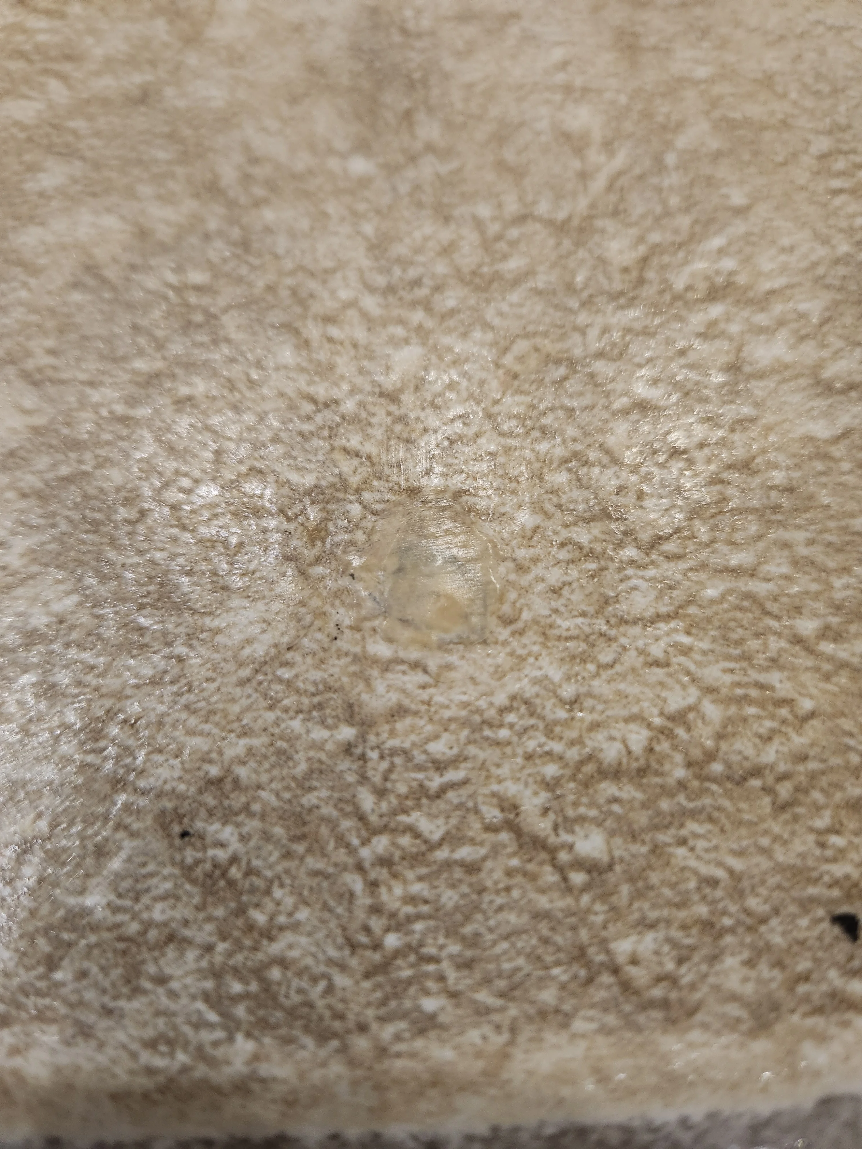 Отличный товар, воск на заплатке нужно нагревать до совсем жидкого состояния и так же смешивать цвета. Можно и сколотую плитку так реставрировать. На фото заплатка ровно посередине кадра.
