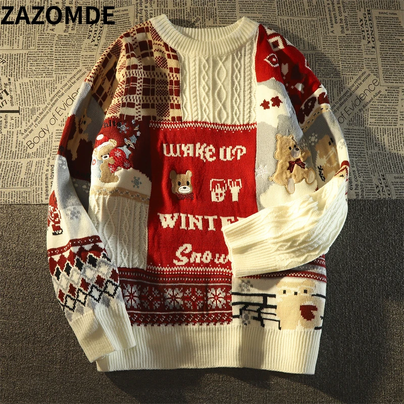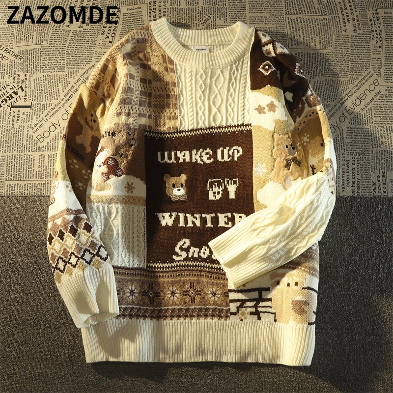 - Мужской свитер в стиле Харадзюку, с мультяшным принтом