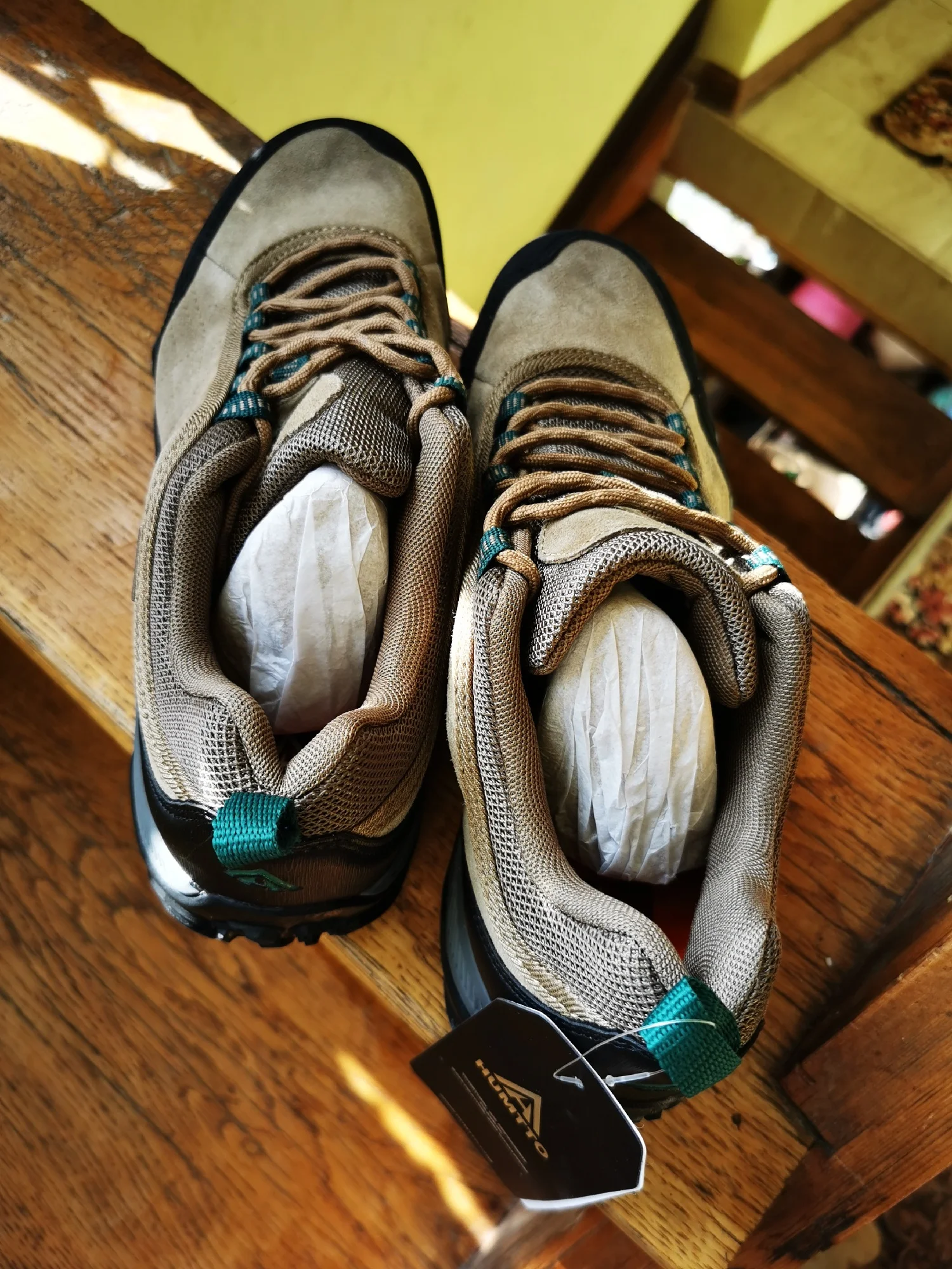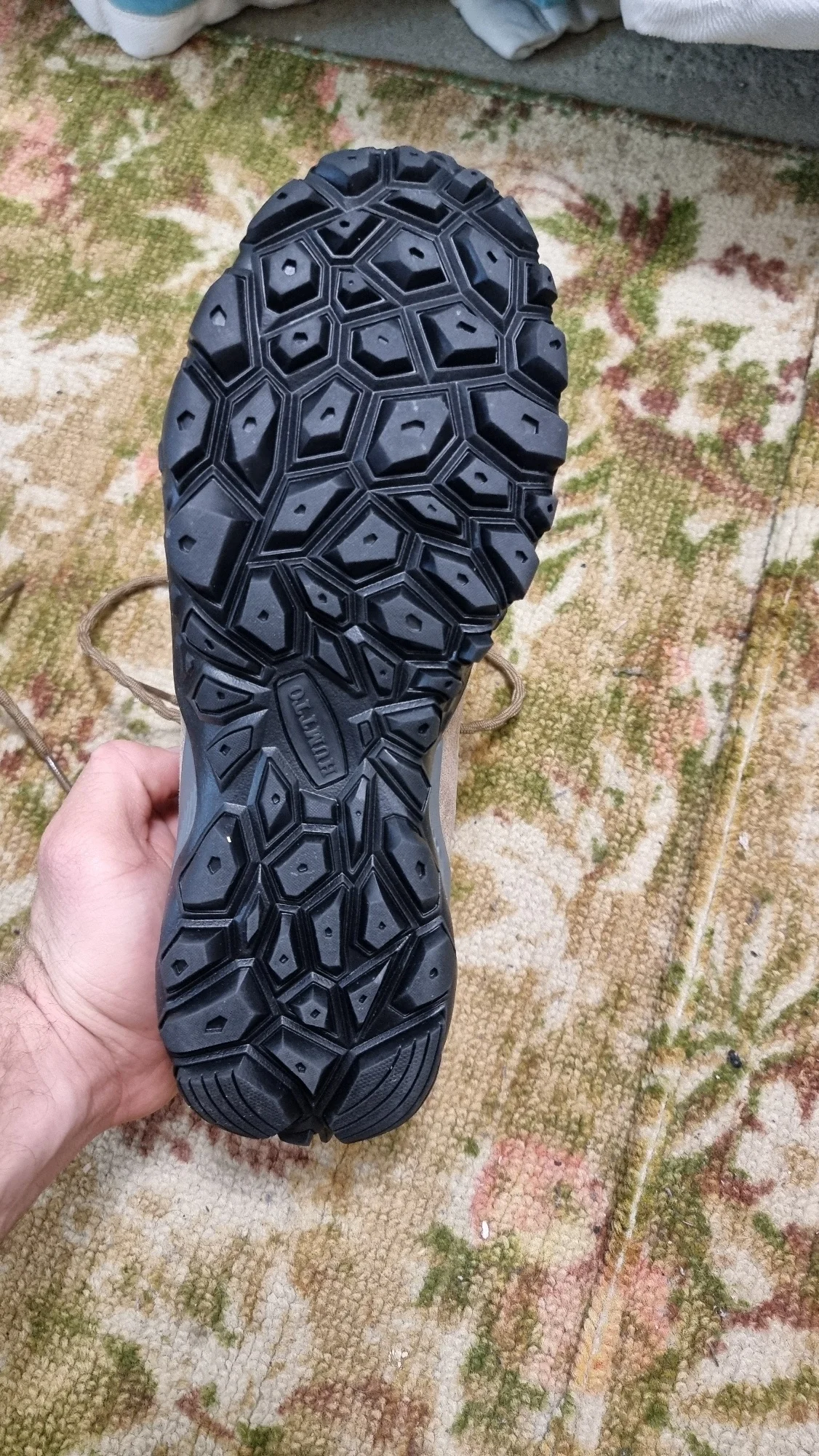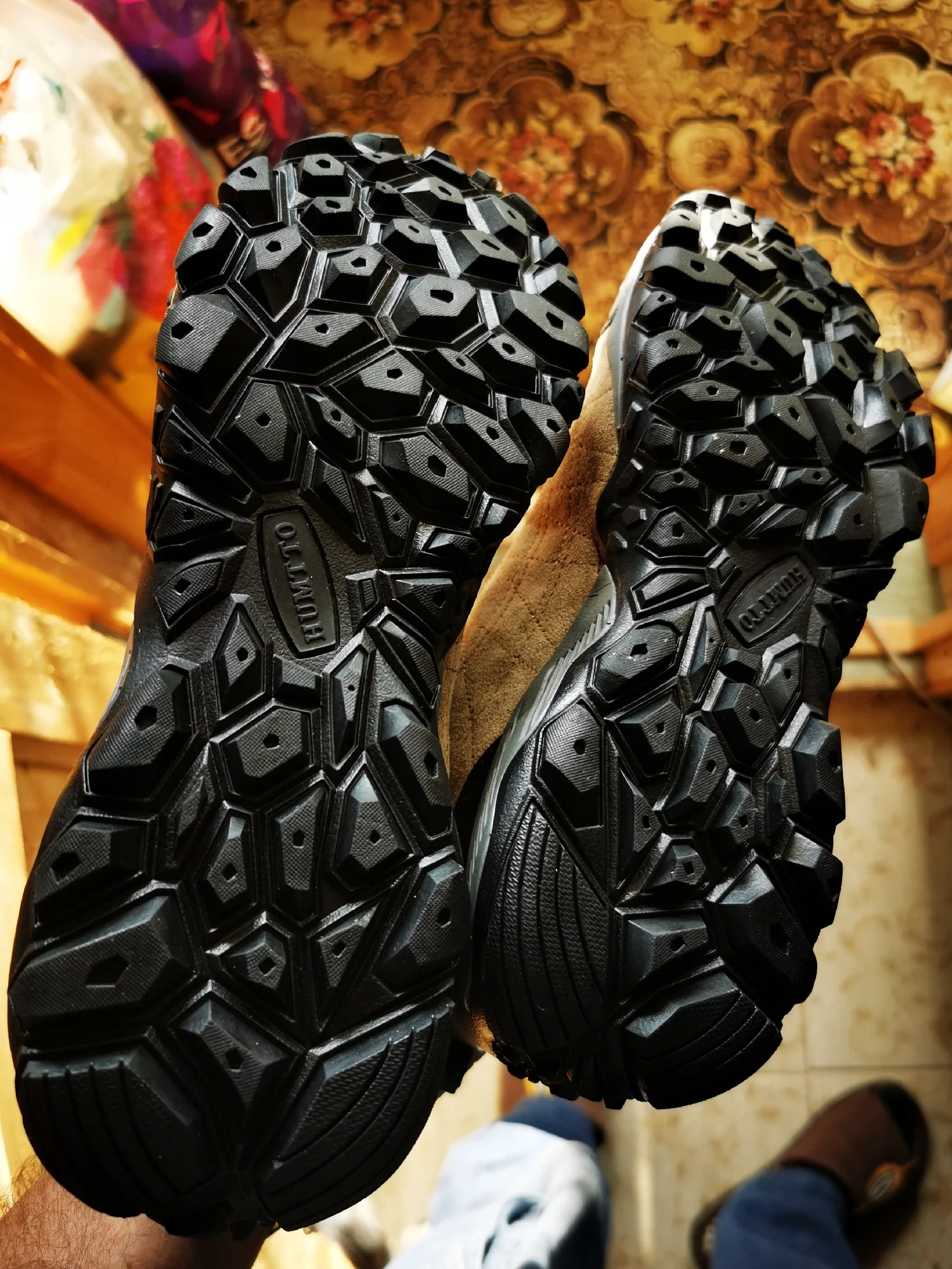 На вид очень красивые, качественные, цвет хороший. Стыки ровные без клея. Везде проклеяно, швы ровные, аккуратные, педантичные. Вес кроссовок достаточно ощутим, сразу чувствуется мощная подошва и плотные материалы для долговечных походов по горам и буеракам. То что надо. На ноге удобно, запаха химии нет. Маломерят на 2 размера. У меня 42,5, (27 см подошва ровно) взял 44 размер - как раз впритык на тонкий носок. Для демисезона хорошо бы и толстый носок. Но это уже 45 размер надо брать. Возможно разносятся. Сидят плотно удобно.5251 u. 28 сентября 2023