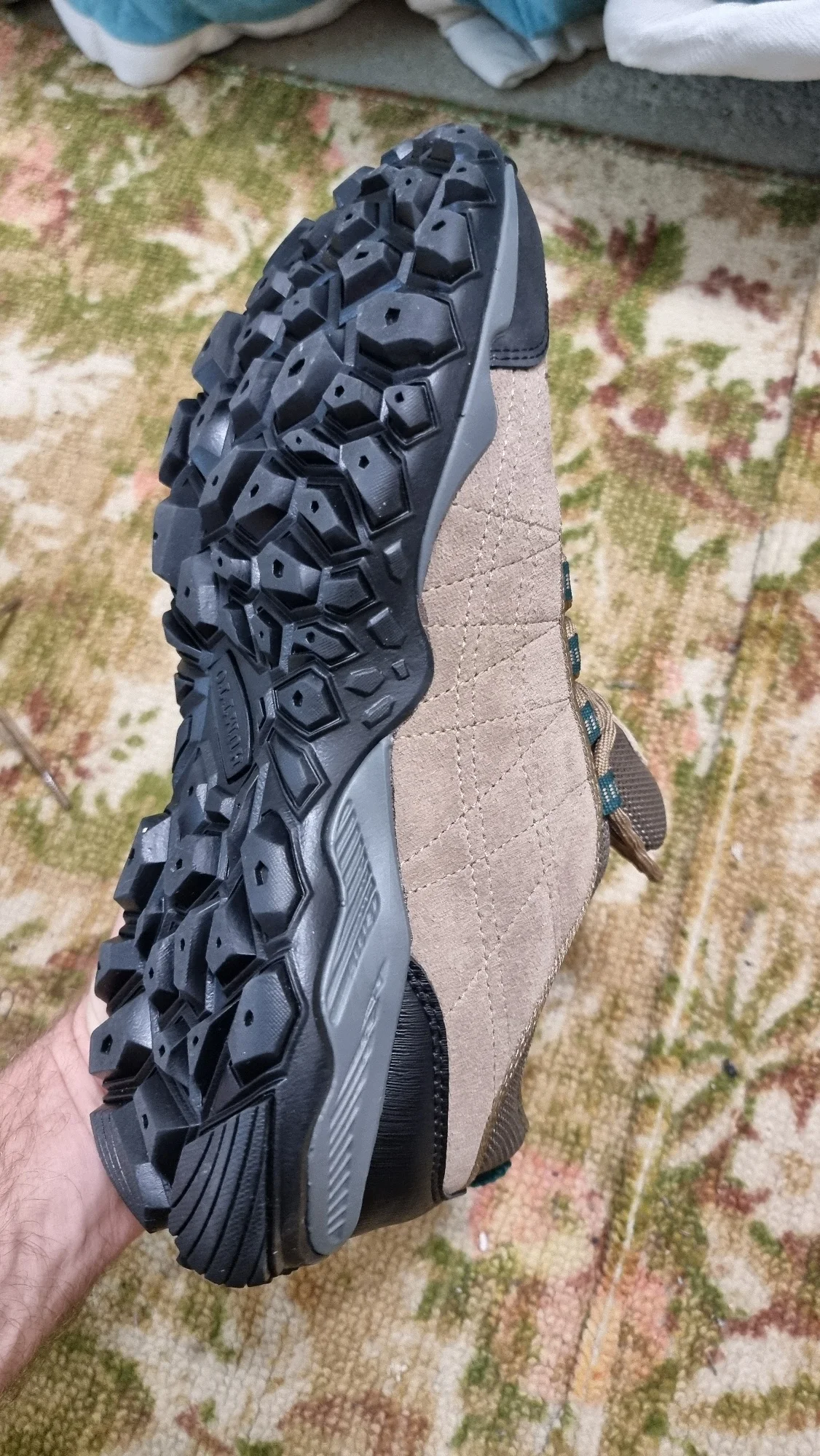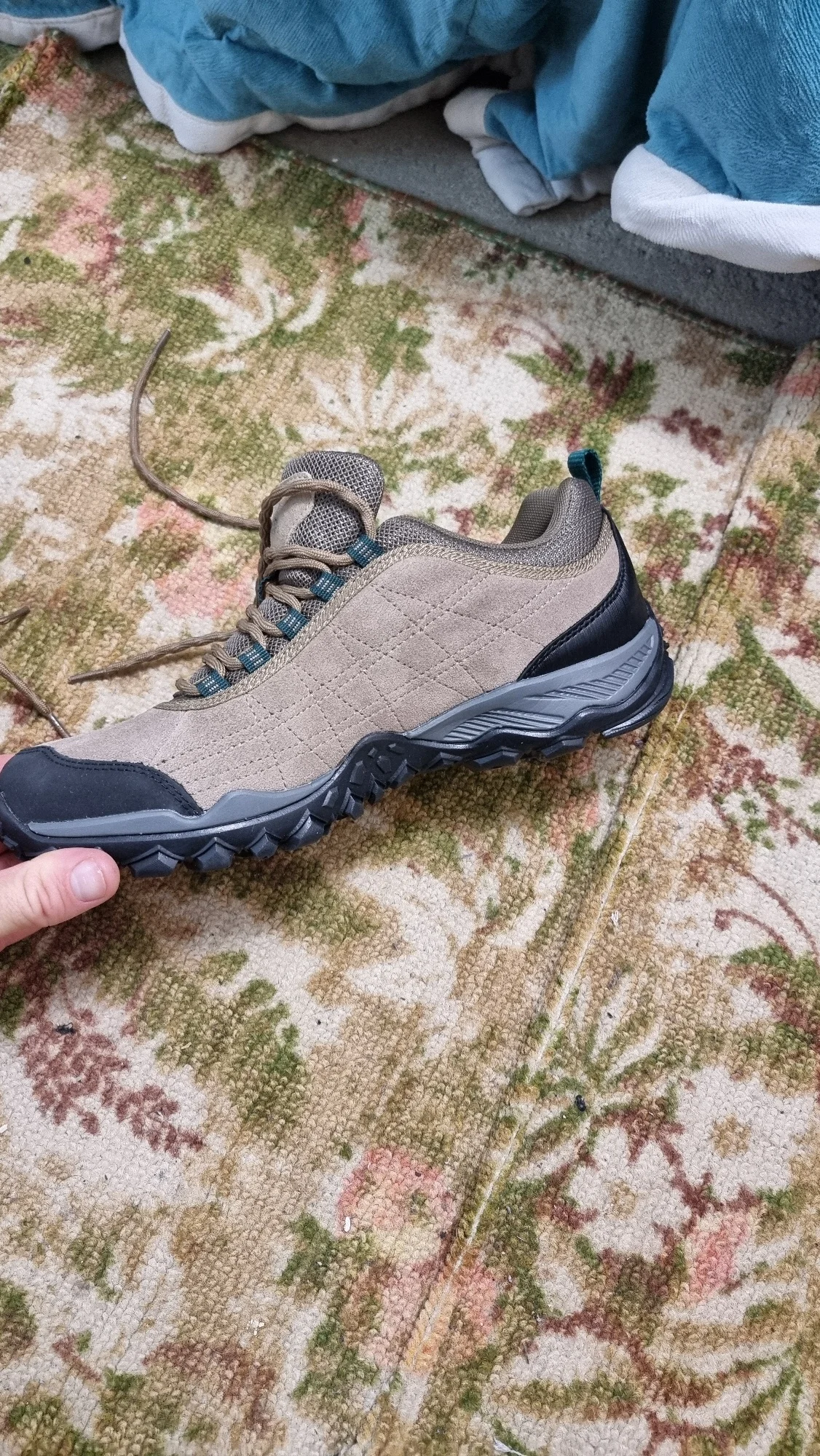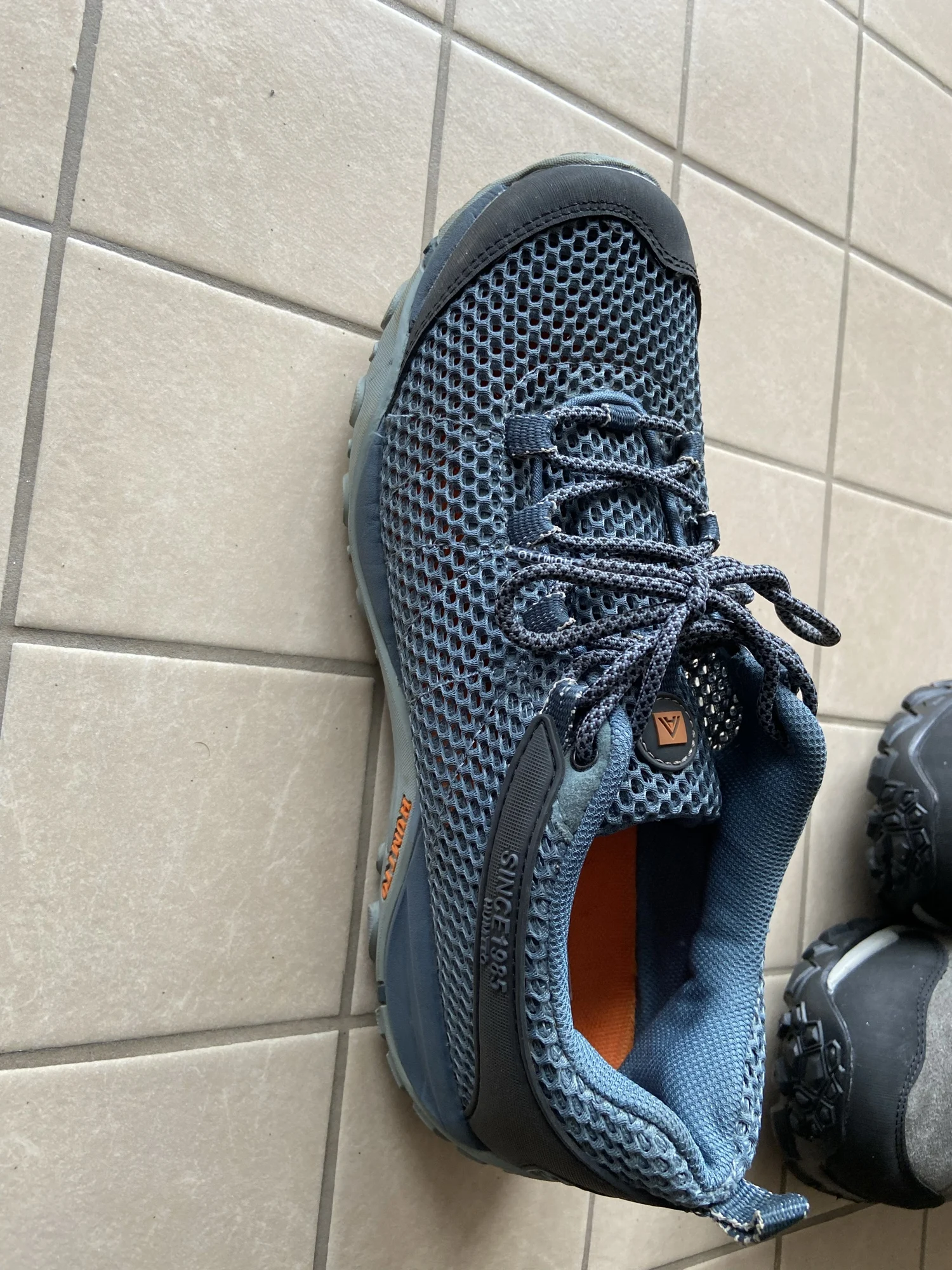 На вид очень красивые, качественные, цвет хороший. Стыки ровные без клея. Везде проклеяно, швы ровные, аккуратные, педантичные. Вес кроссовок достаточно ощутим, сразу чувствуется мощная подошва и плотные материалы для долговечных походов по горам и буеракам. То что надо. На ноге удобно, запаха химии нет. Маломерят на 2 размера. У меня 42,5, (27 см подошва ровно) взял 44 размер - как раз впритык на тонкий носок. Для демисезона хорошо бы и толстый носок. Но это уже 45 размер надо брать. Возможно разносятся. Сидят плотно удобно.5251 u. 28 сентября 2023
