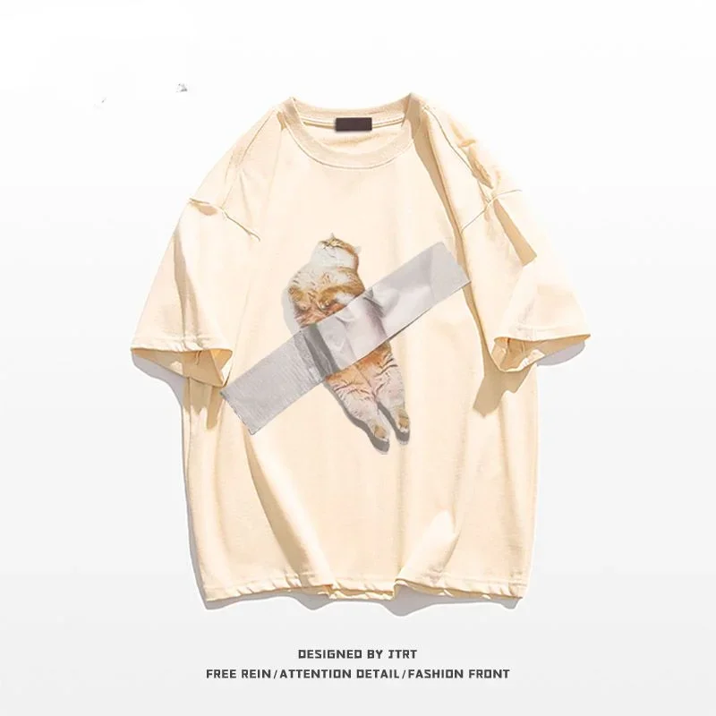 Свободная летняя футболка с коротким рукавом и принтом оранжевого цвета для пар