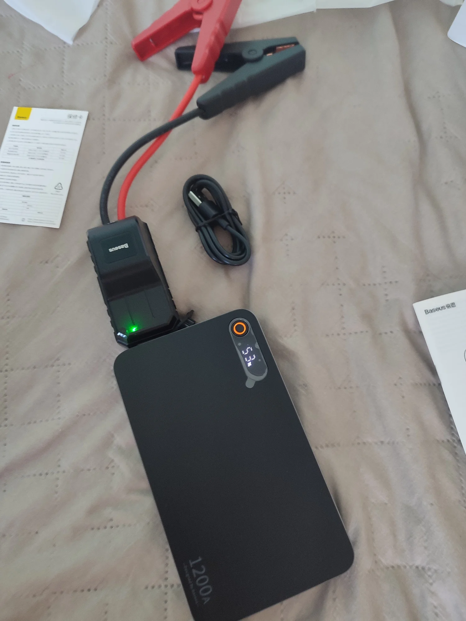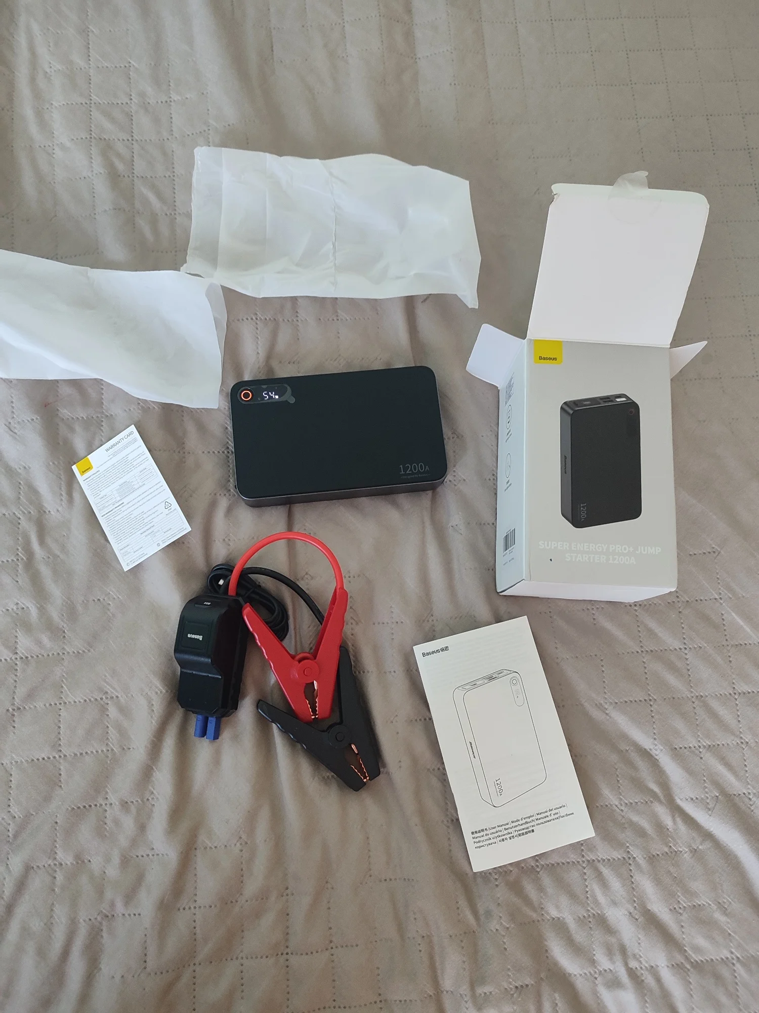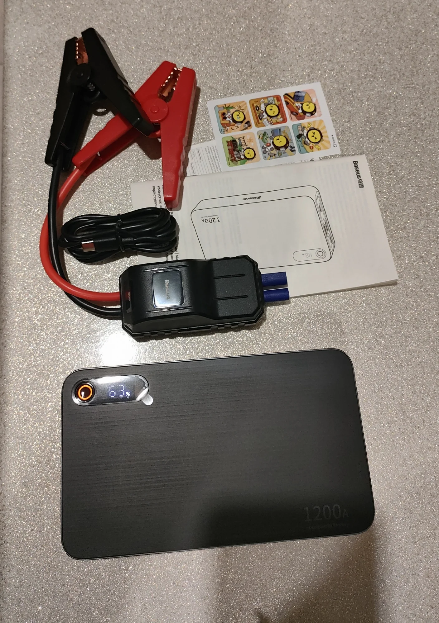 Доставка быстрая 8 дней, курьером до двери. BASEUS делает отличные вещи !!! Отличное пусковое устройство, изготовлено очень качественно, выглядит надёжно, заряжен был до 52 % , всё целое, увесистый блок, клещи жёстко цепляют, провода большого сечения. На бустере имеется фонарик, светит не очень ярко, но подсветить когда нужно в темноте вполне достаточно. Как Пауэр банк работает, сам тоже заряжается, отображая при этом процент заряда и режим, в котором работает in / out. Разъём для подключения крокодилов закрыт резиновой заглушкой. Как пойдут морозы - можно будет тестировать, а пока только положительные впечатления, однозначно стоит своих денег, достался за отличную цену !!! с промокодом продавца и AliExpress получилось 1865 руб. ))) Продавцу спасибо за отличный и полезный девайс, который поможет выручить автовладельца, когда это будет очень нужно !!! Рекомендую !!!