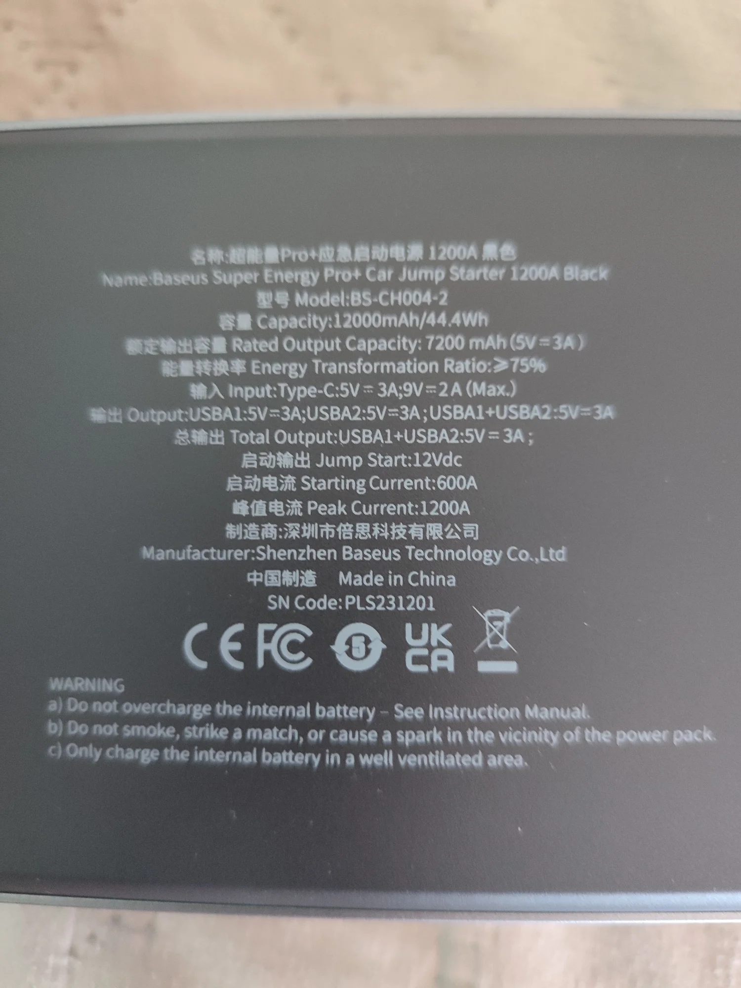 - Battery Capiticy:12000mAh/44.4Wh